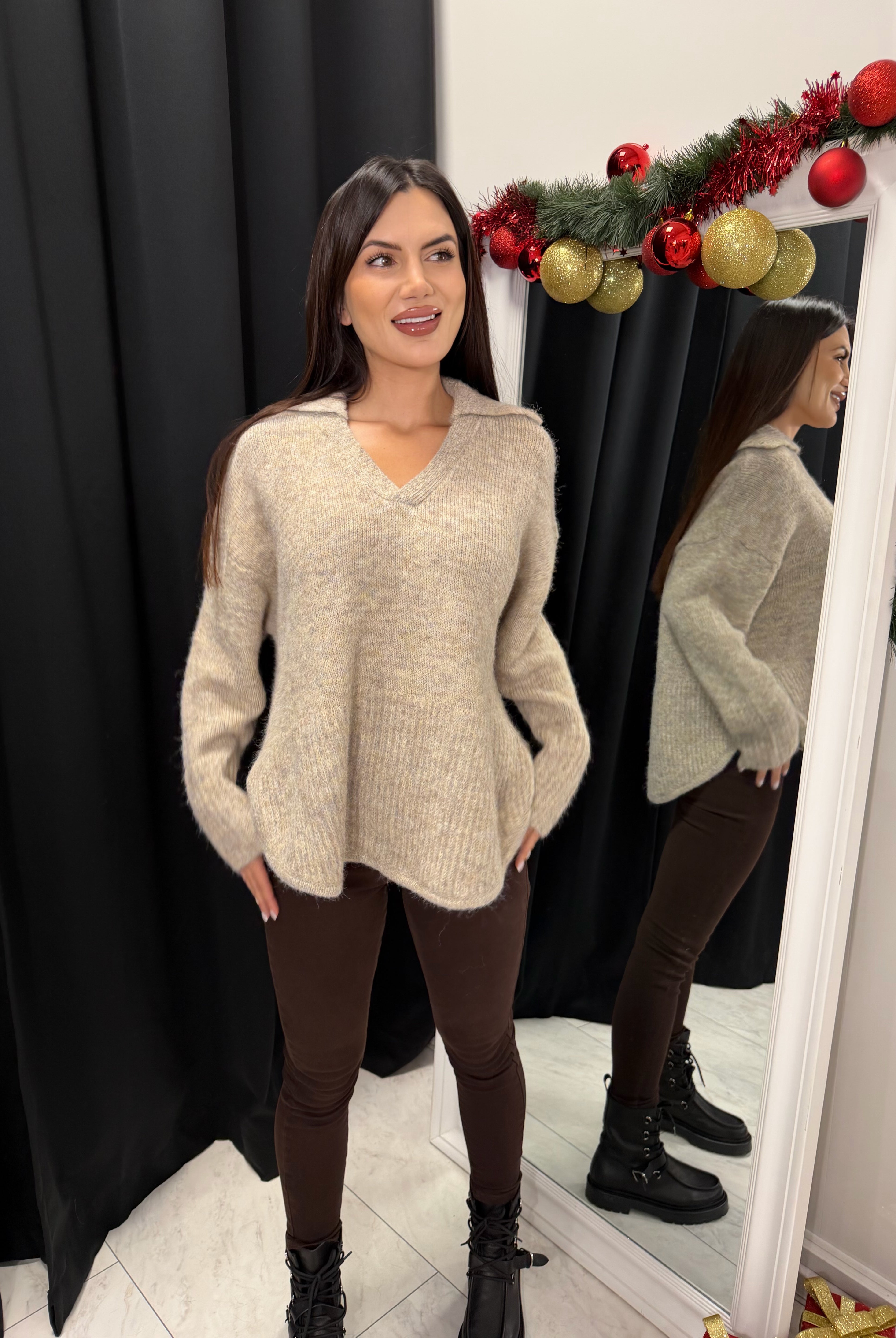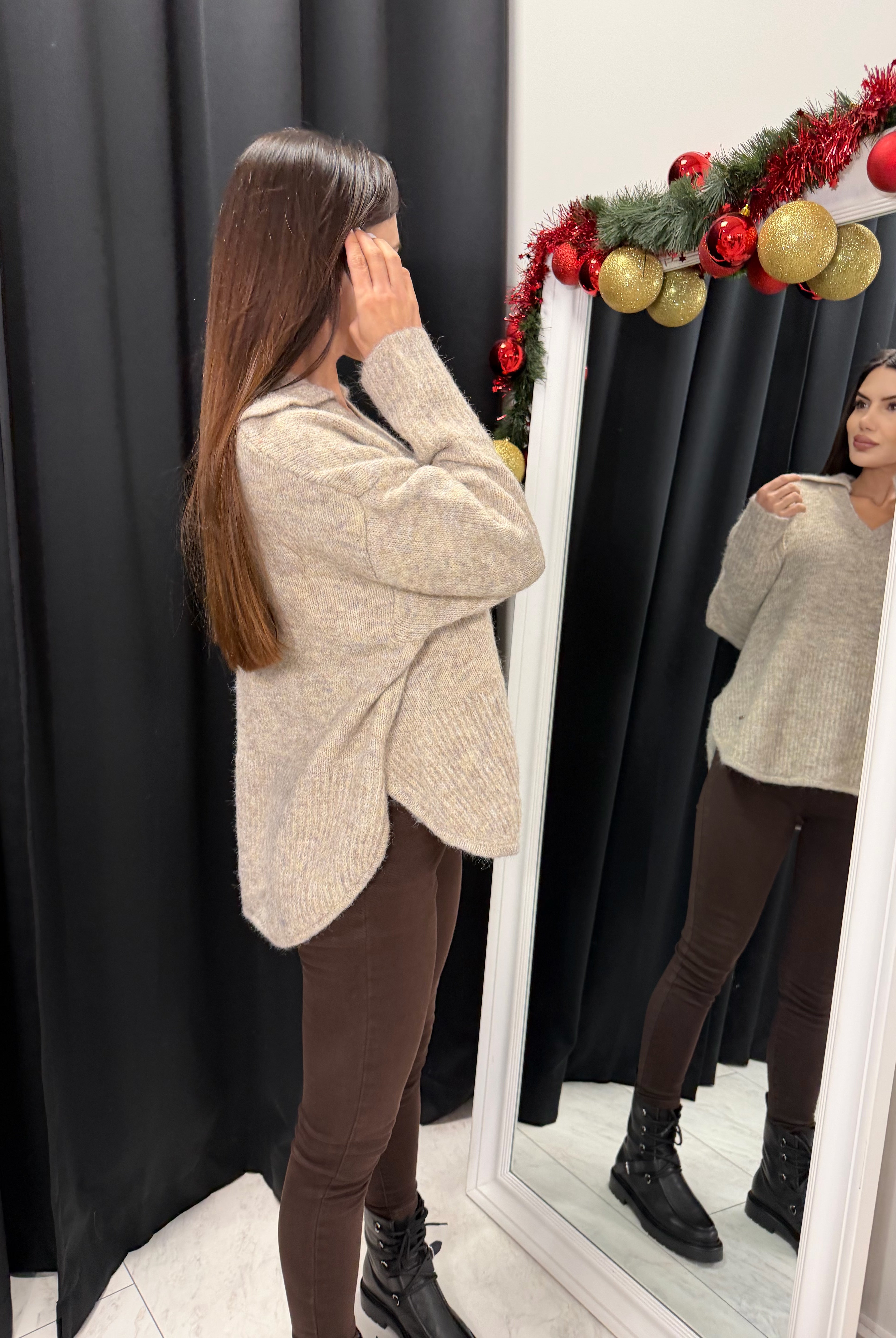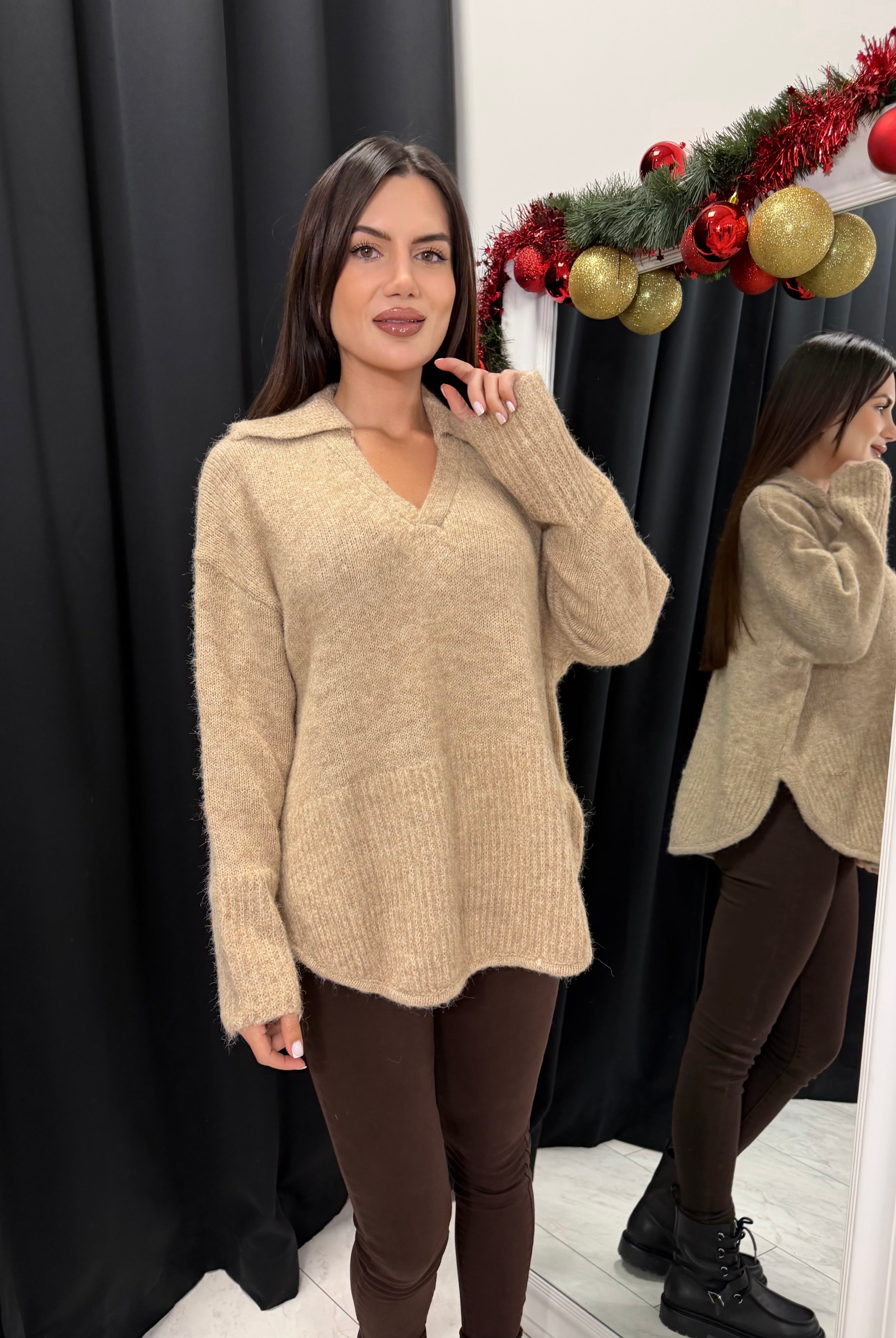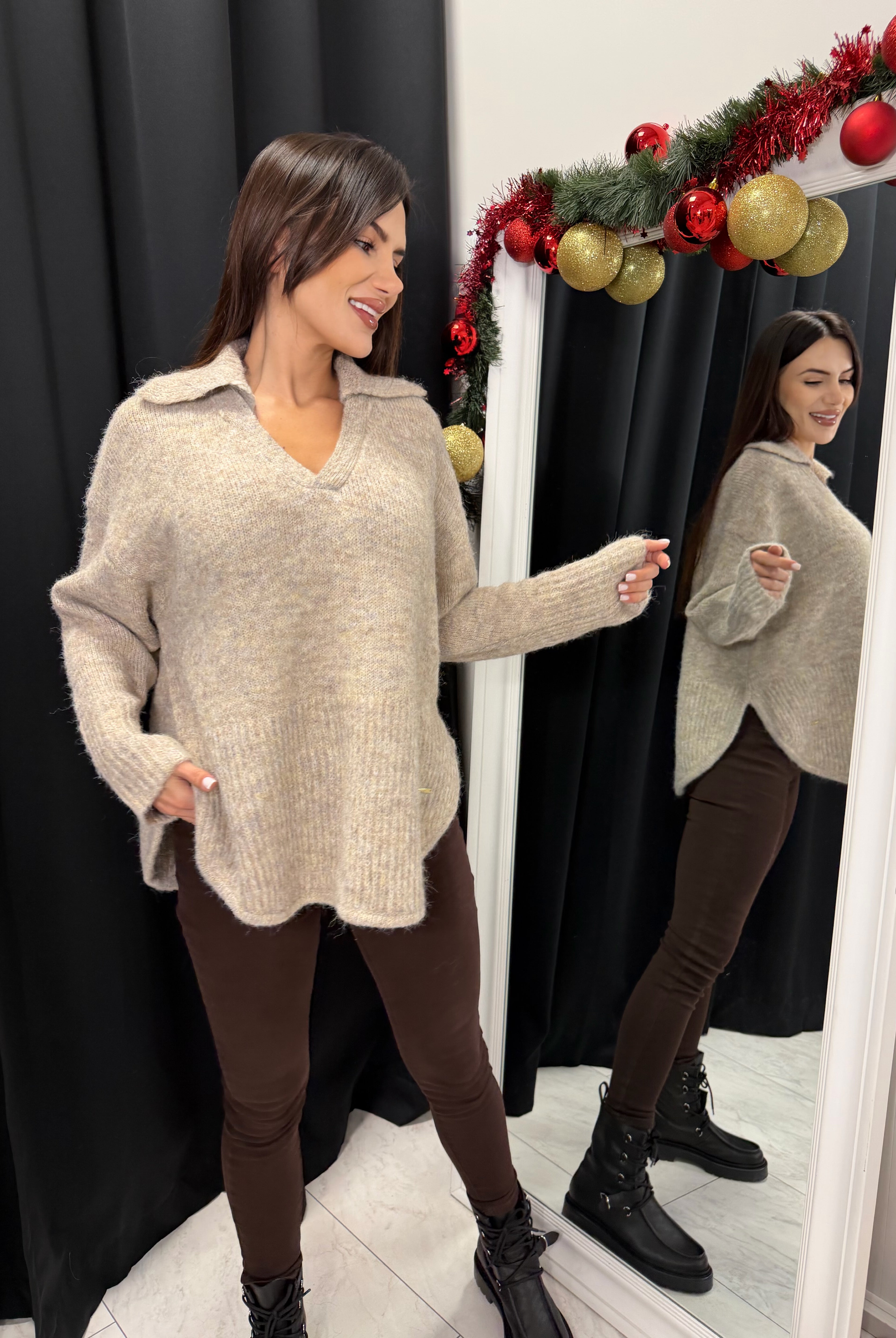 Рокля с дълъг ръкав и поло яка – бежова€38,35Стандартен размер/ One size