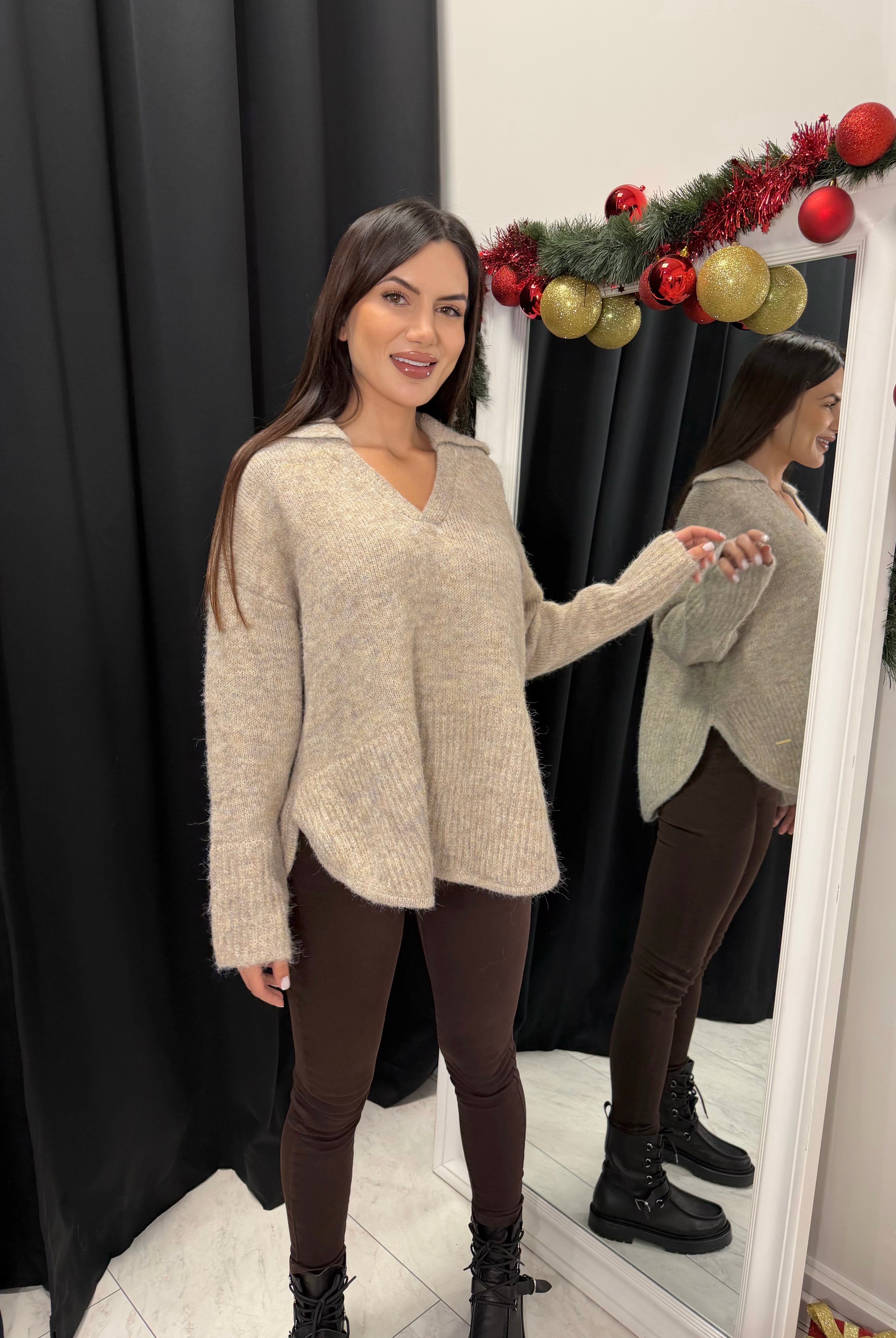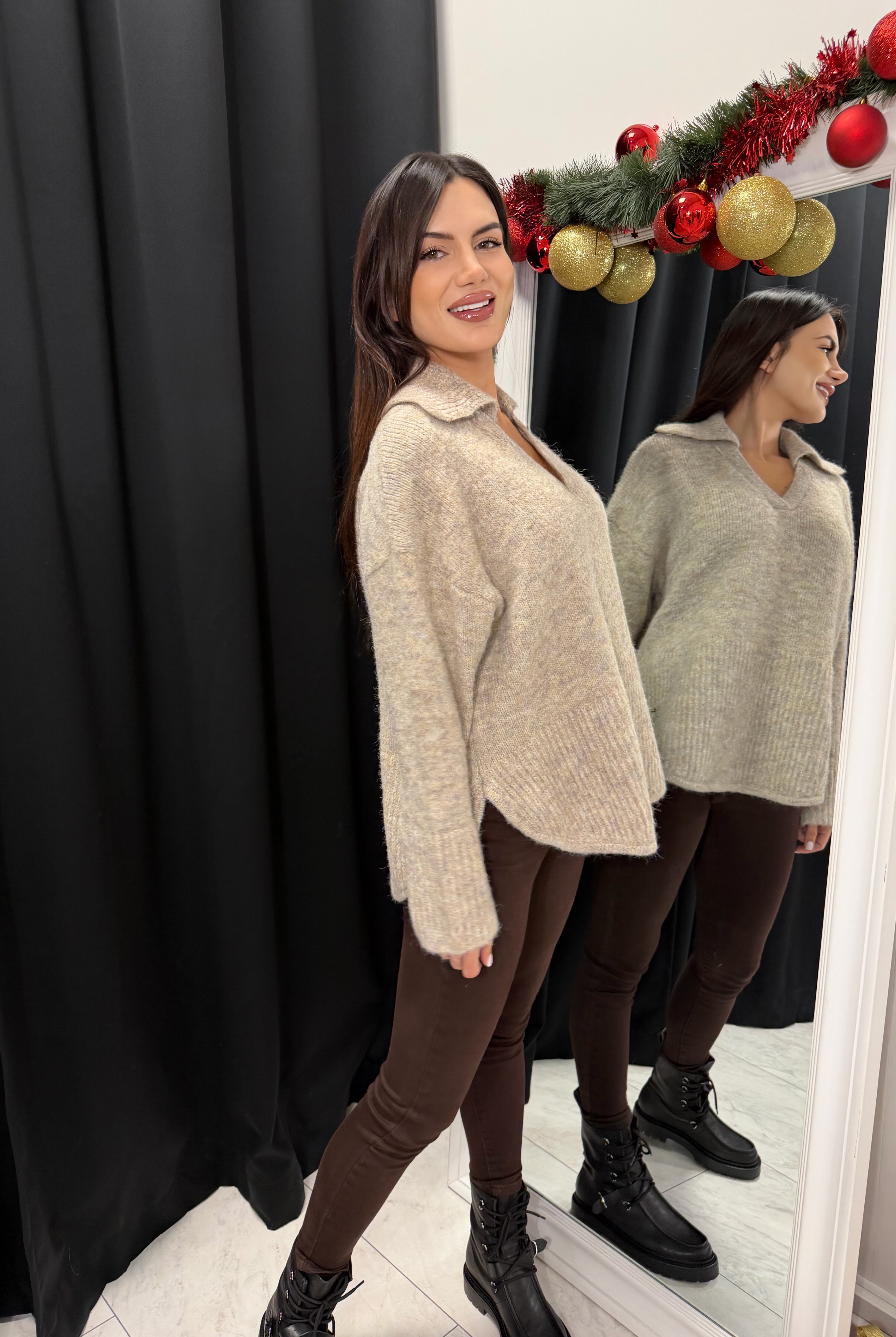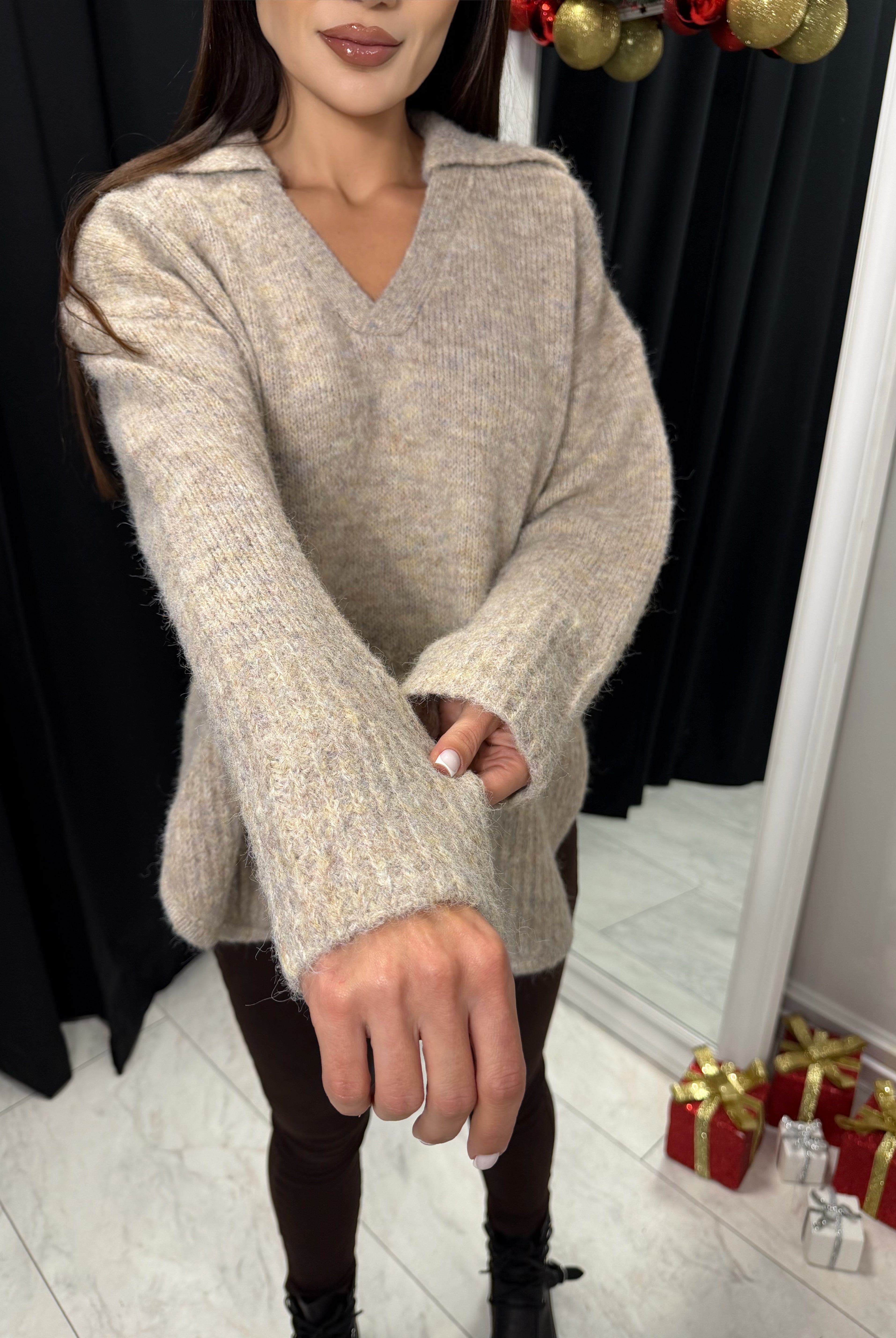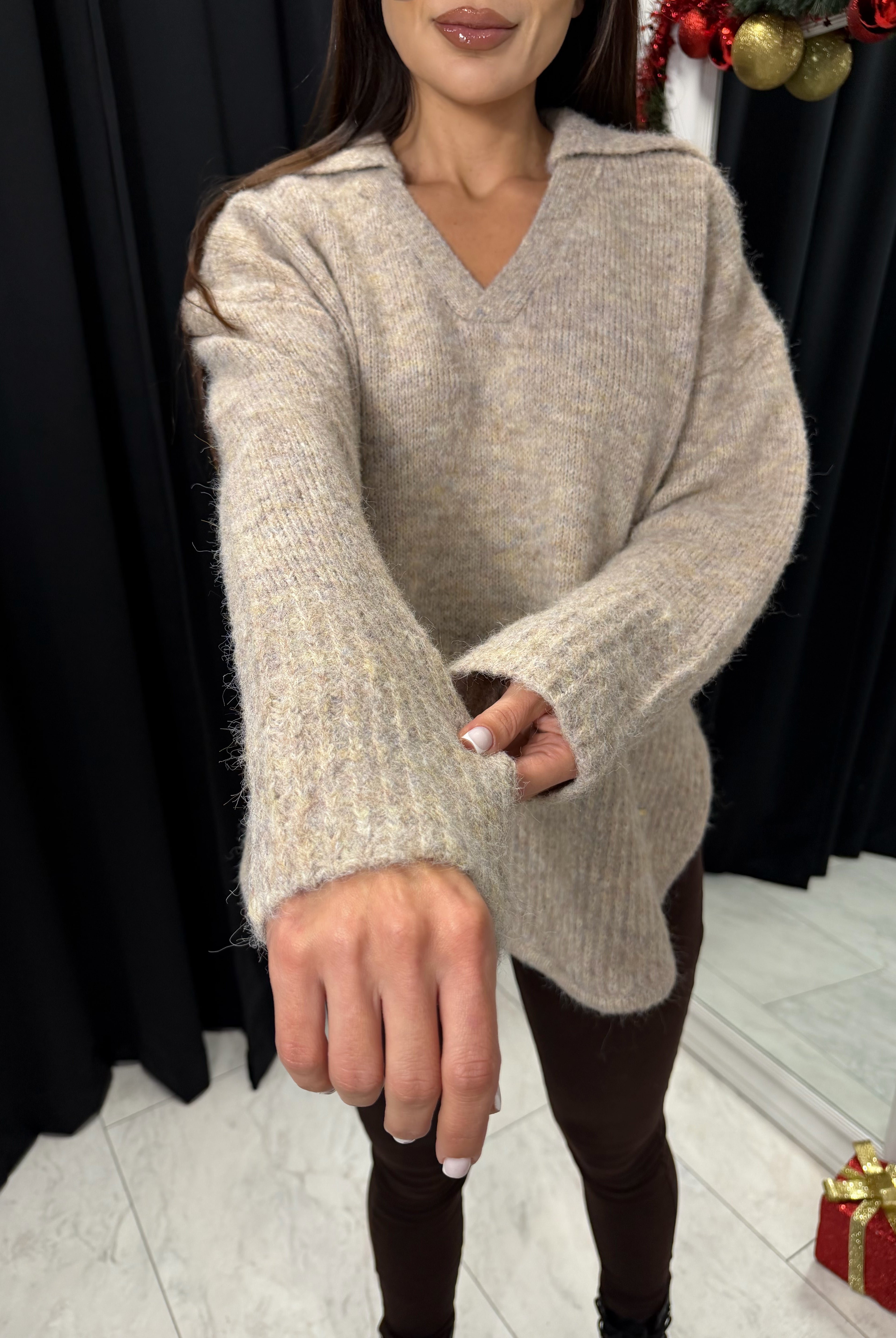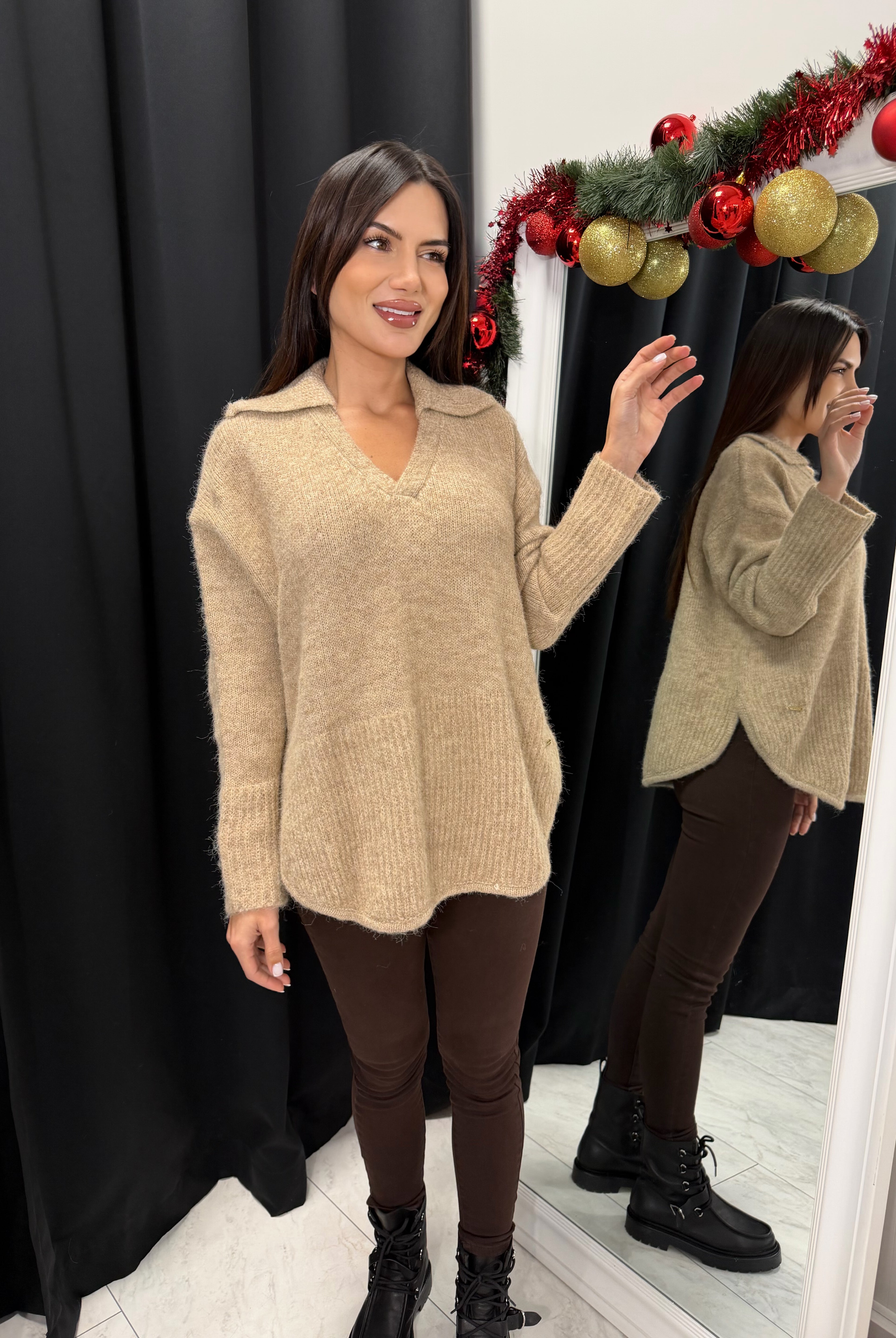 Рокля с дълъг ръкав и поло яка – бежова€38,35Стандартен размер/ One size
