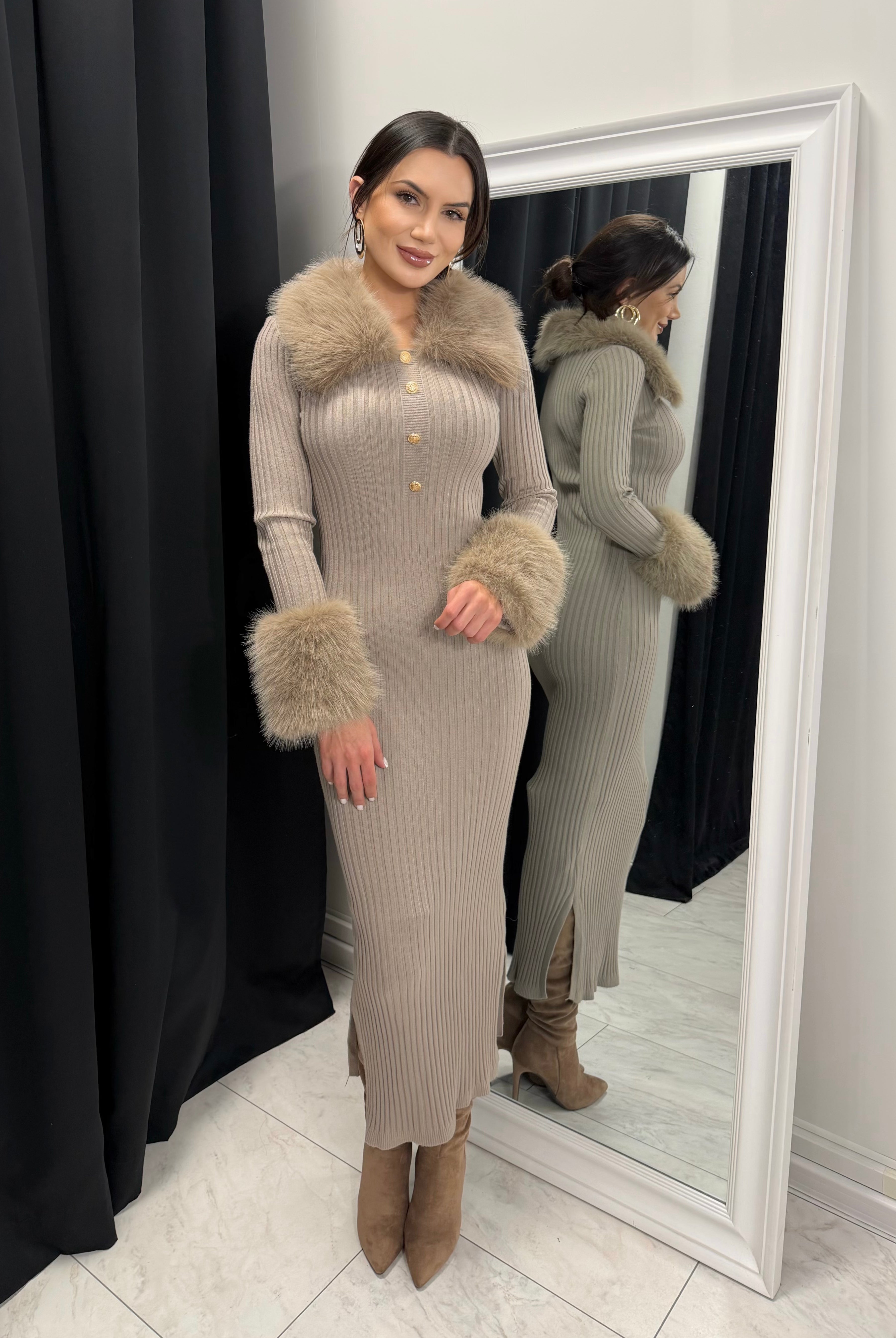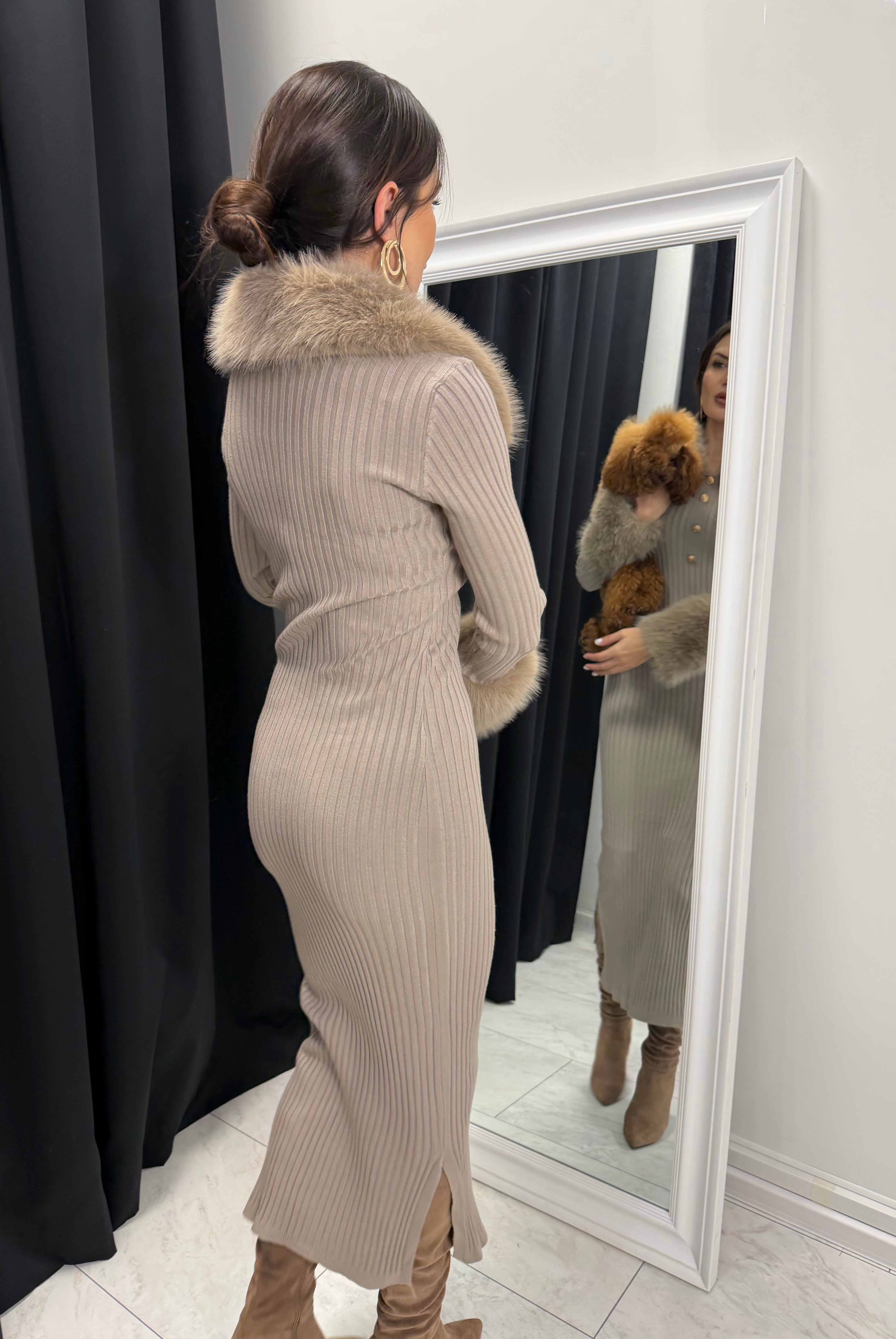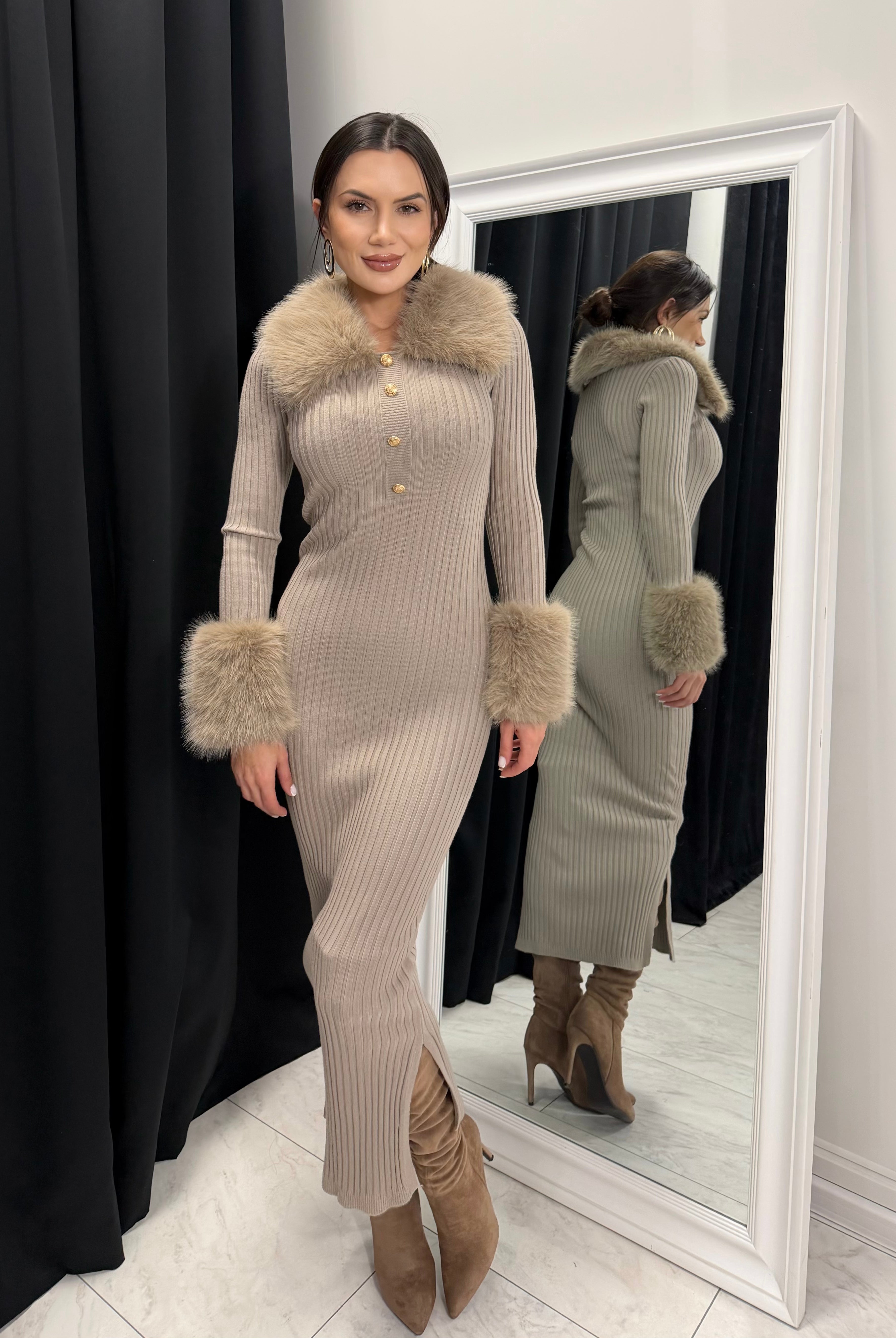 LUX FUR DRESS – дълга рокля от фино плетиво с кожи