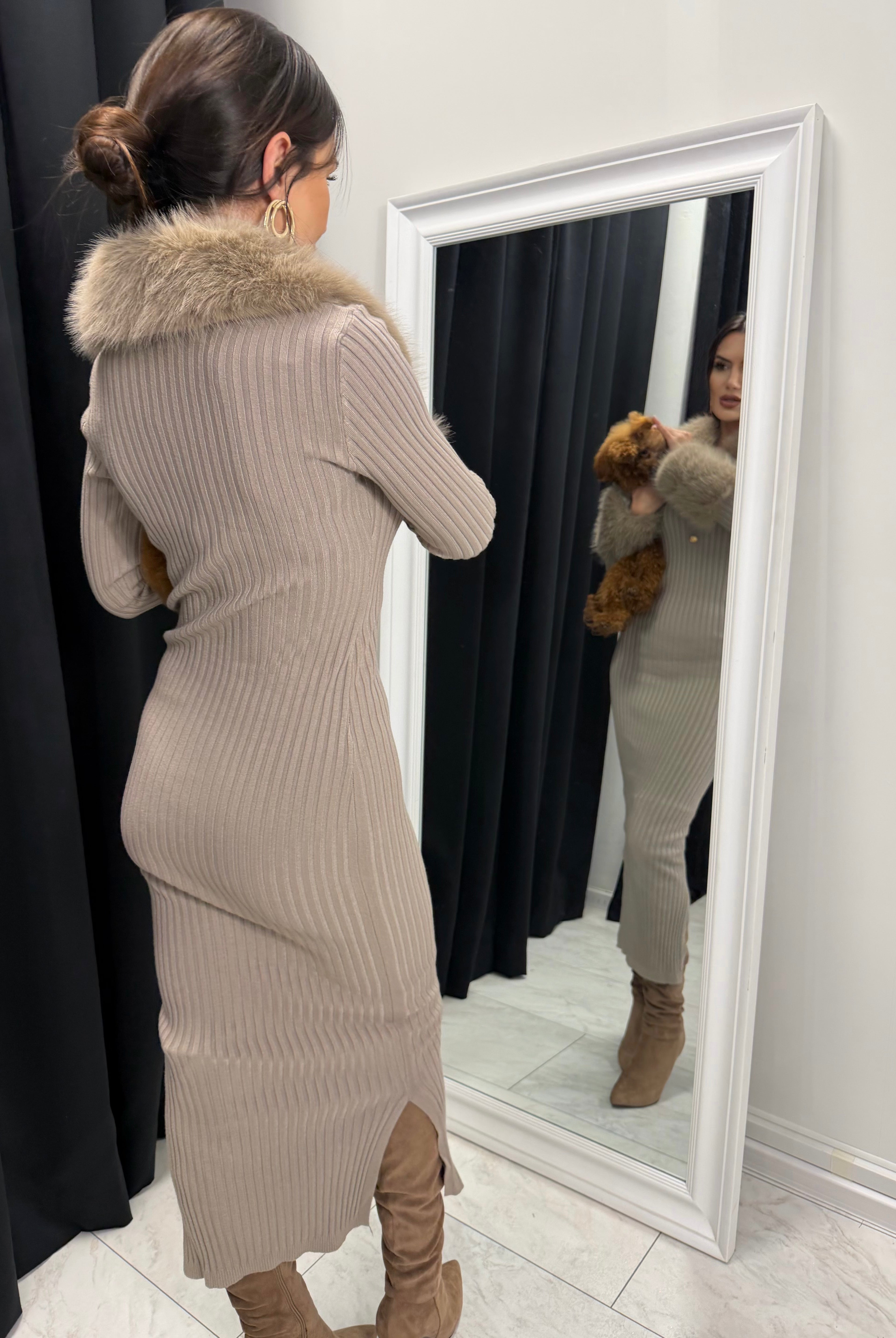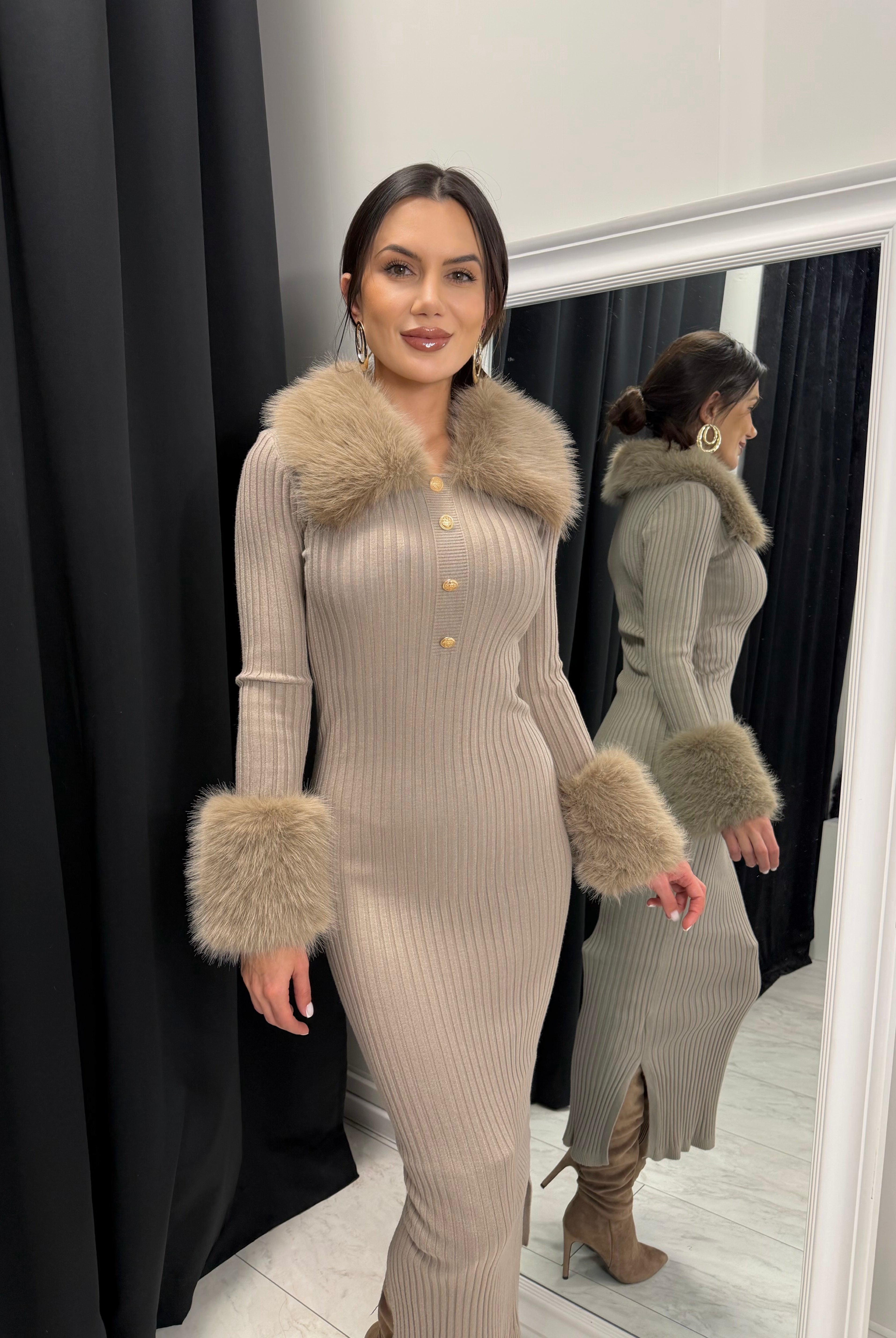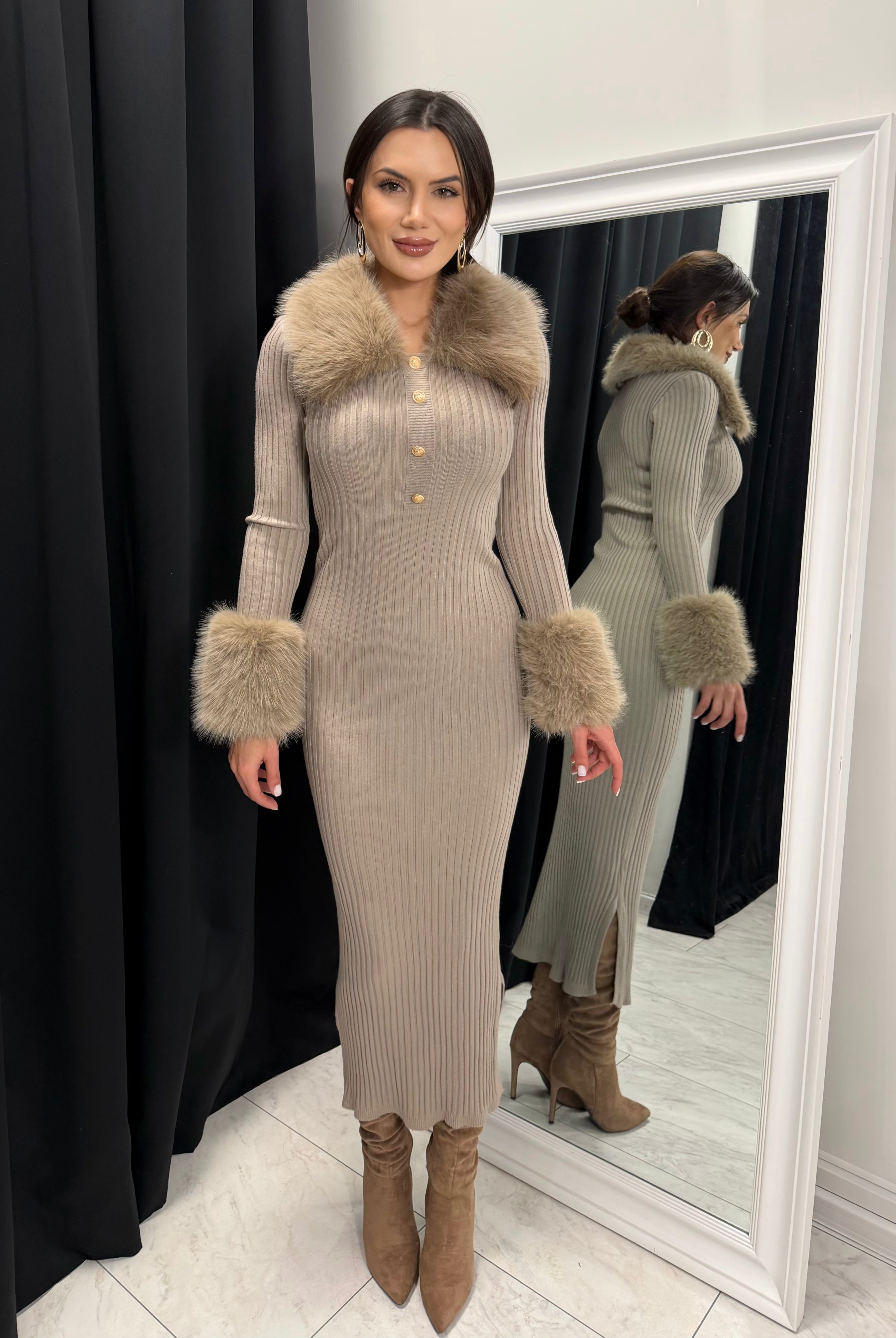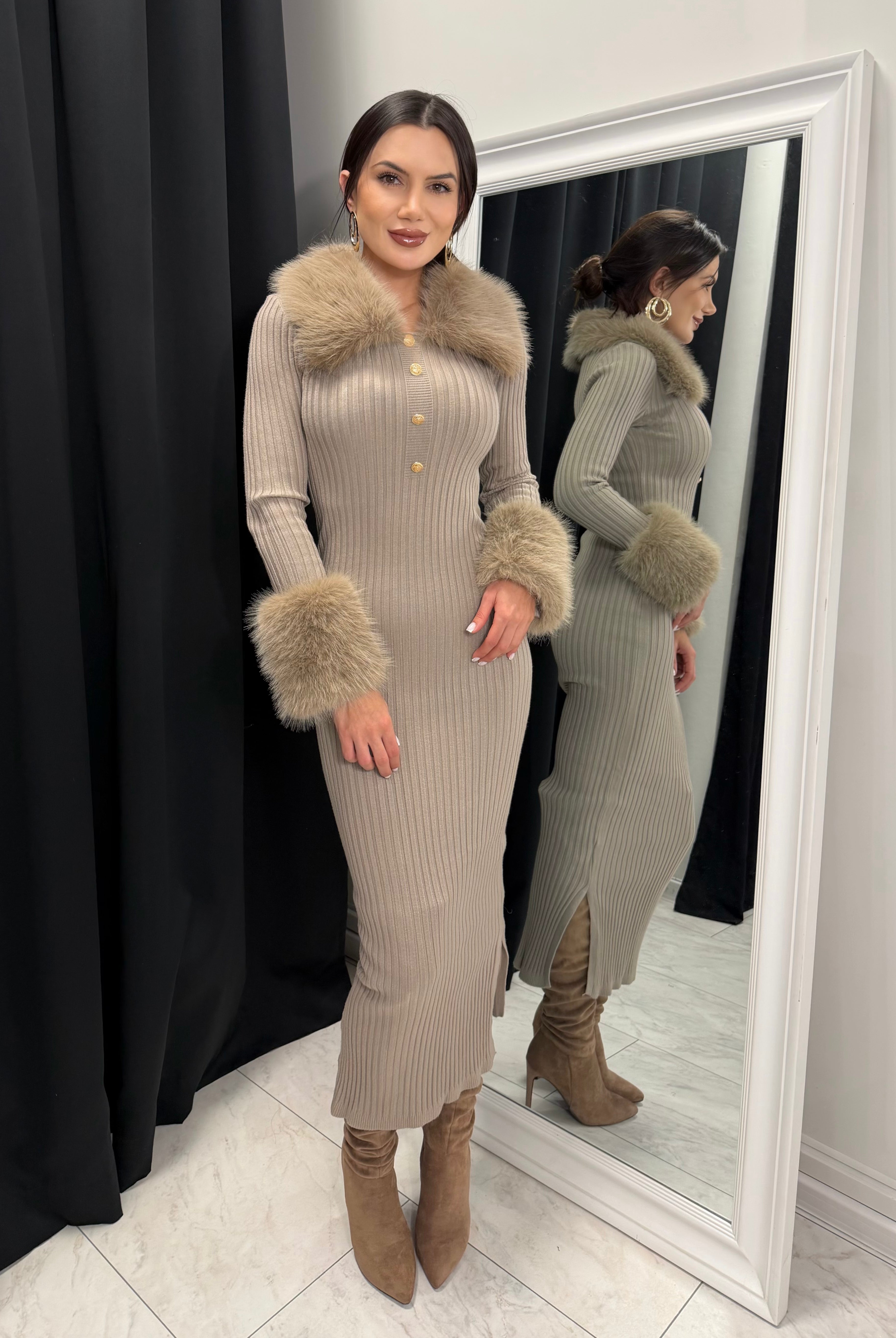 LUX FUR DRESS – дълга рокля от фино плетиво с кожи