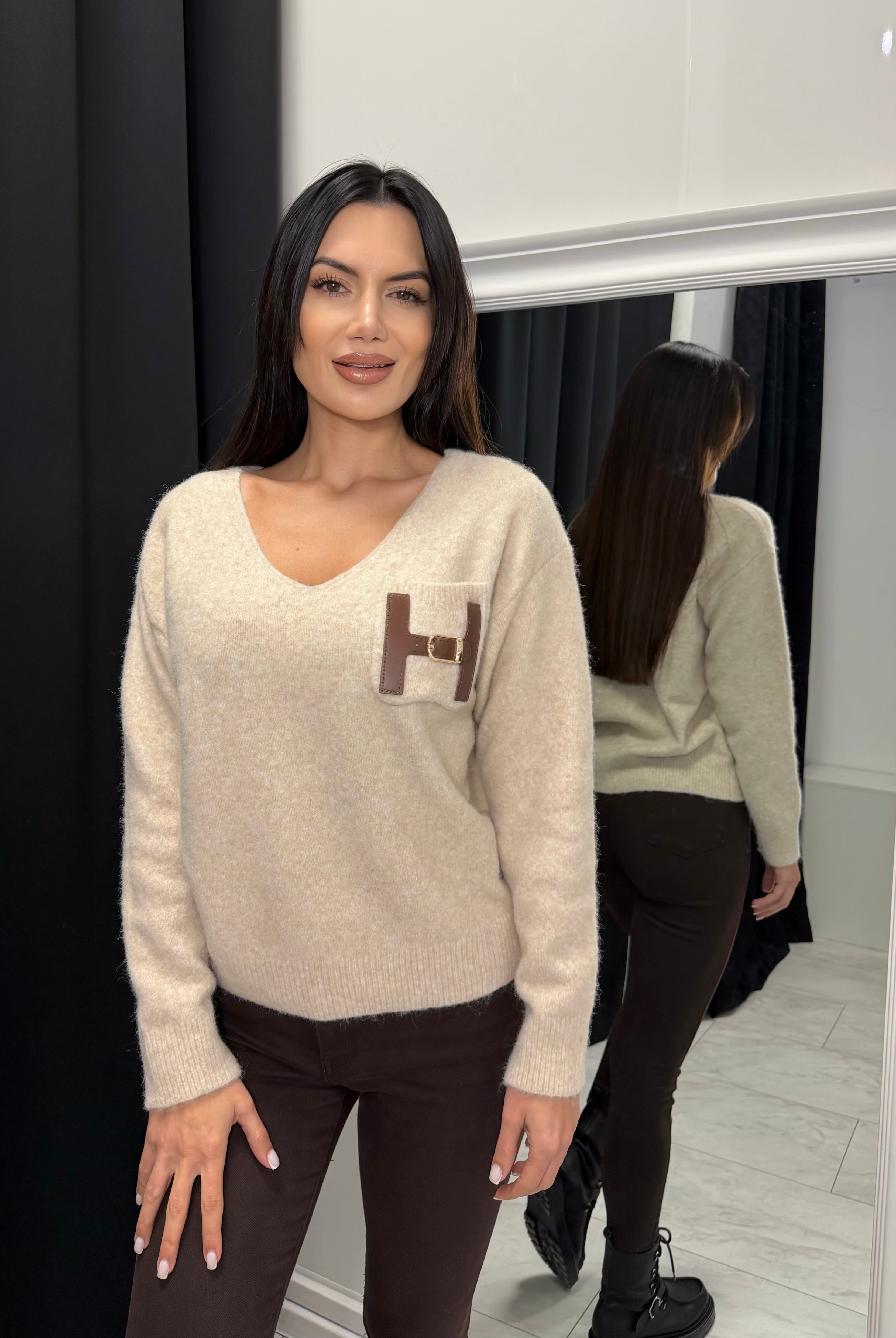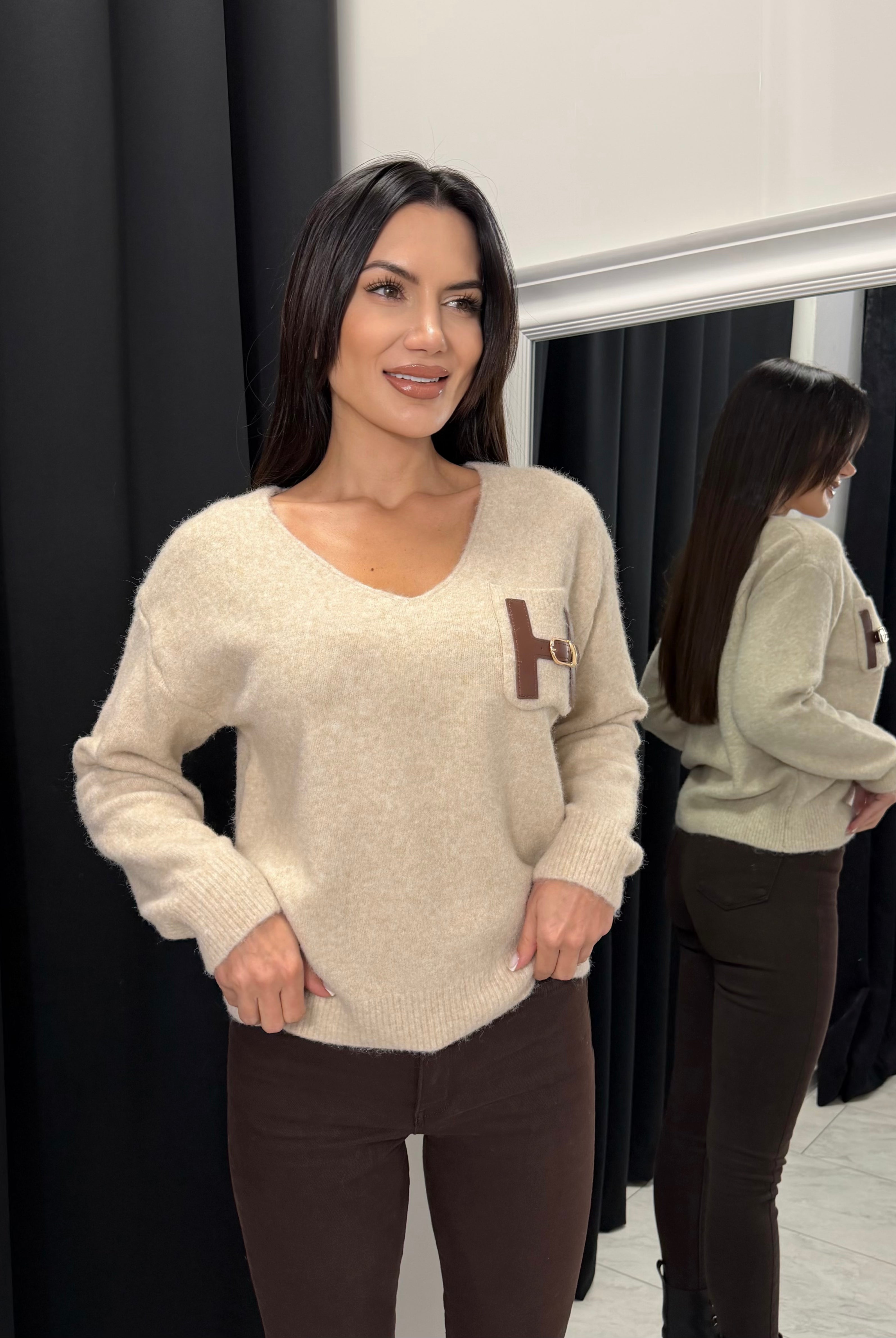 Équestre Luxury – пуловер с V-деколте и декоративна катарама