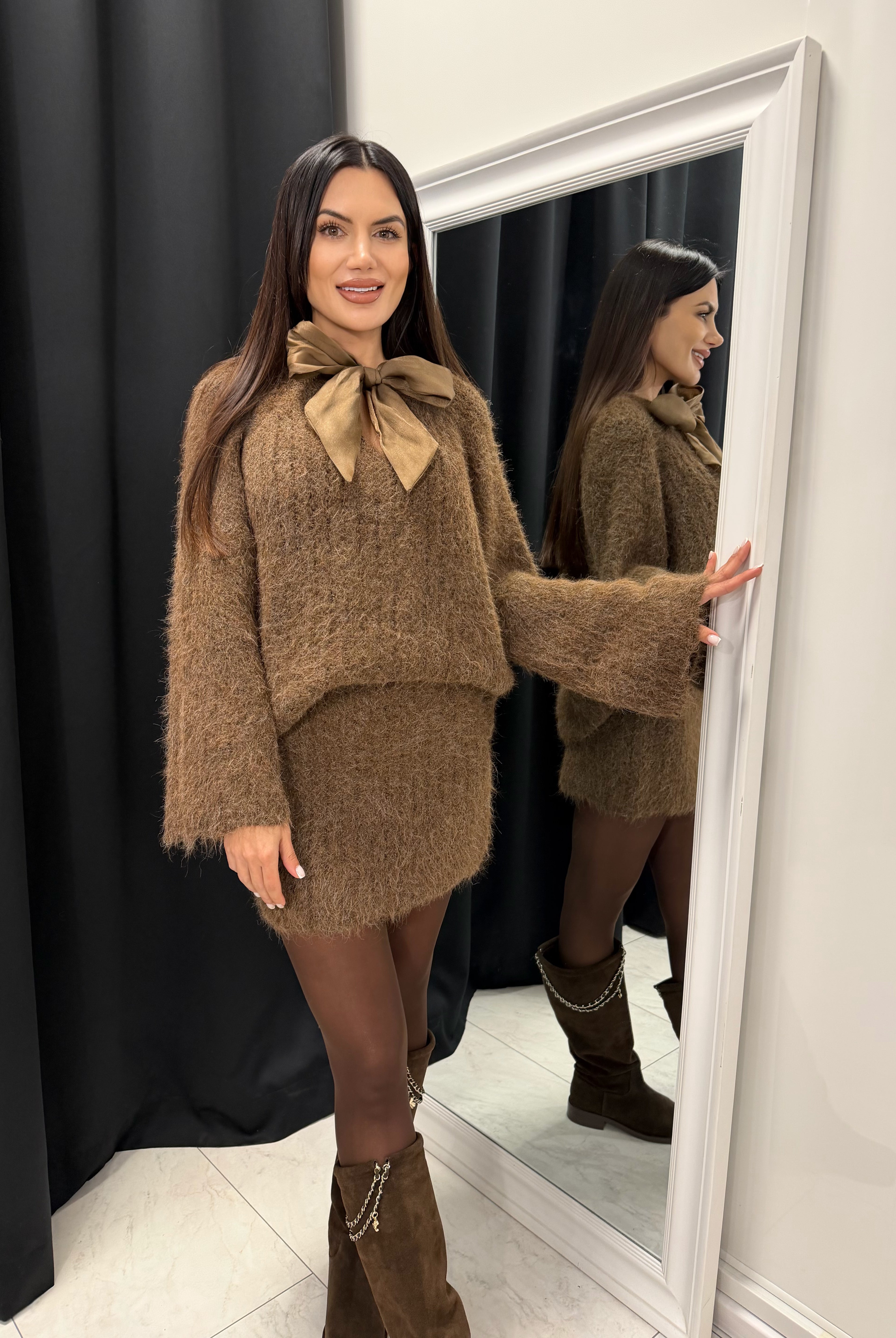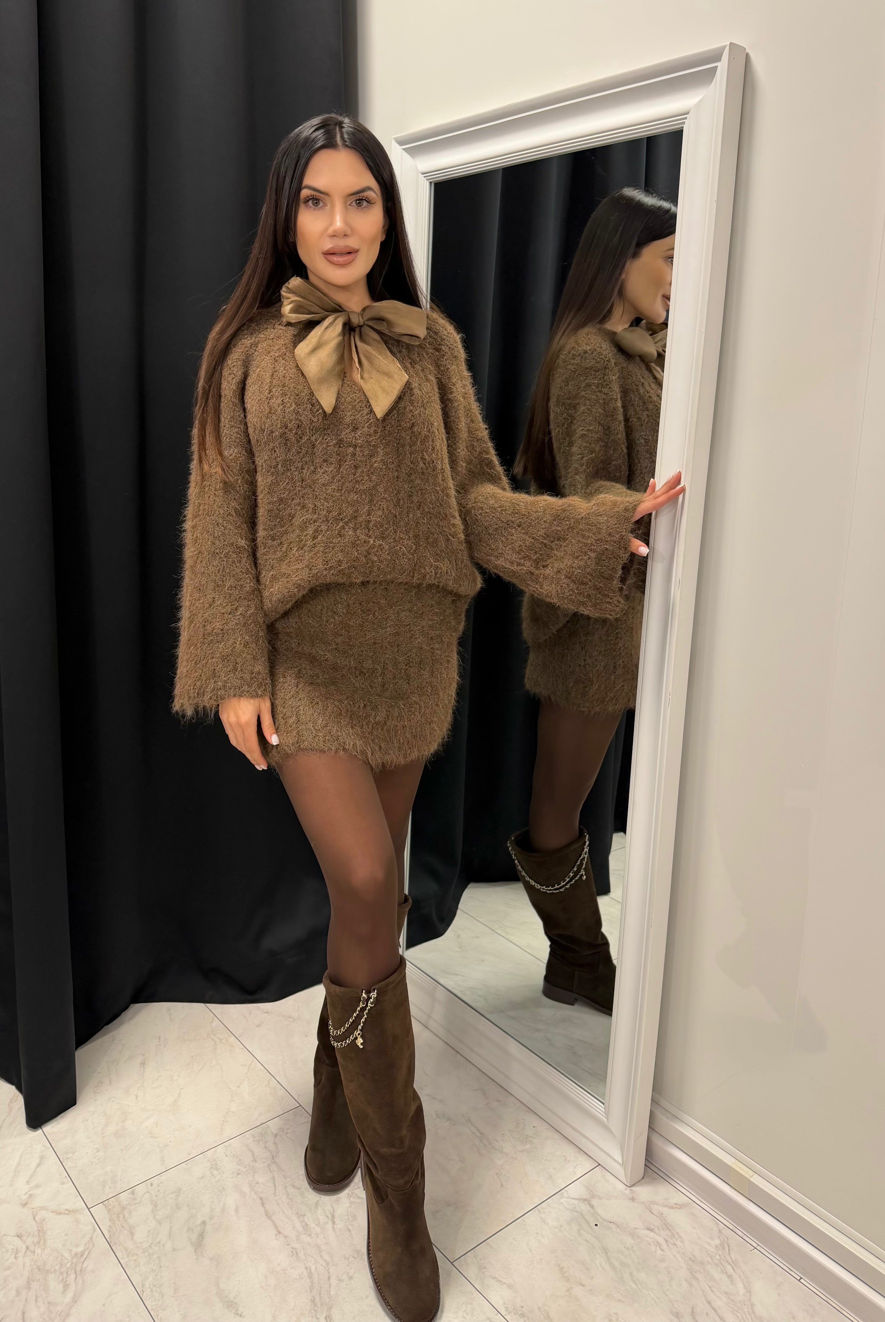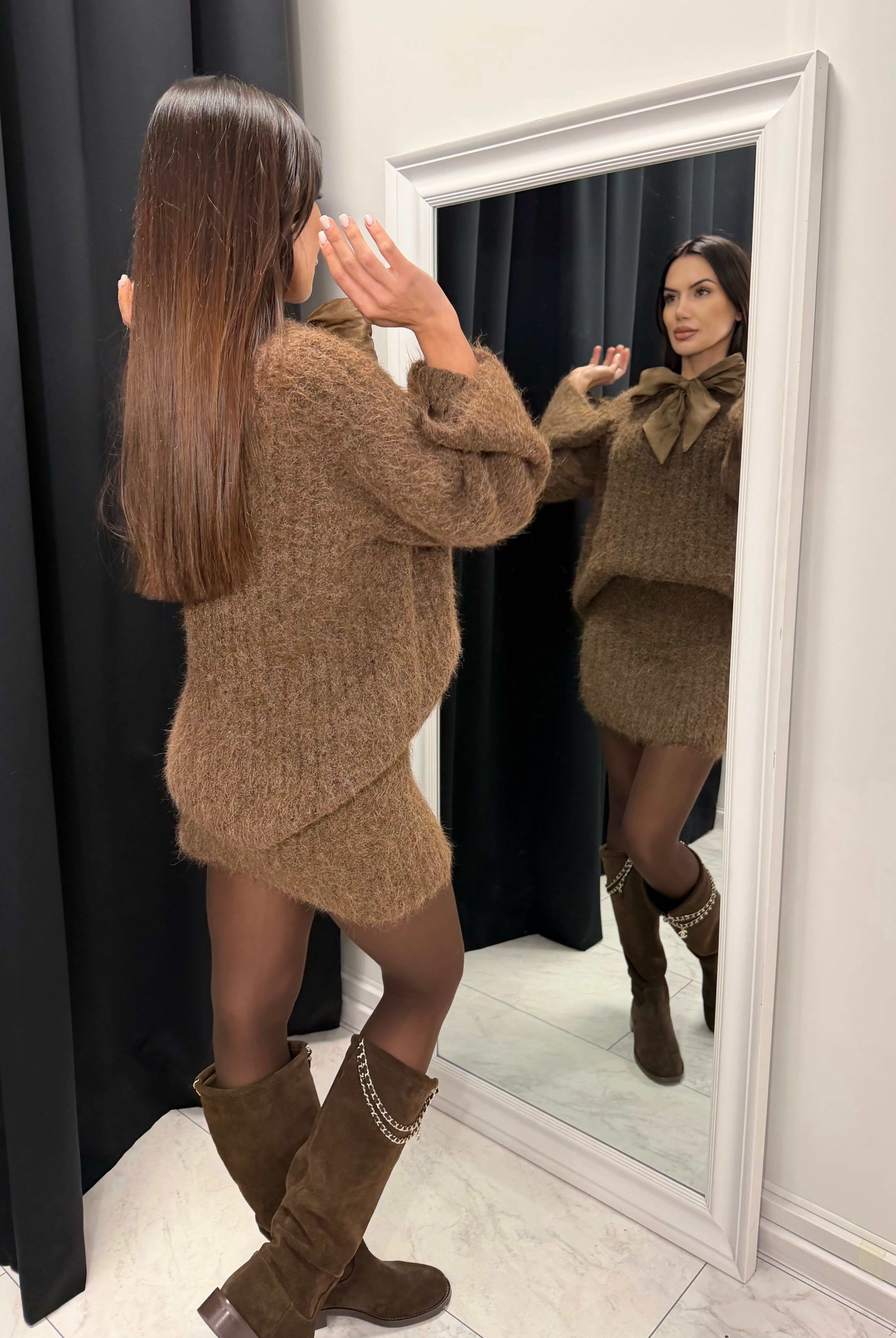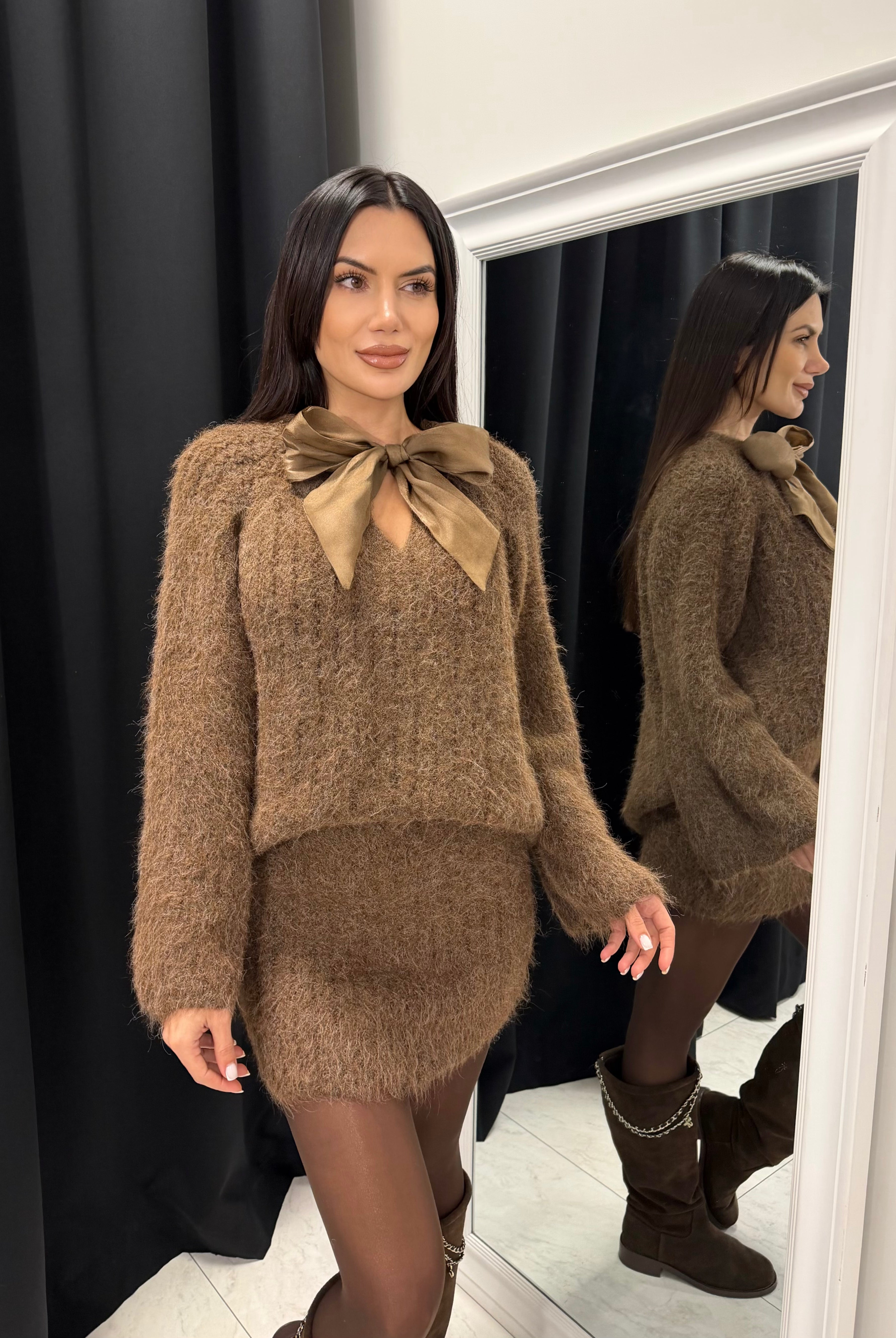 MOCHA BROWN LUXURY BOW - Плетен комплект с ефирна панделка