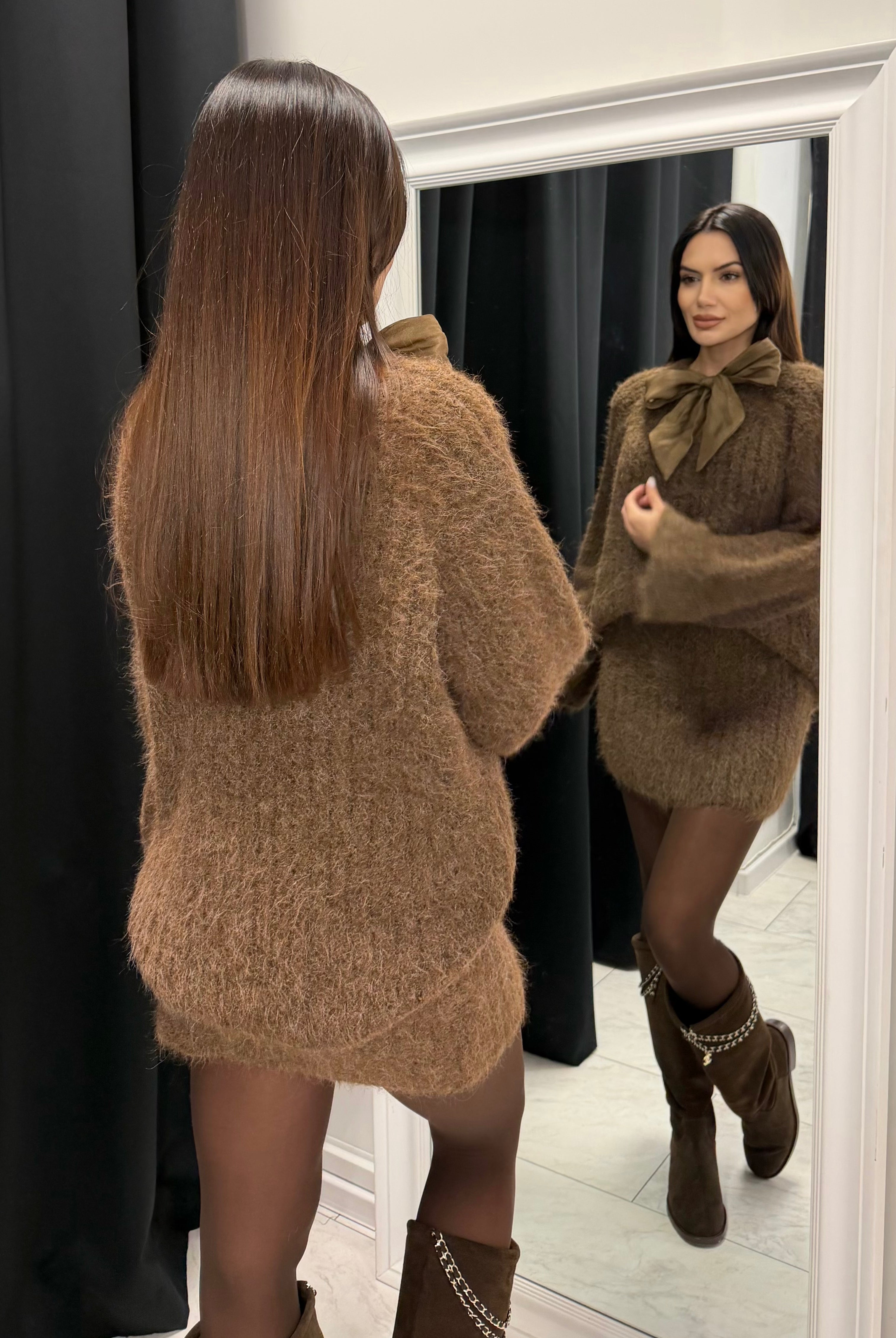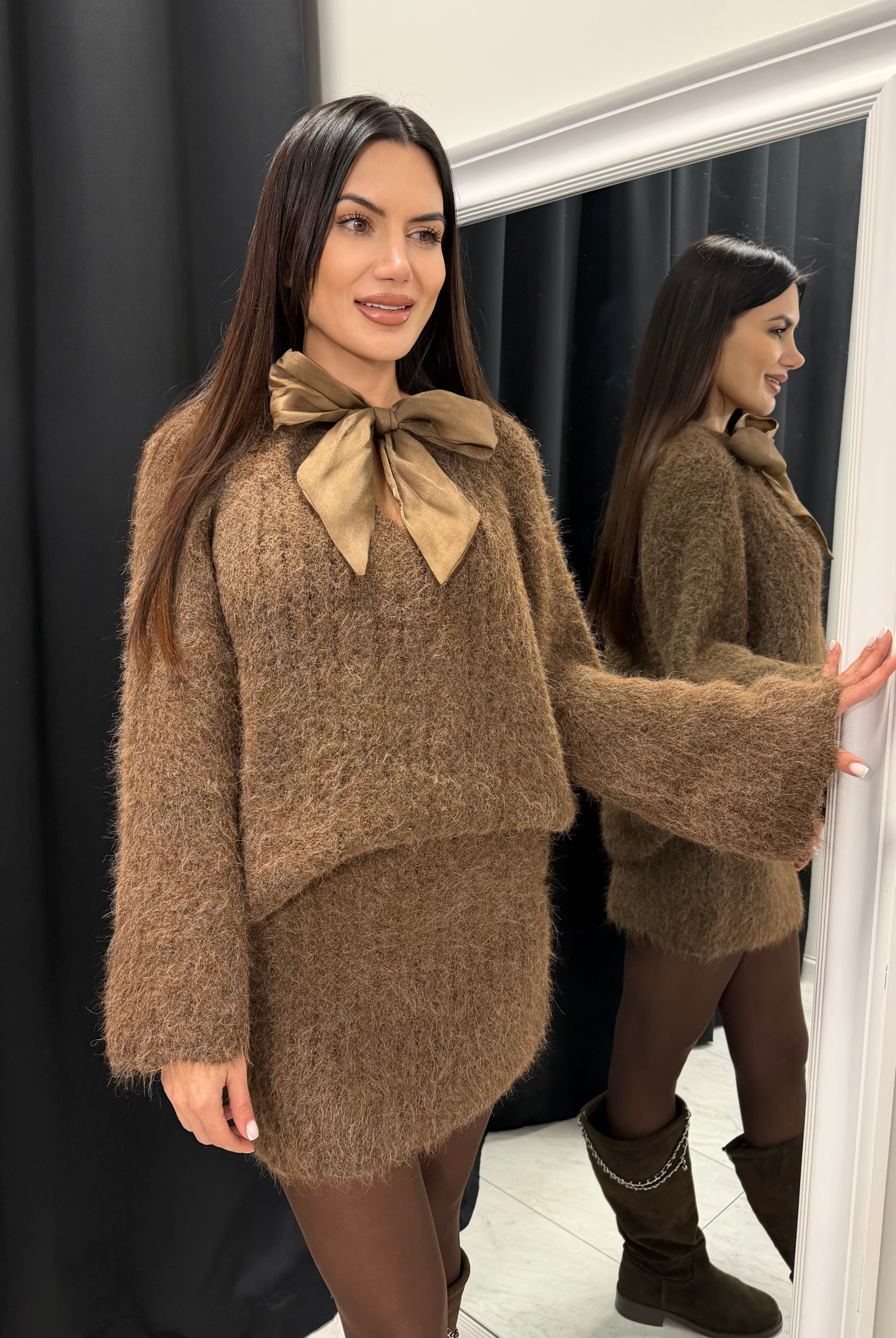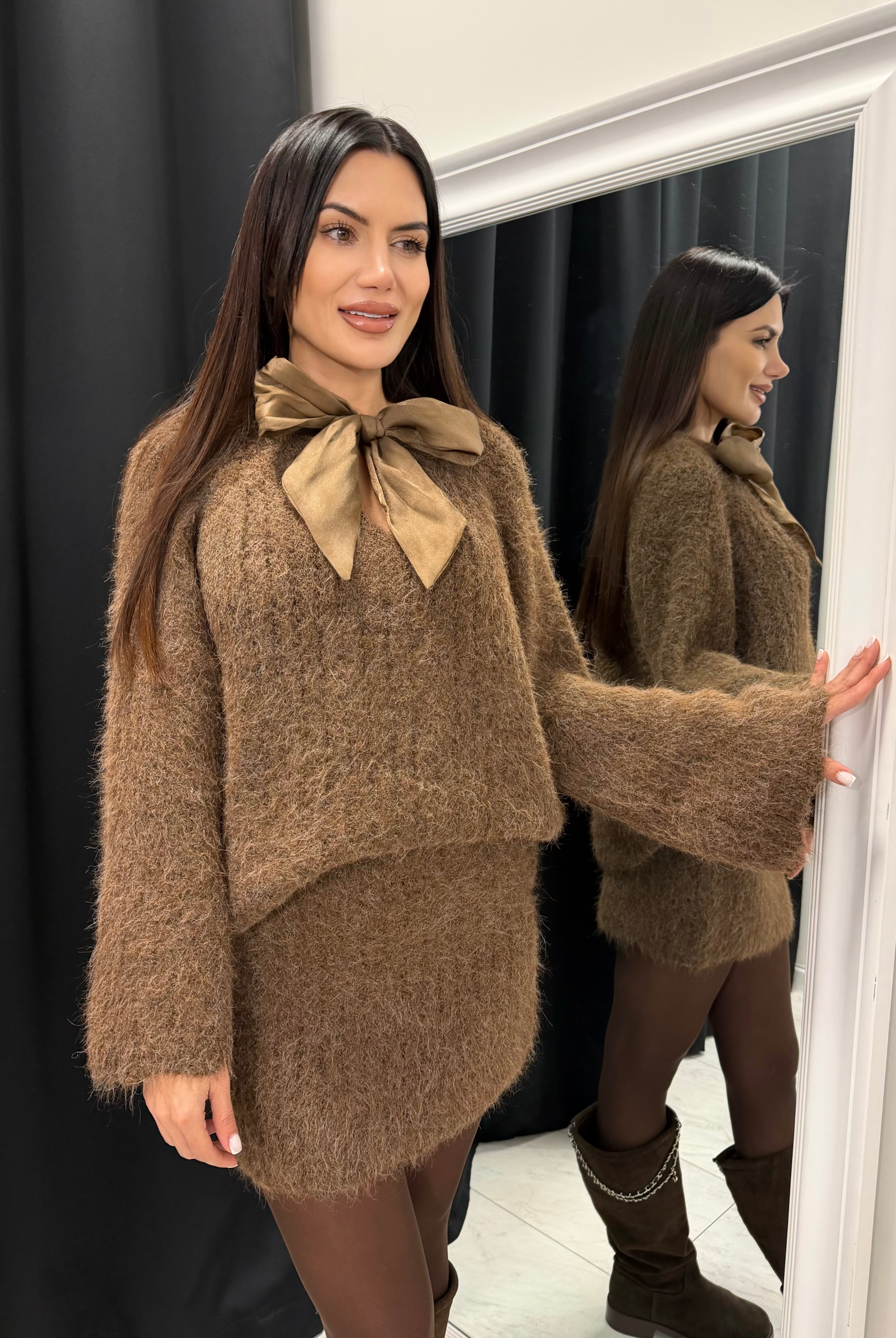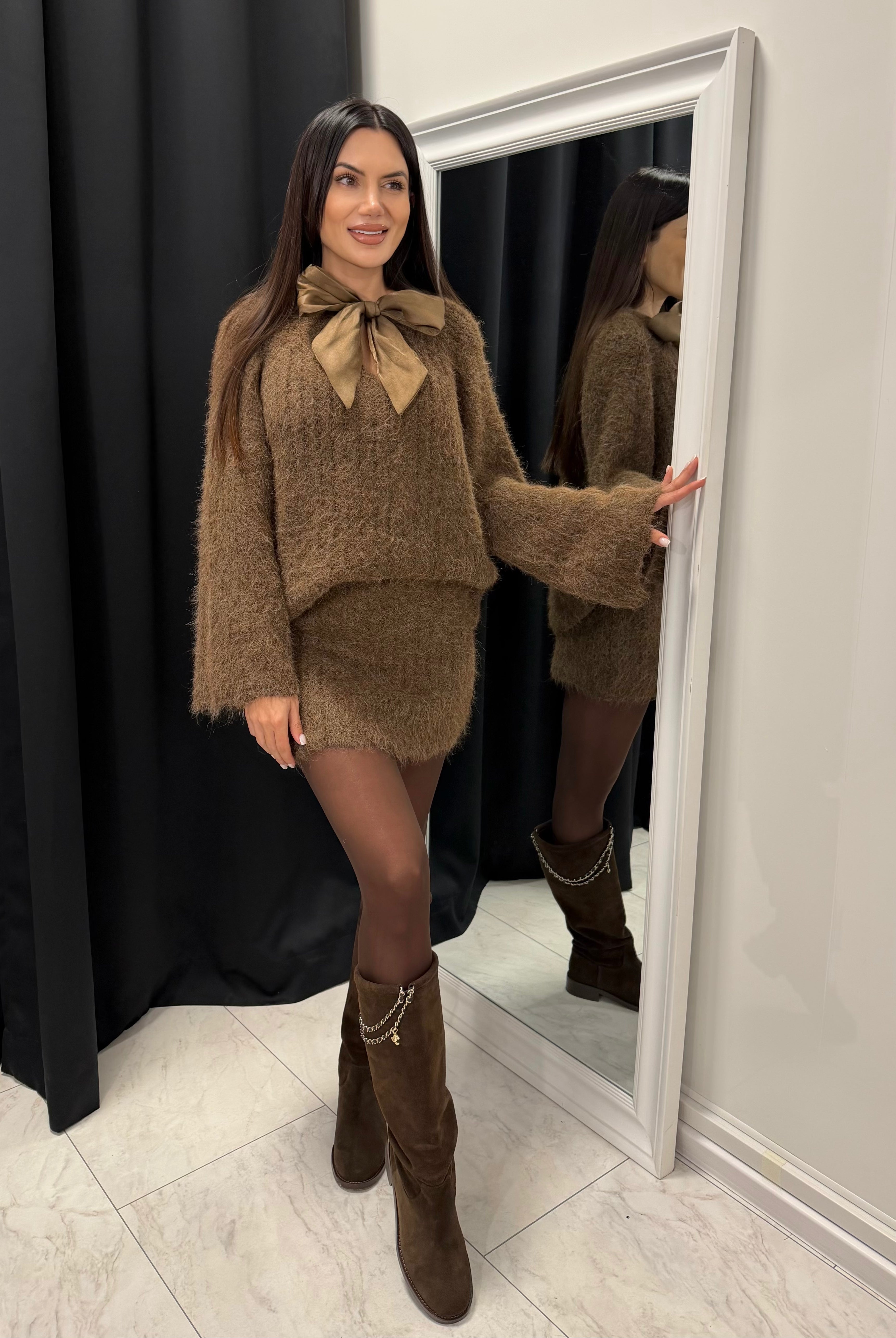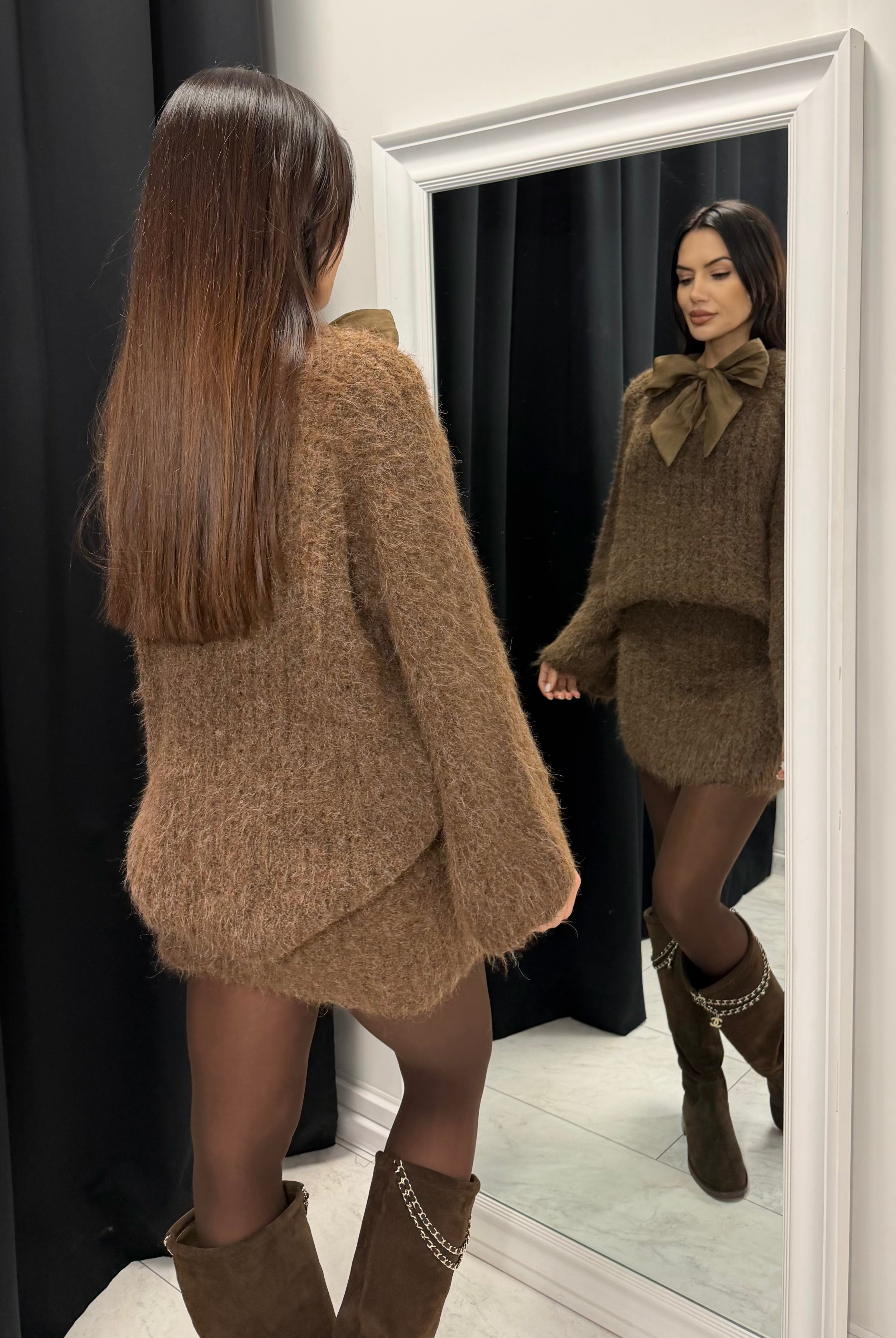 MOCHA BROWN LUXURY BOW - Плетен комплект с ефирна панделка