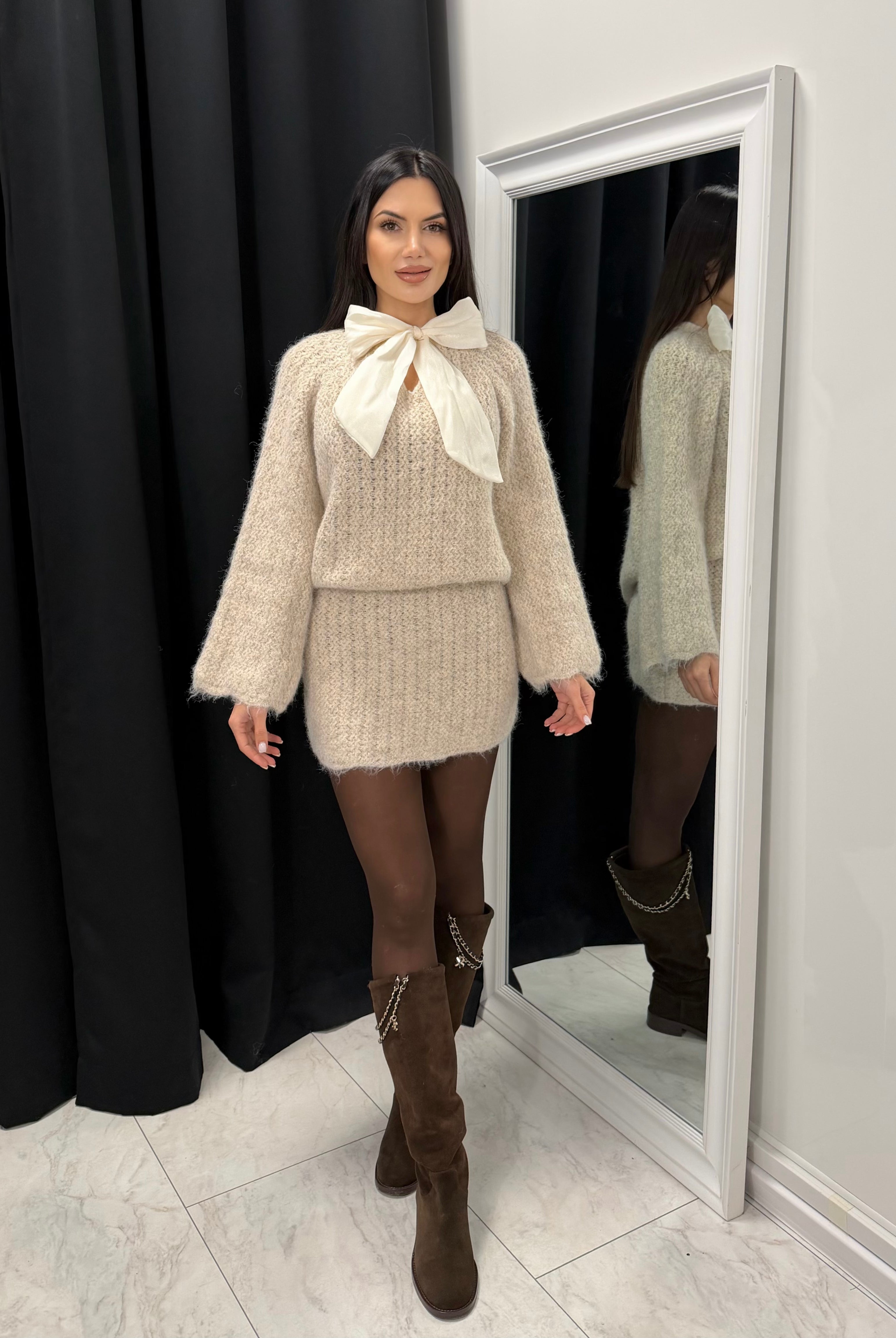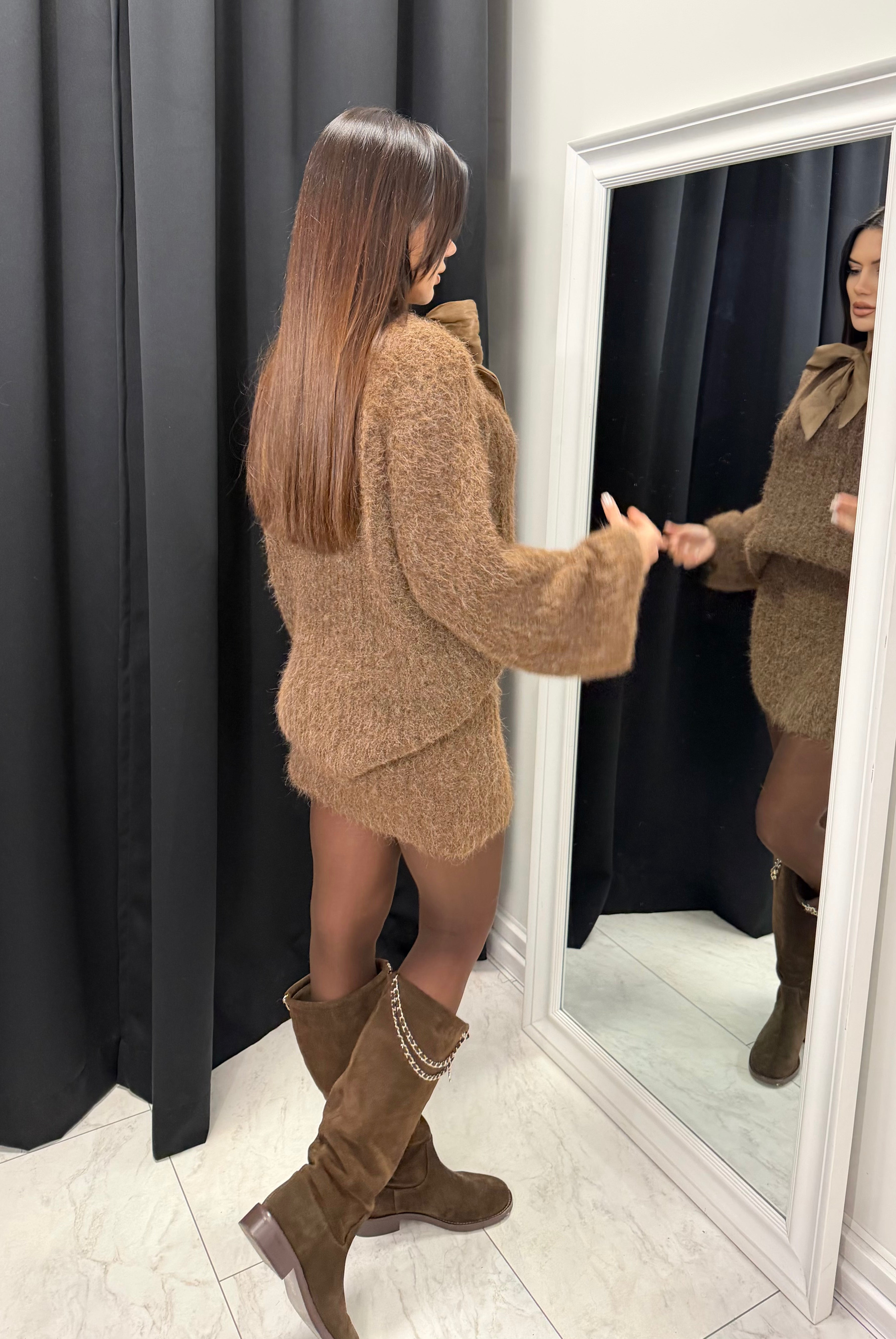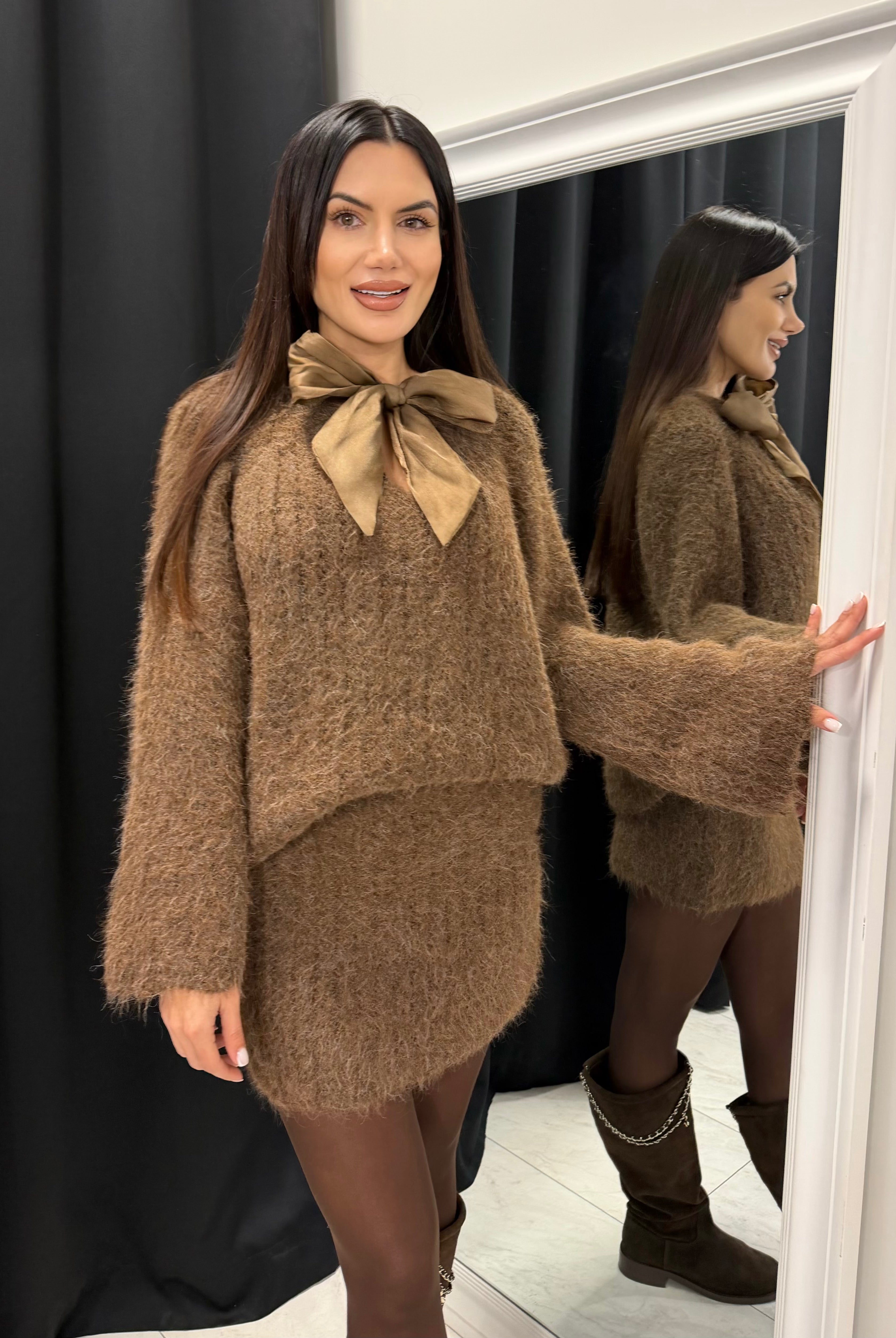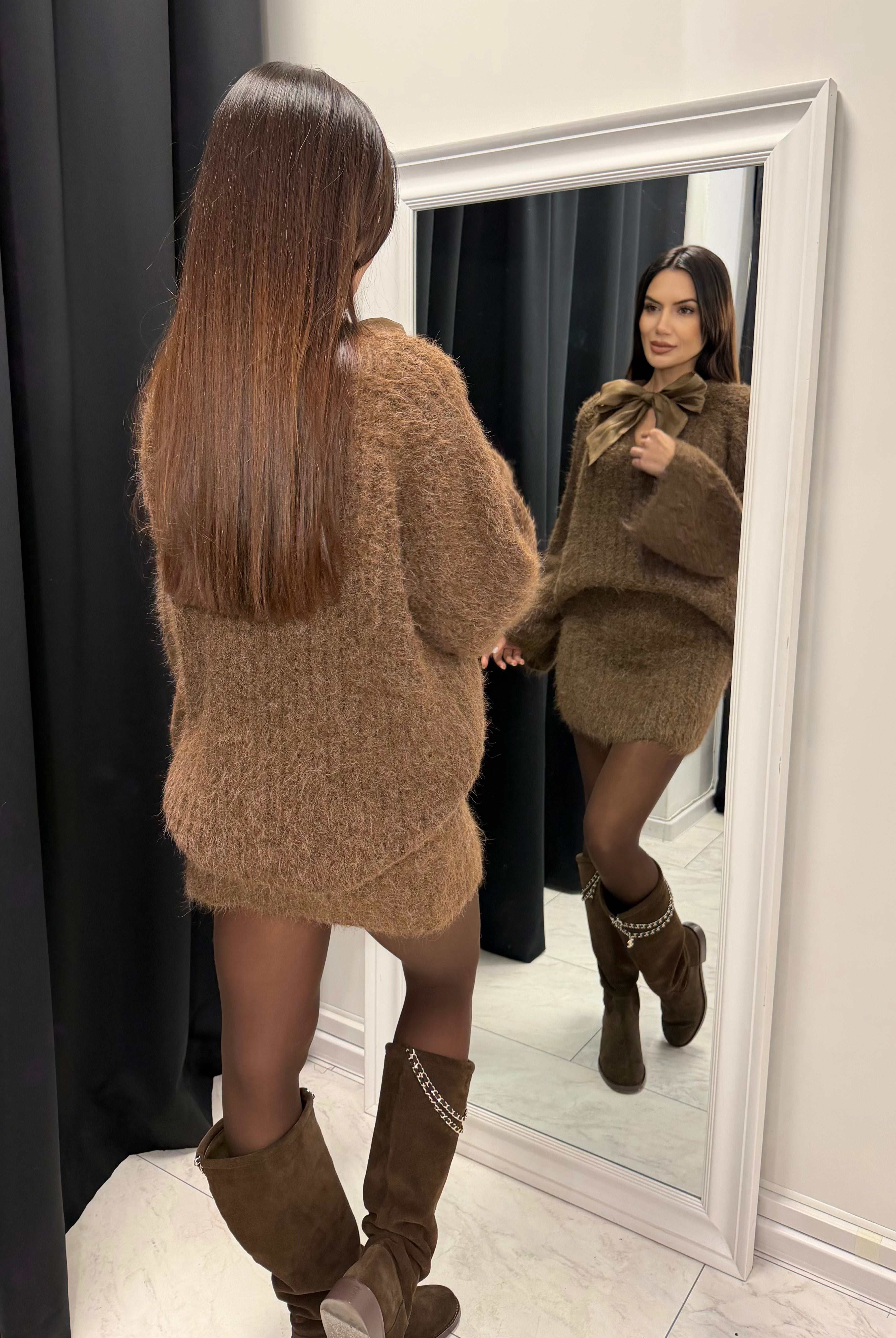 MOCHA BROWN LUXURY BOW - Плетен комплект с ефирна панделка