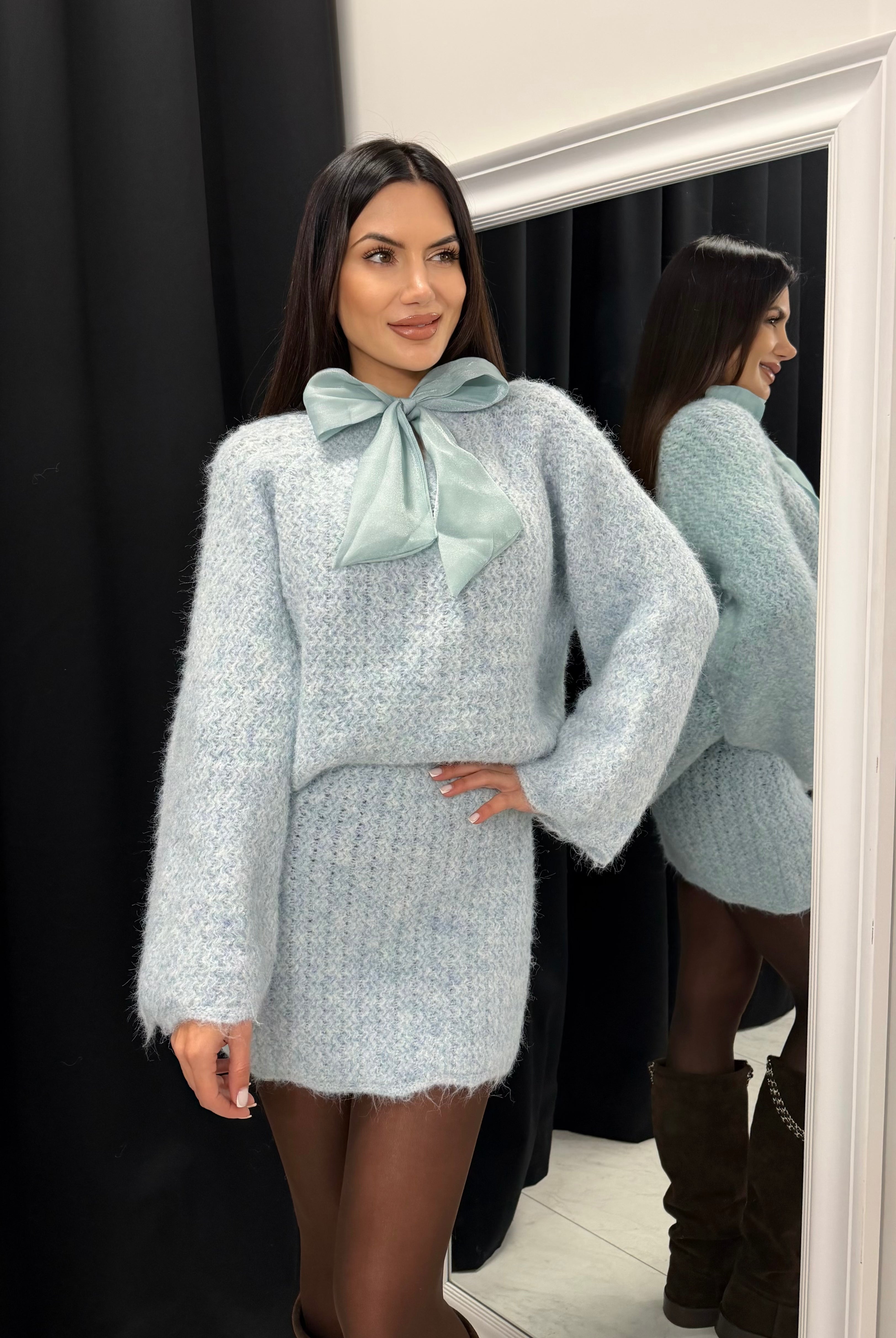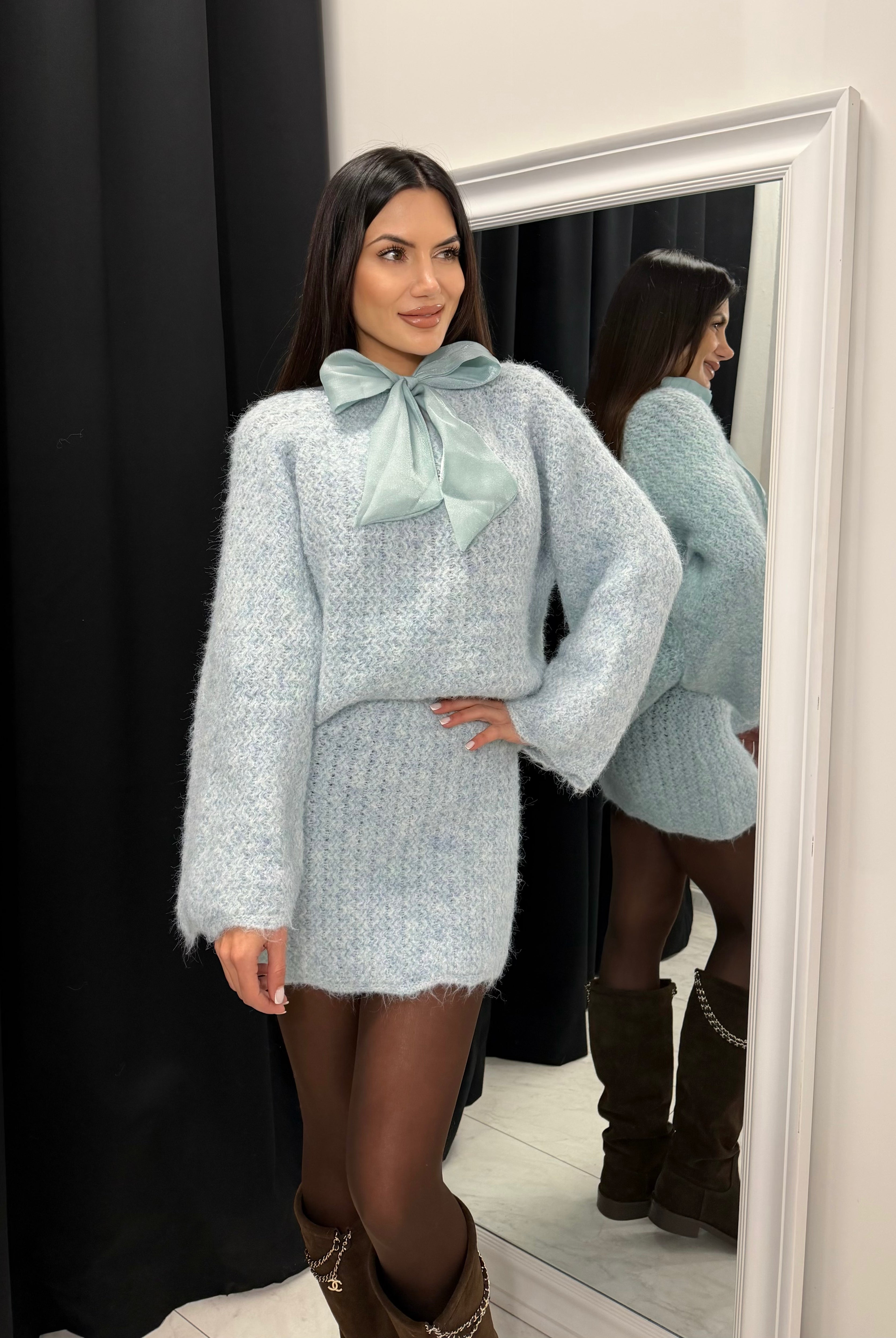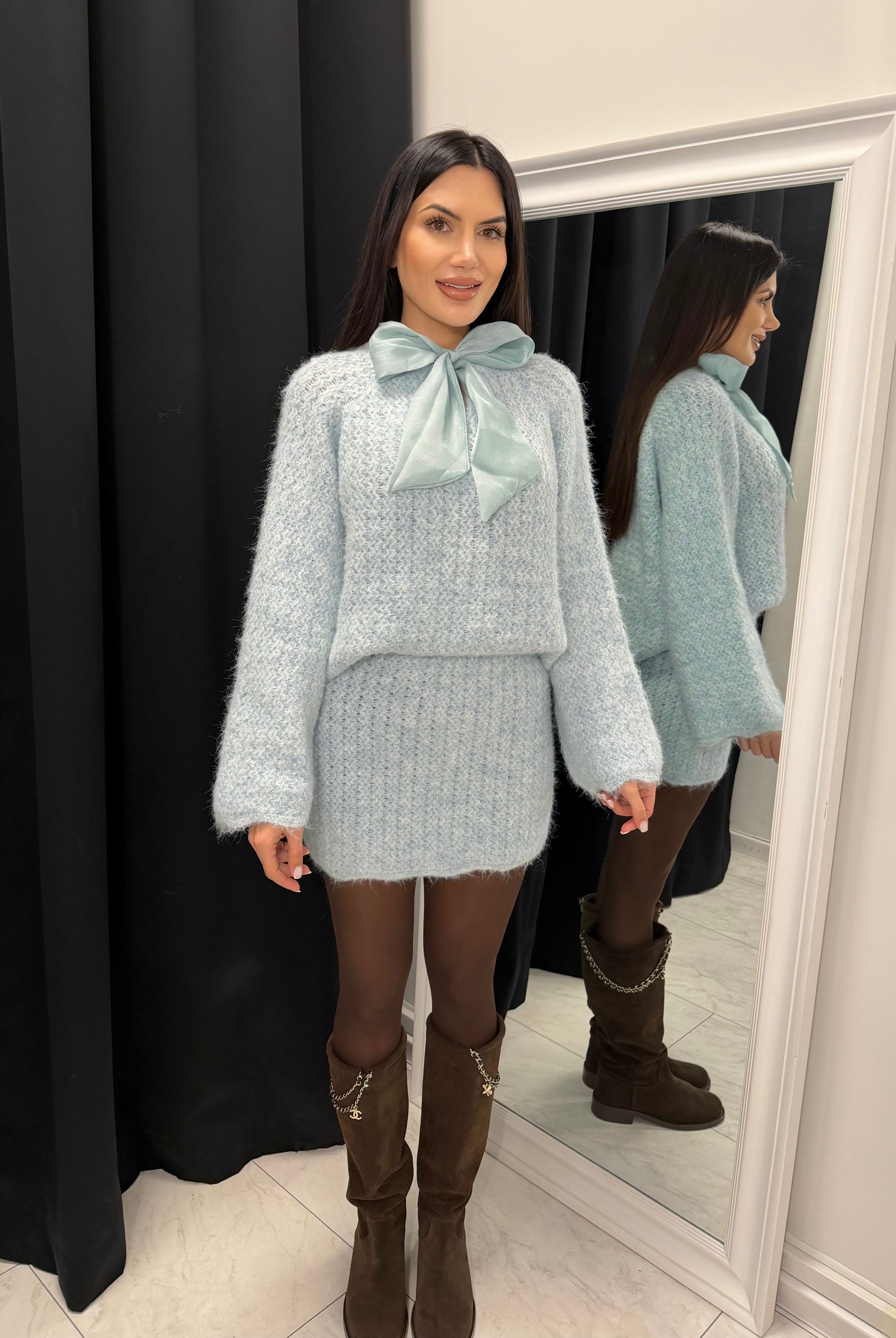 BABY BLUE LUXURY BOW - Плетен комплект с ефирна панделка