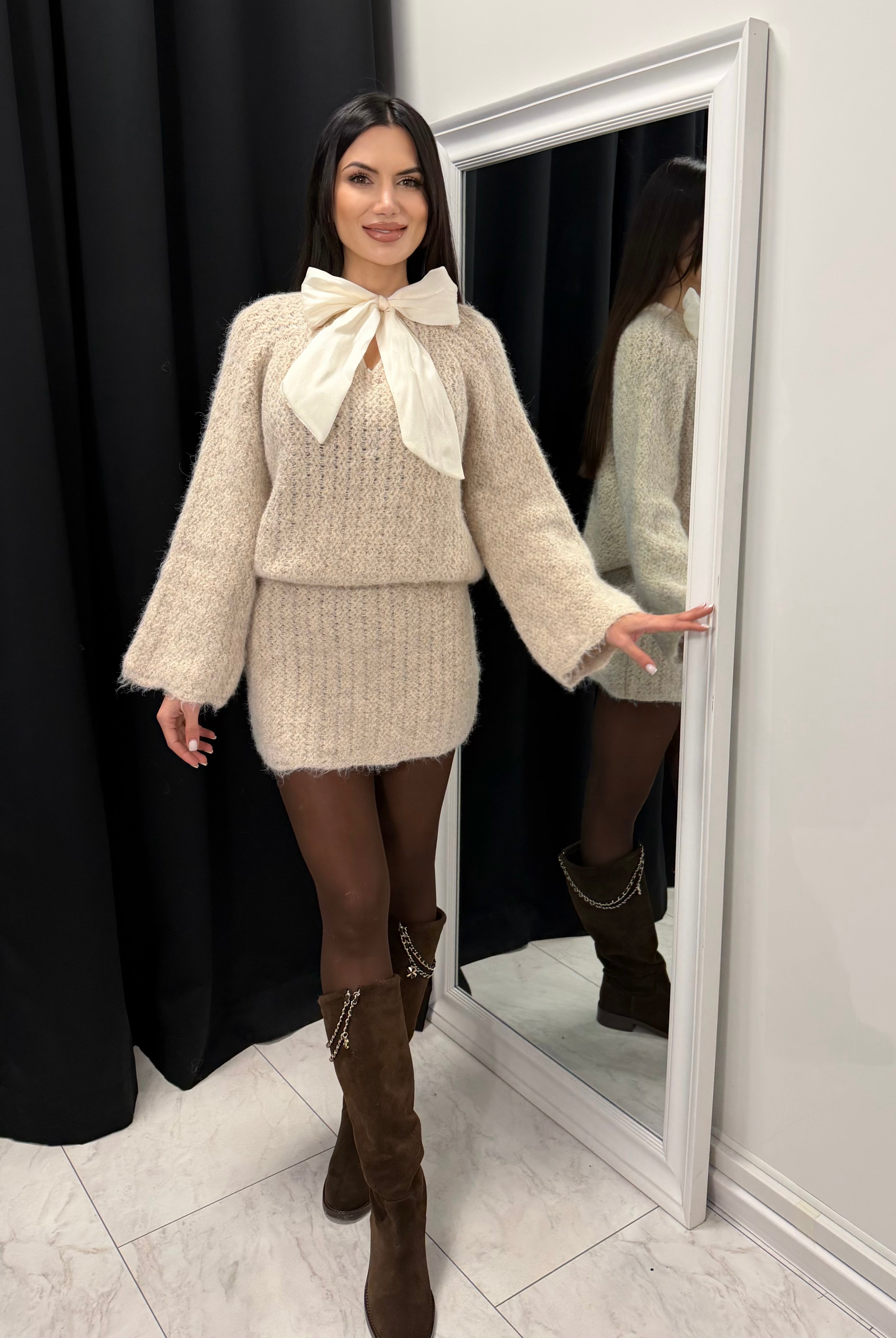 IVORY LUXURY BOW - Плетен комплект с ефирна панделка