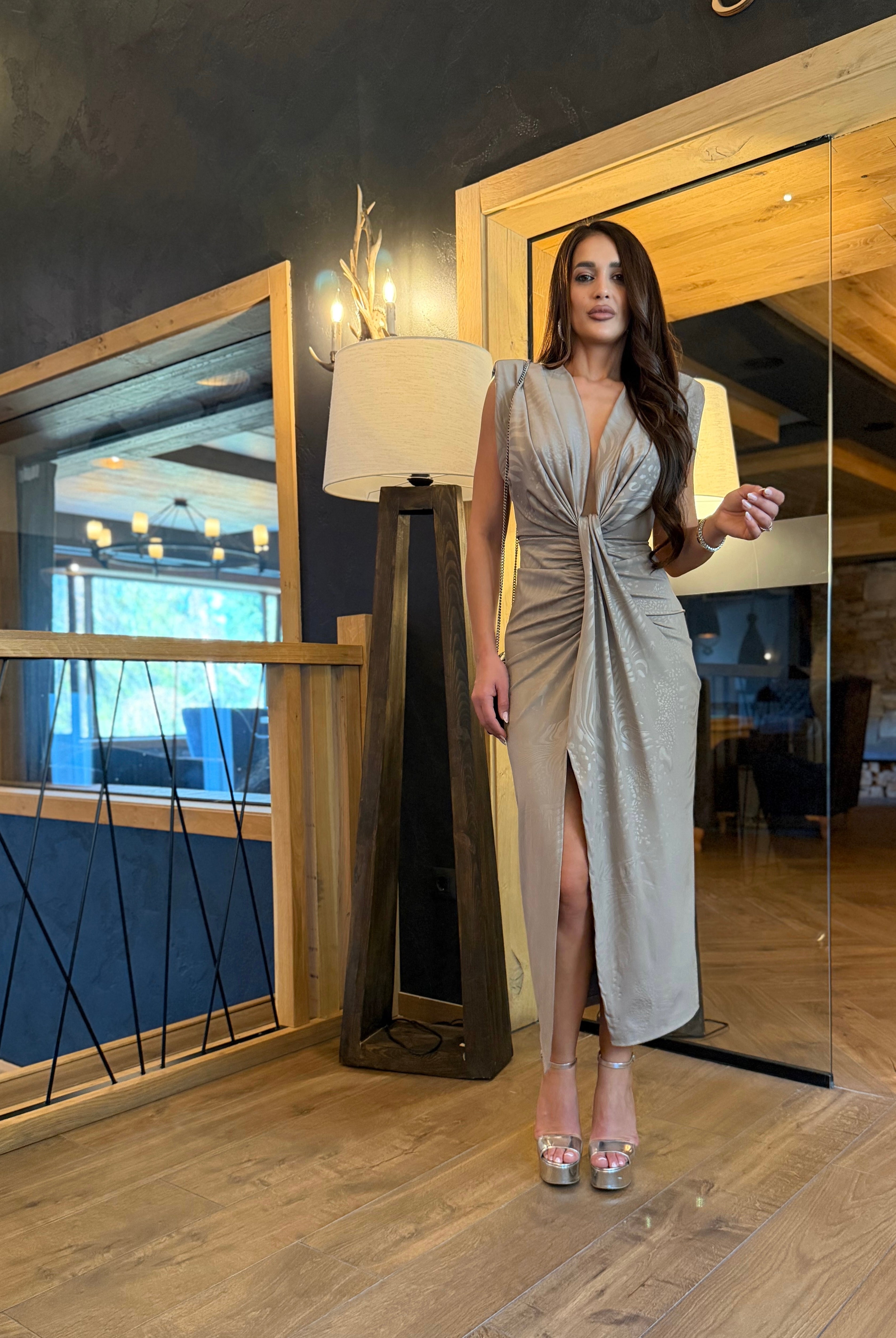 THE VIRAL DRESS – сатенена рокля с дантела и гръцко деколте