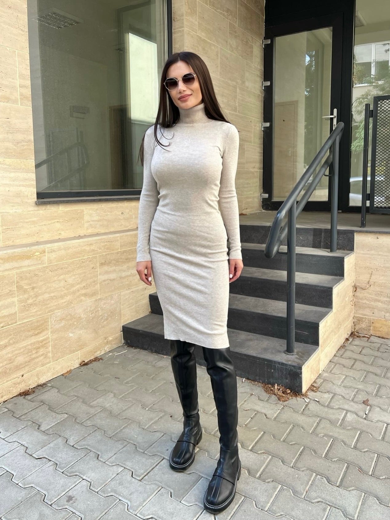 Рокля с дълъг ръкав и поло яка – бежова€38,35Стандартен размер/ One size