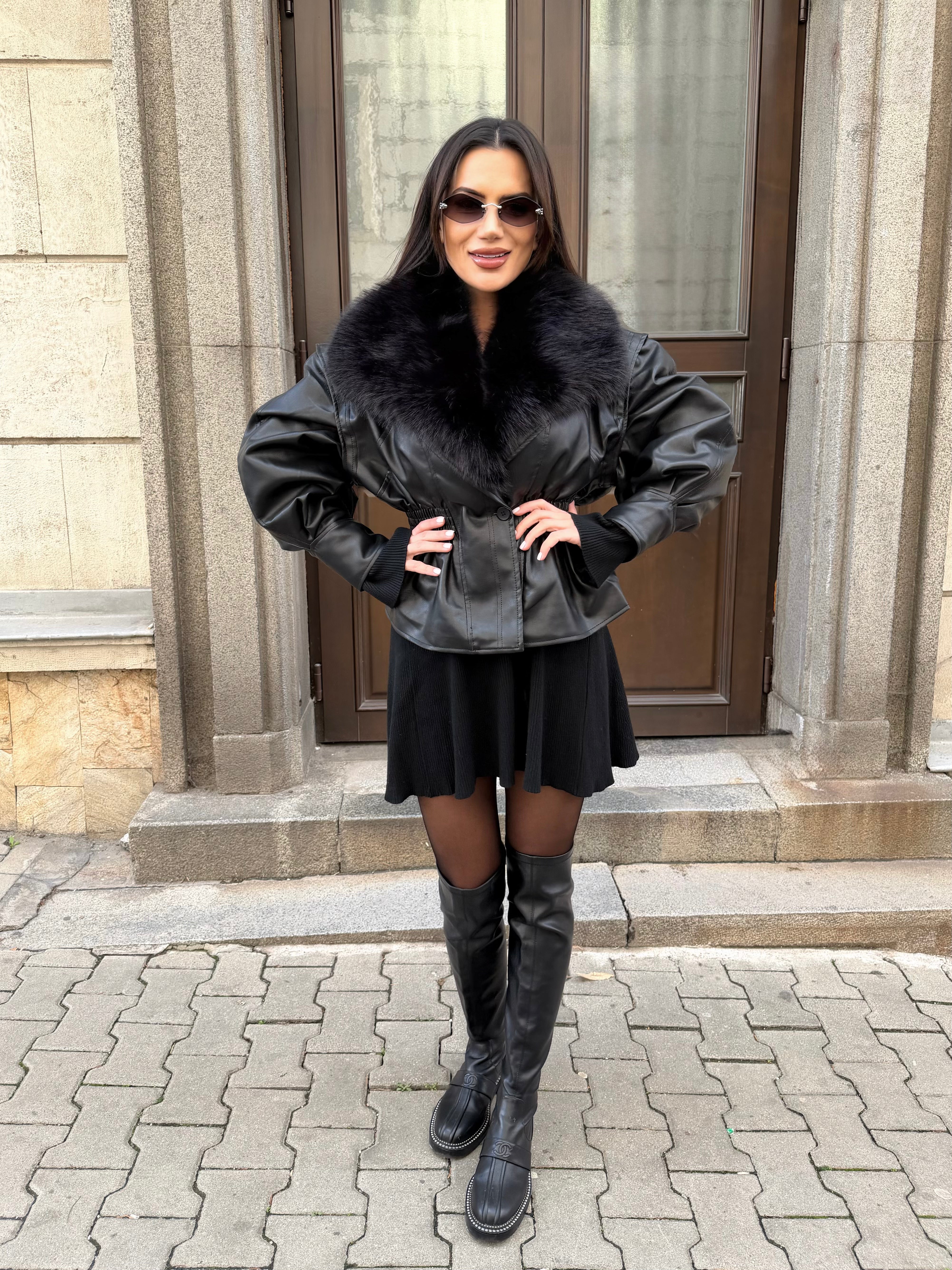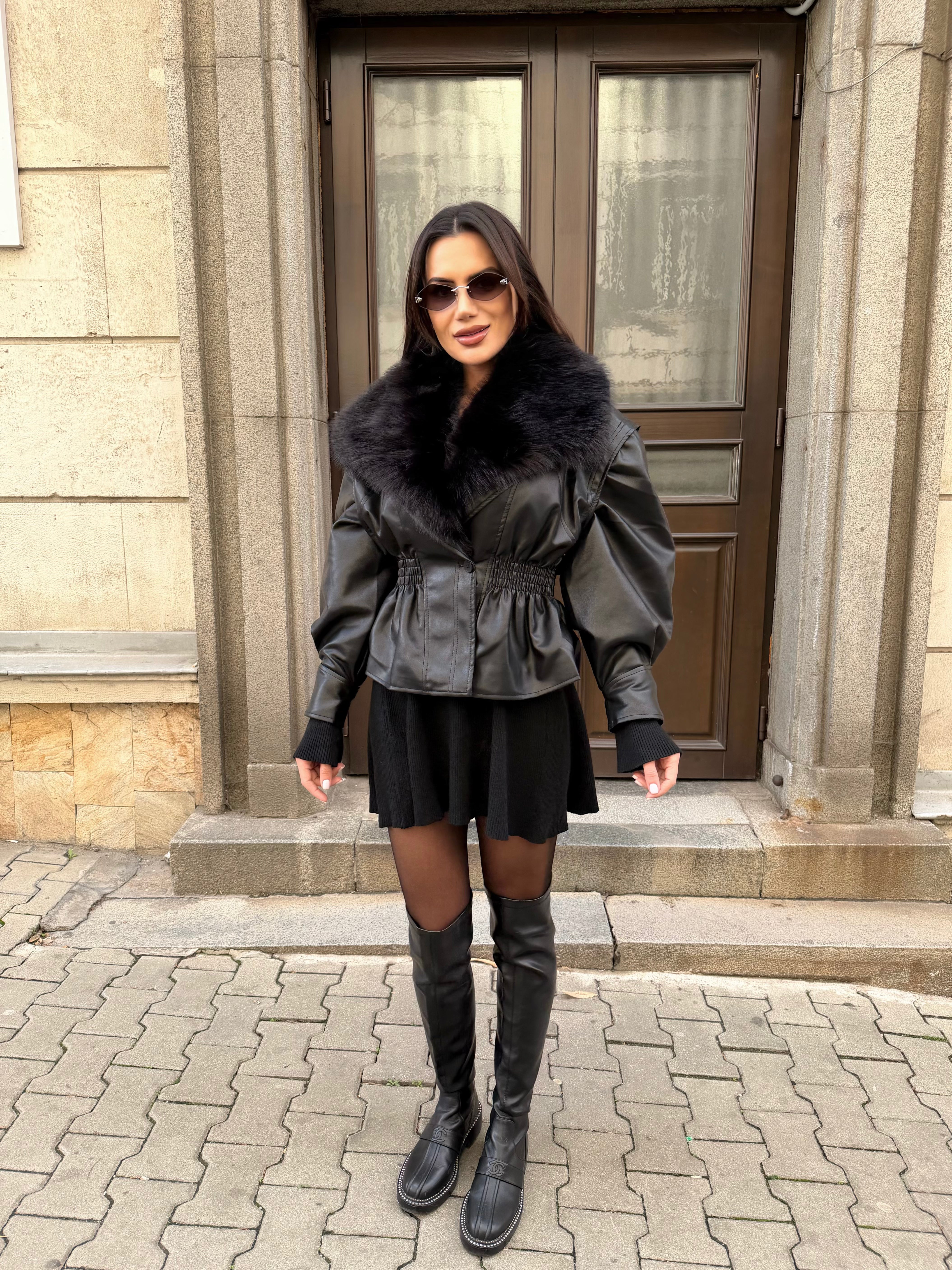 LUX FUR COLLAR JACKET – яке от еко кожа с яка