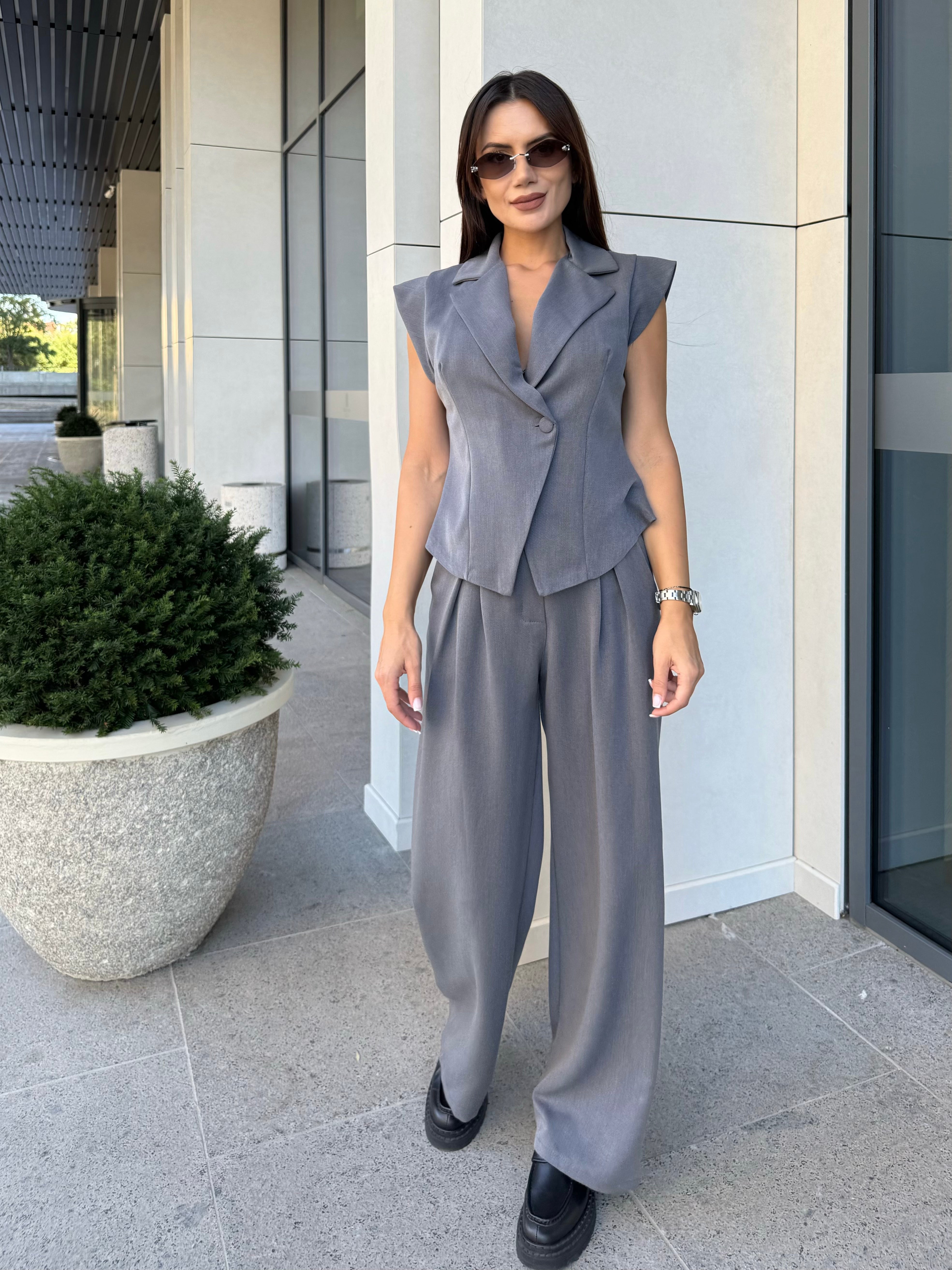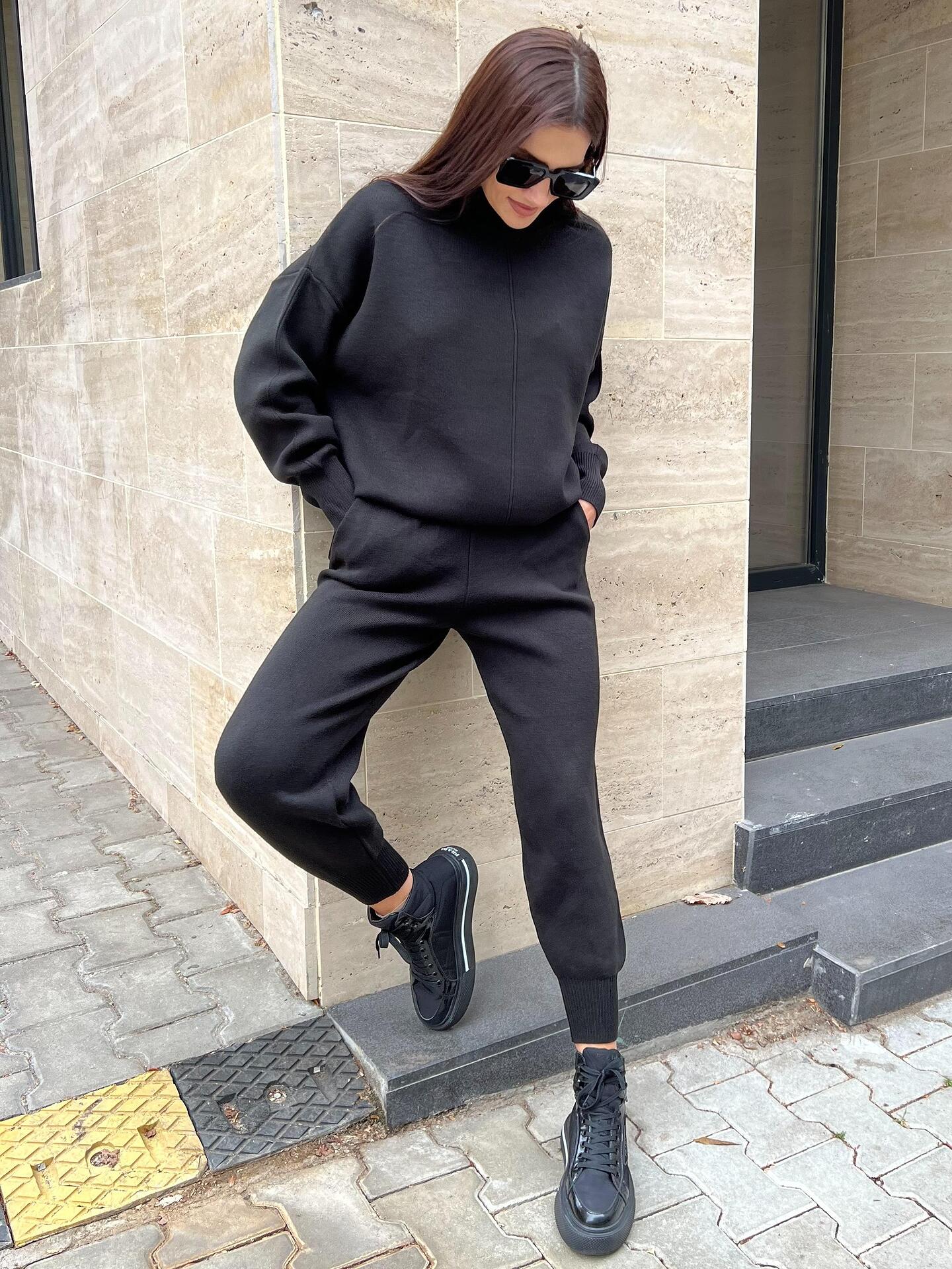 Рипсен комплект – топ с цип и панталон с цепки на глезените