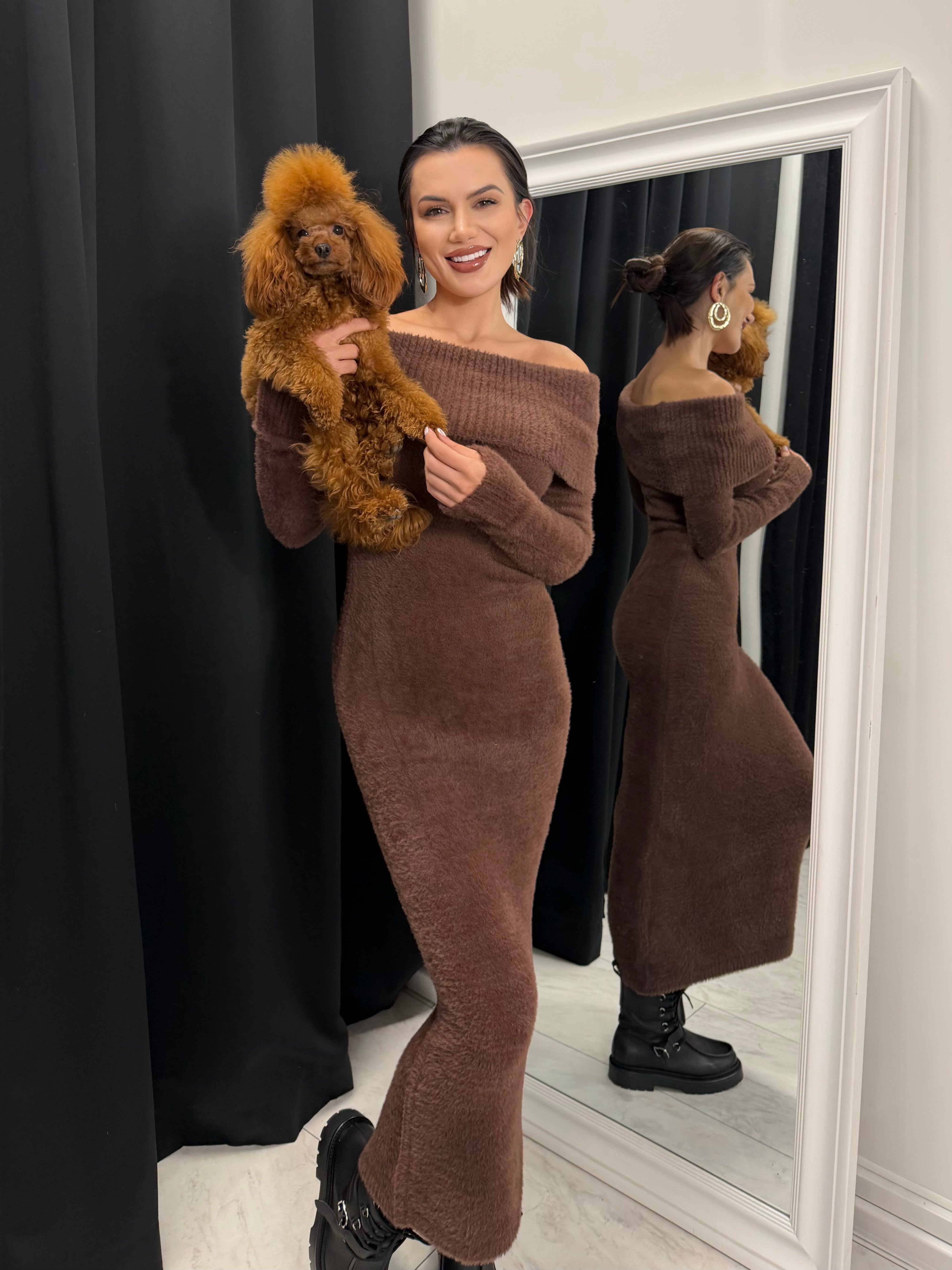 LUX FUR DRESS – дълга рокля от фино плетиво с кожи