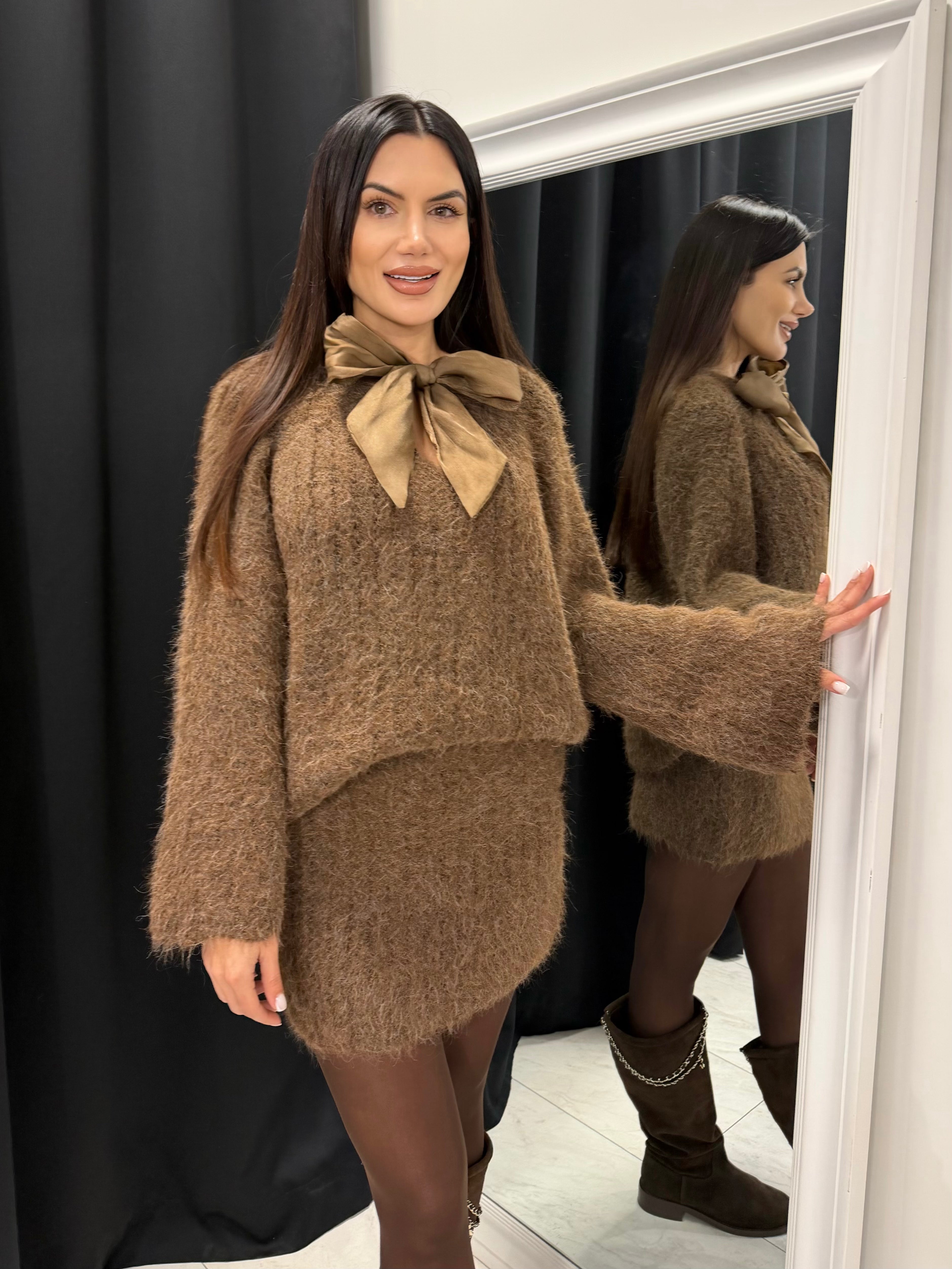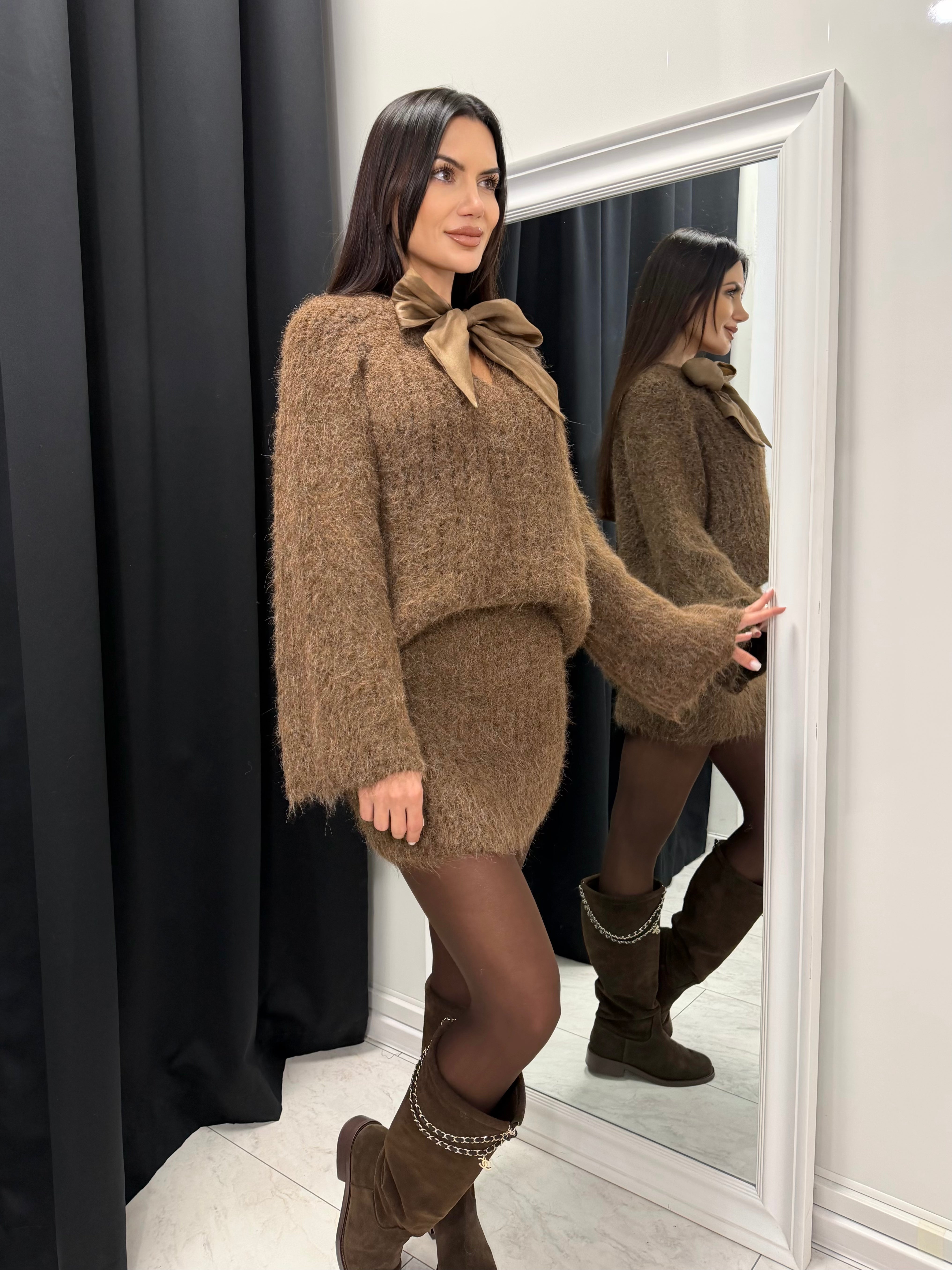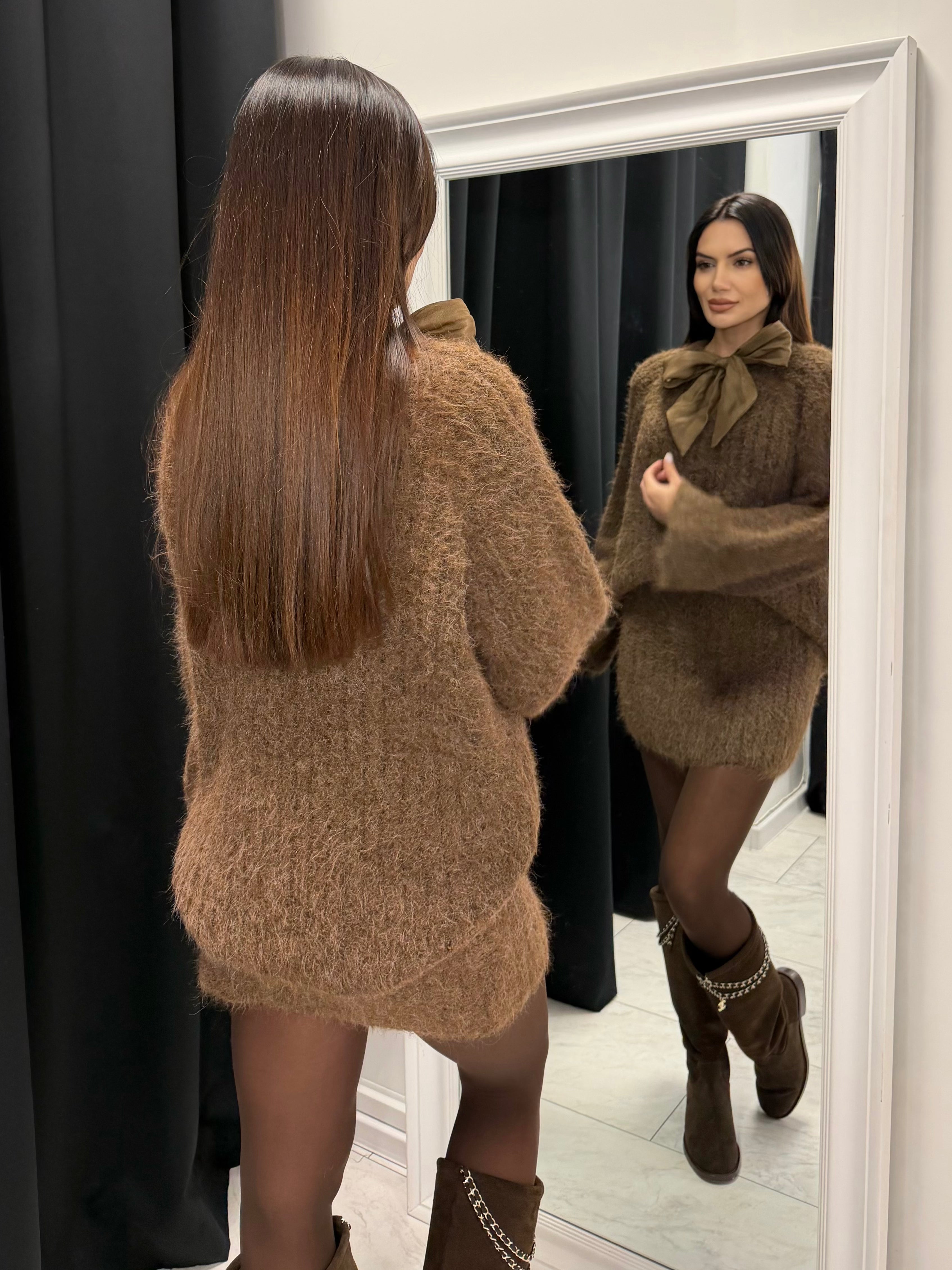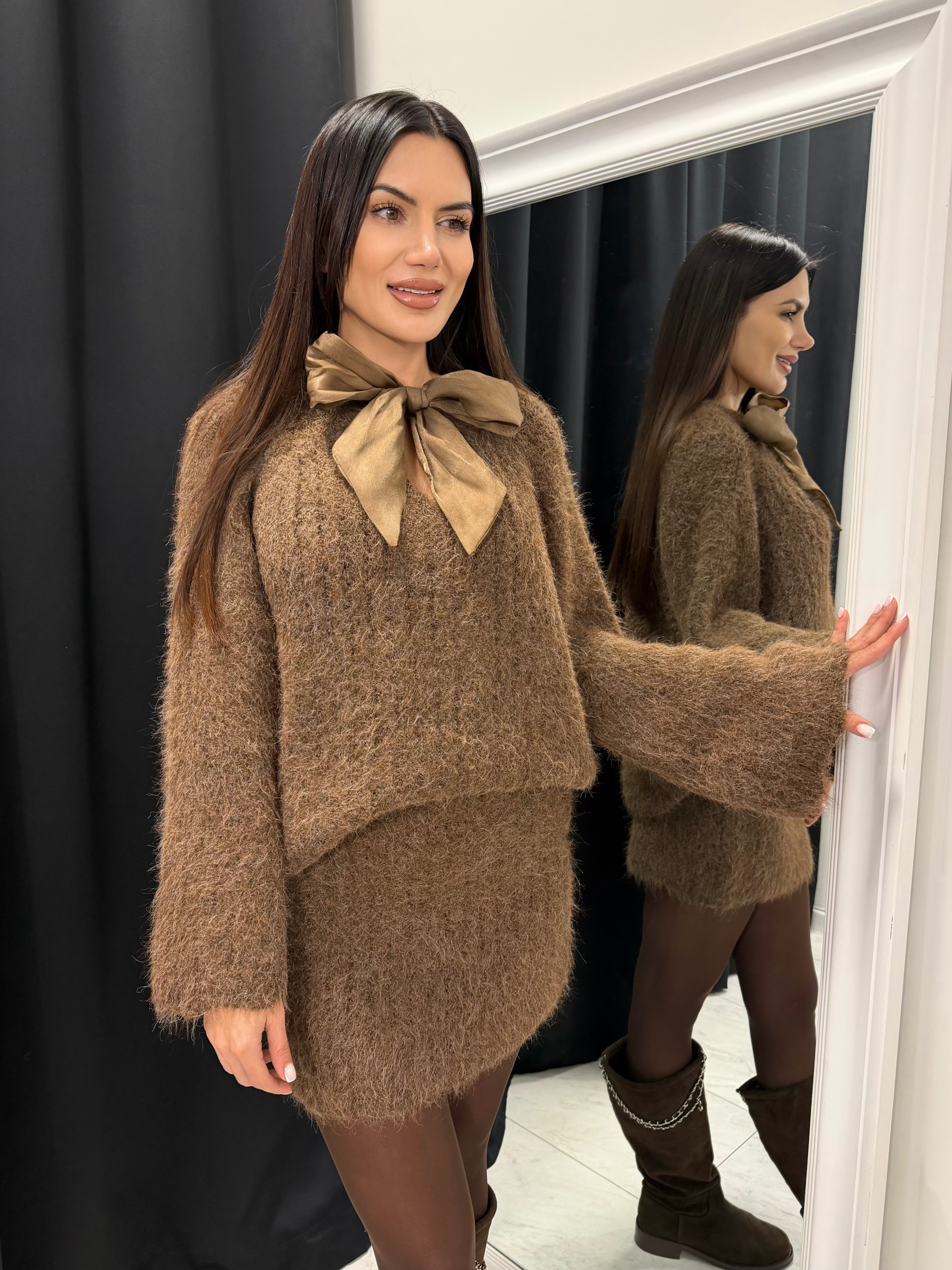 MOCHA BROWN LUXURY BOW - Плетен комплект с ефирна панделка