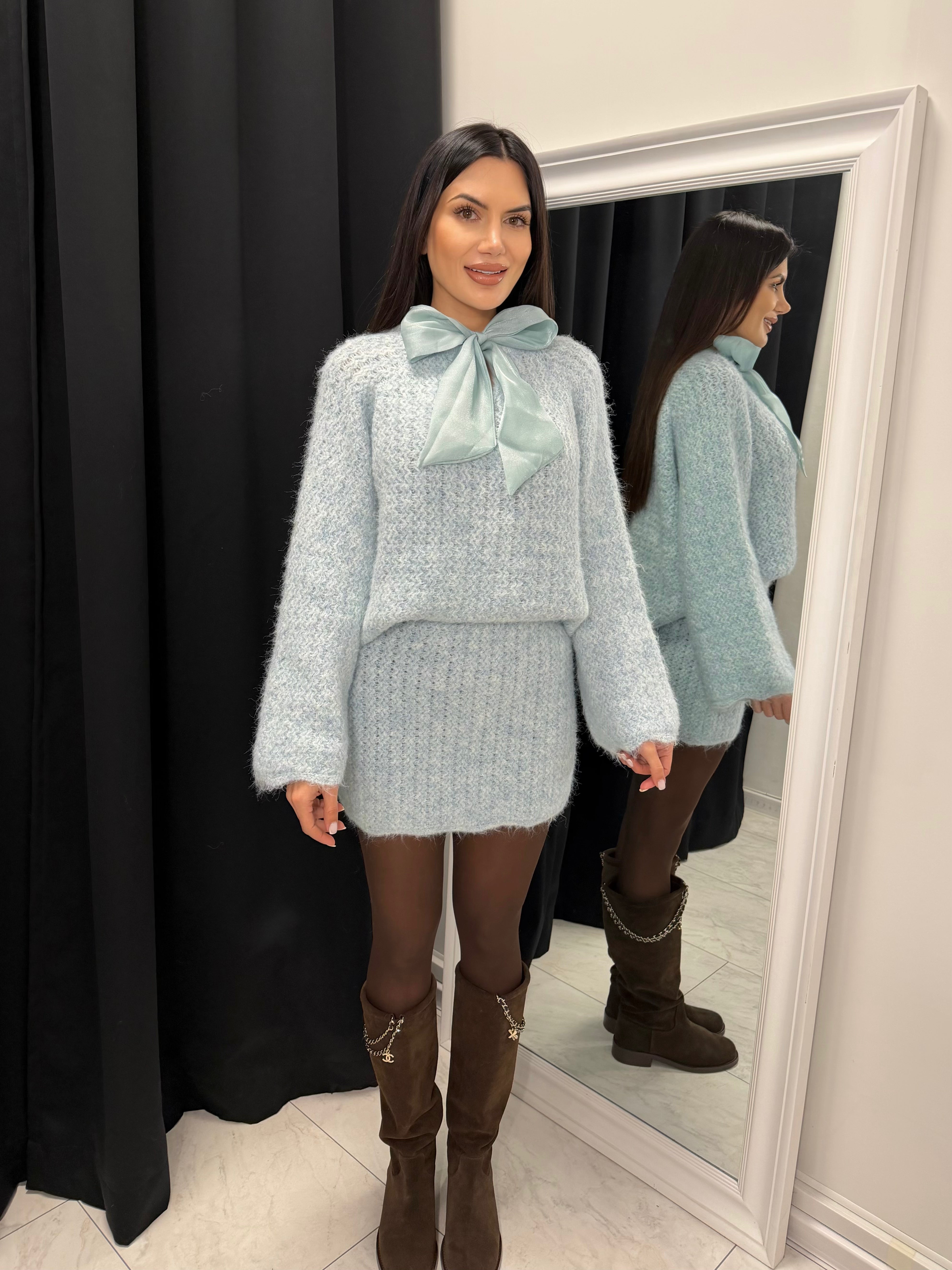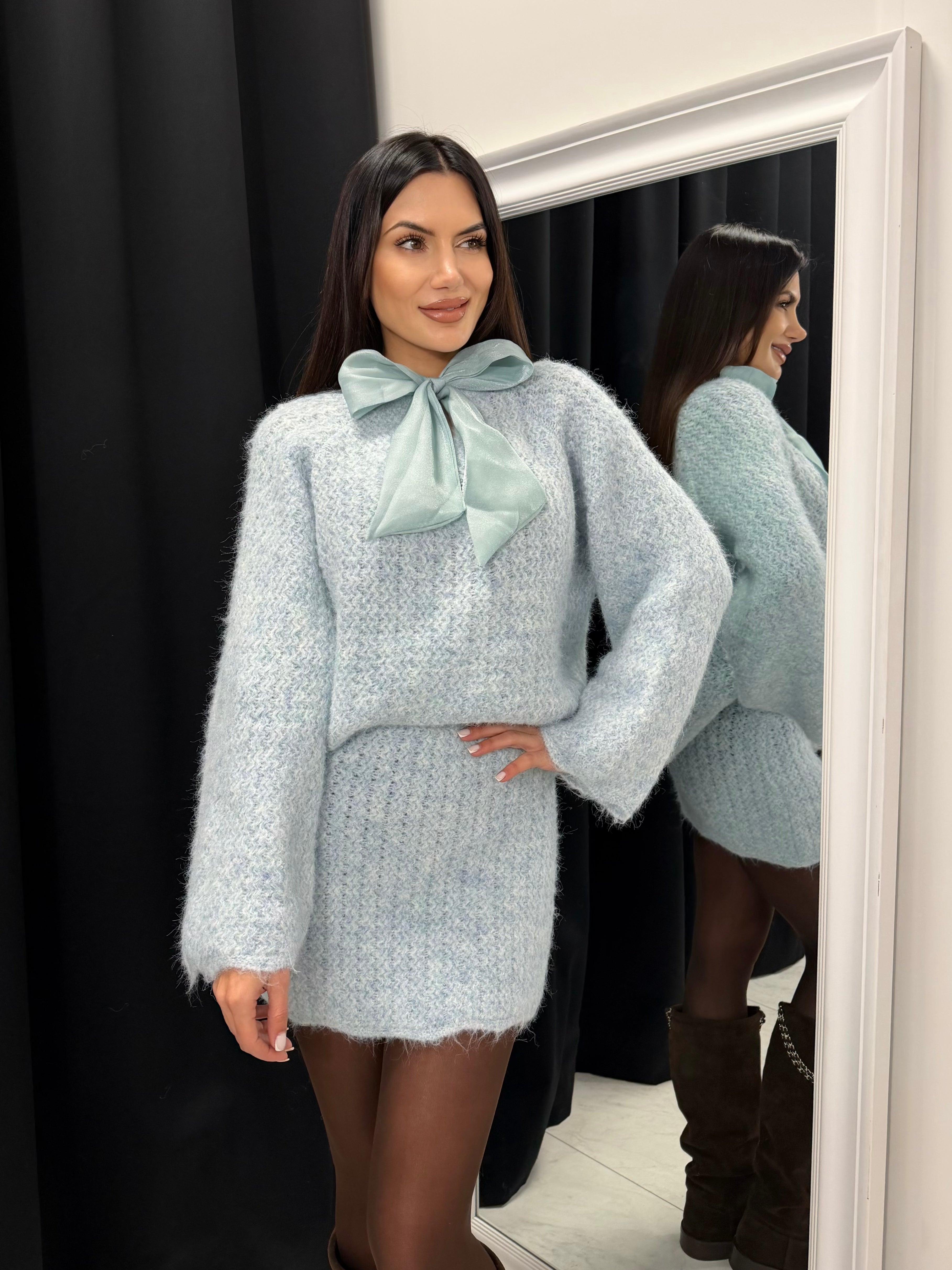 BABY BLUE LUXURY BOW - Плетен комплект с ефирна панделка