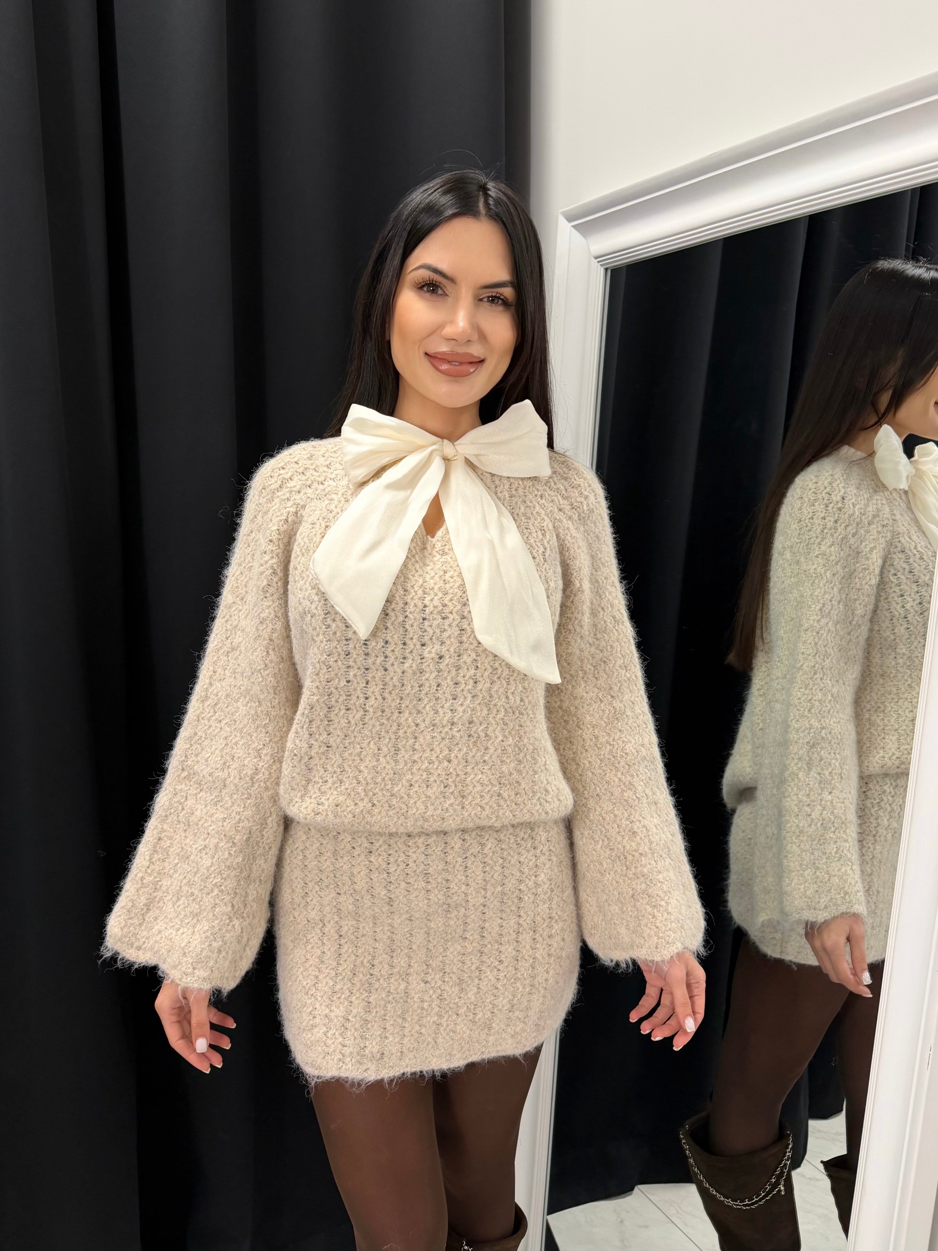 IVORY LUXURY BOW - Плетен комплект с ефирна панделка