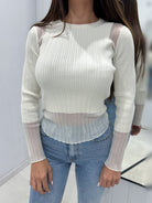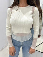 БЛУЗА EVON с обло деколте от фино машинно плетиво.