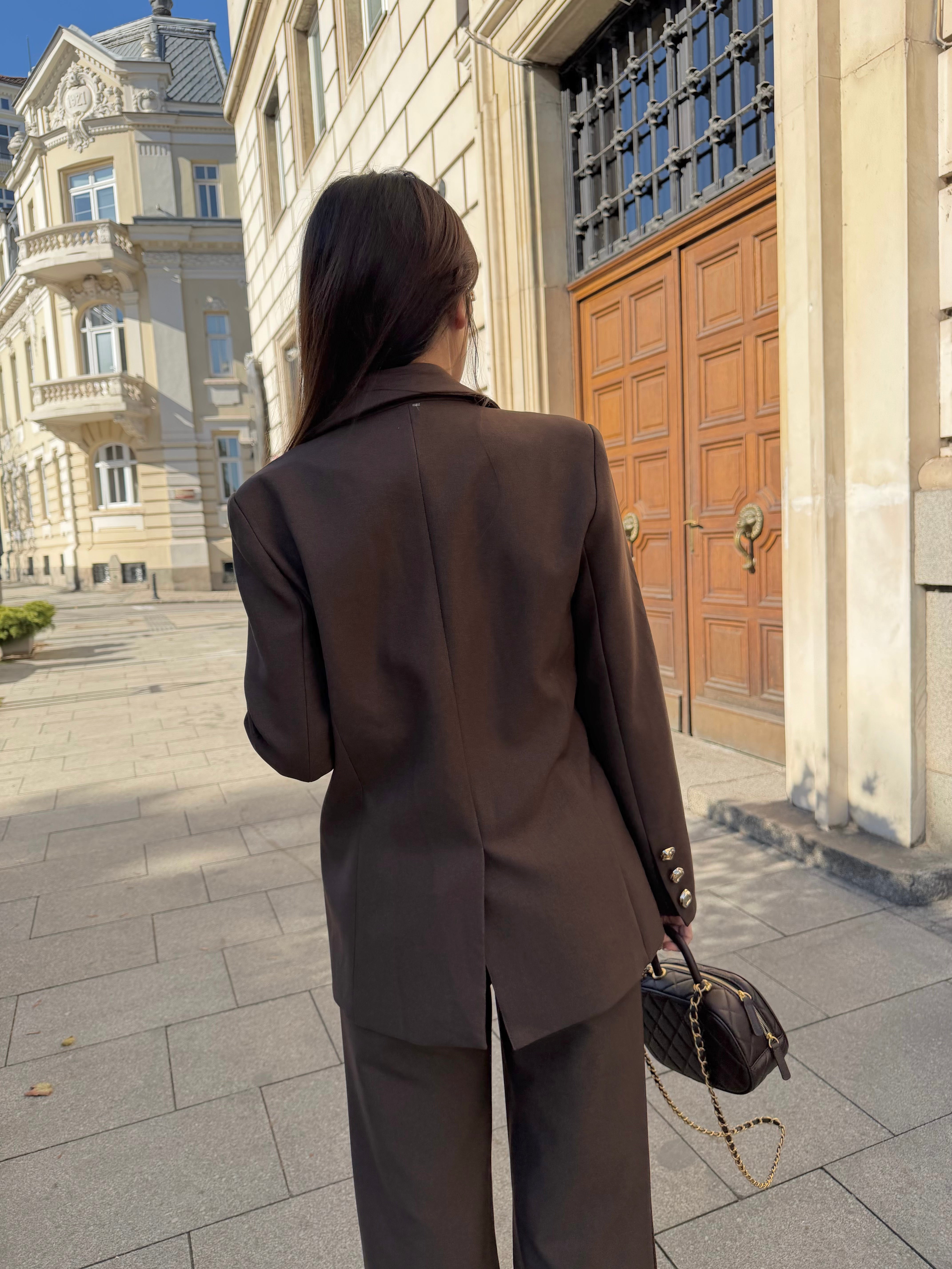 Луксозен костюм от две части – сако и панталон, създаден за съвременната жена с усет към детайла.
