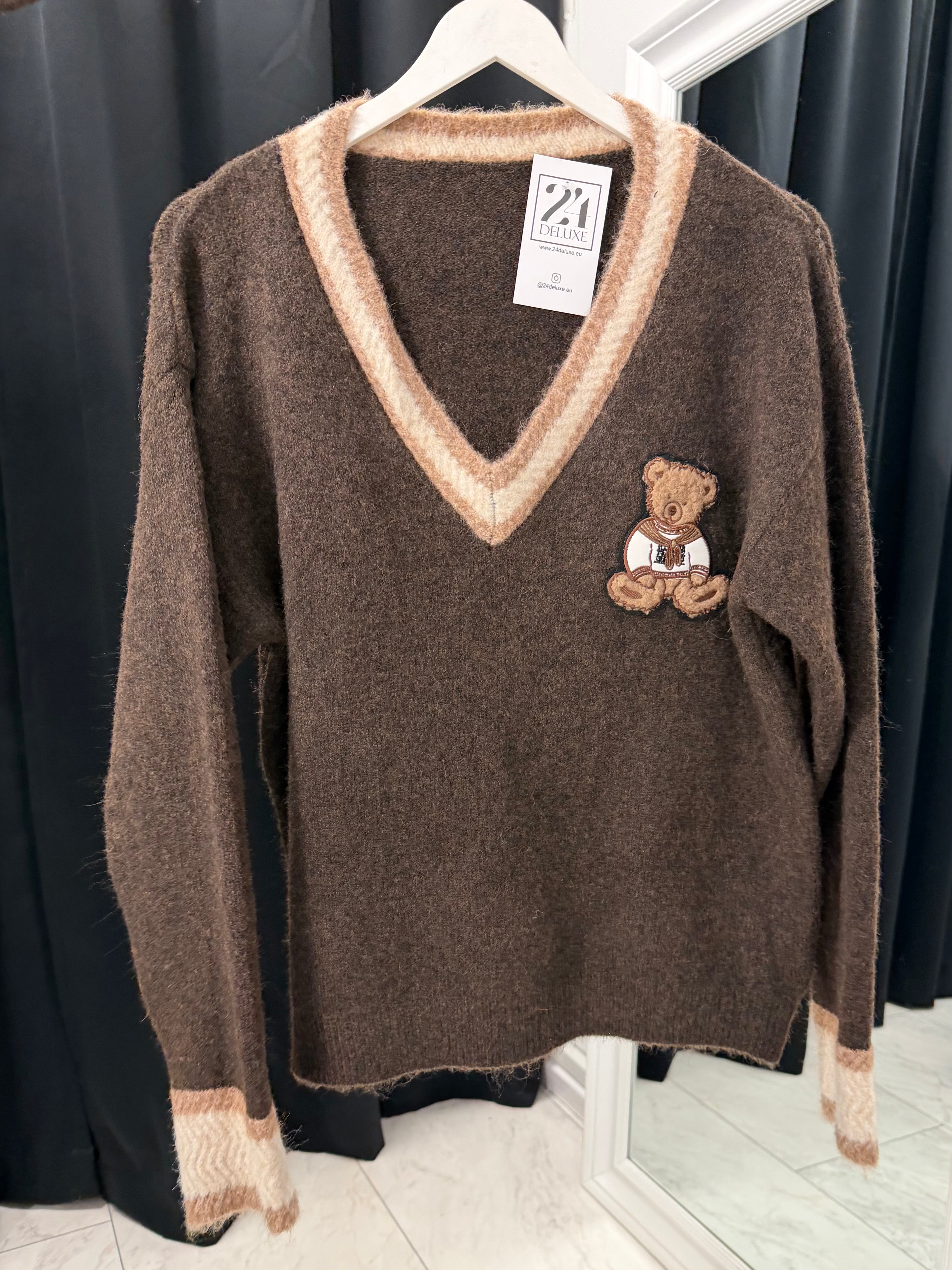 TEDDY SWEETHEART KNIT – пуловер с V-деколте и мече