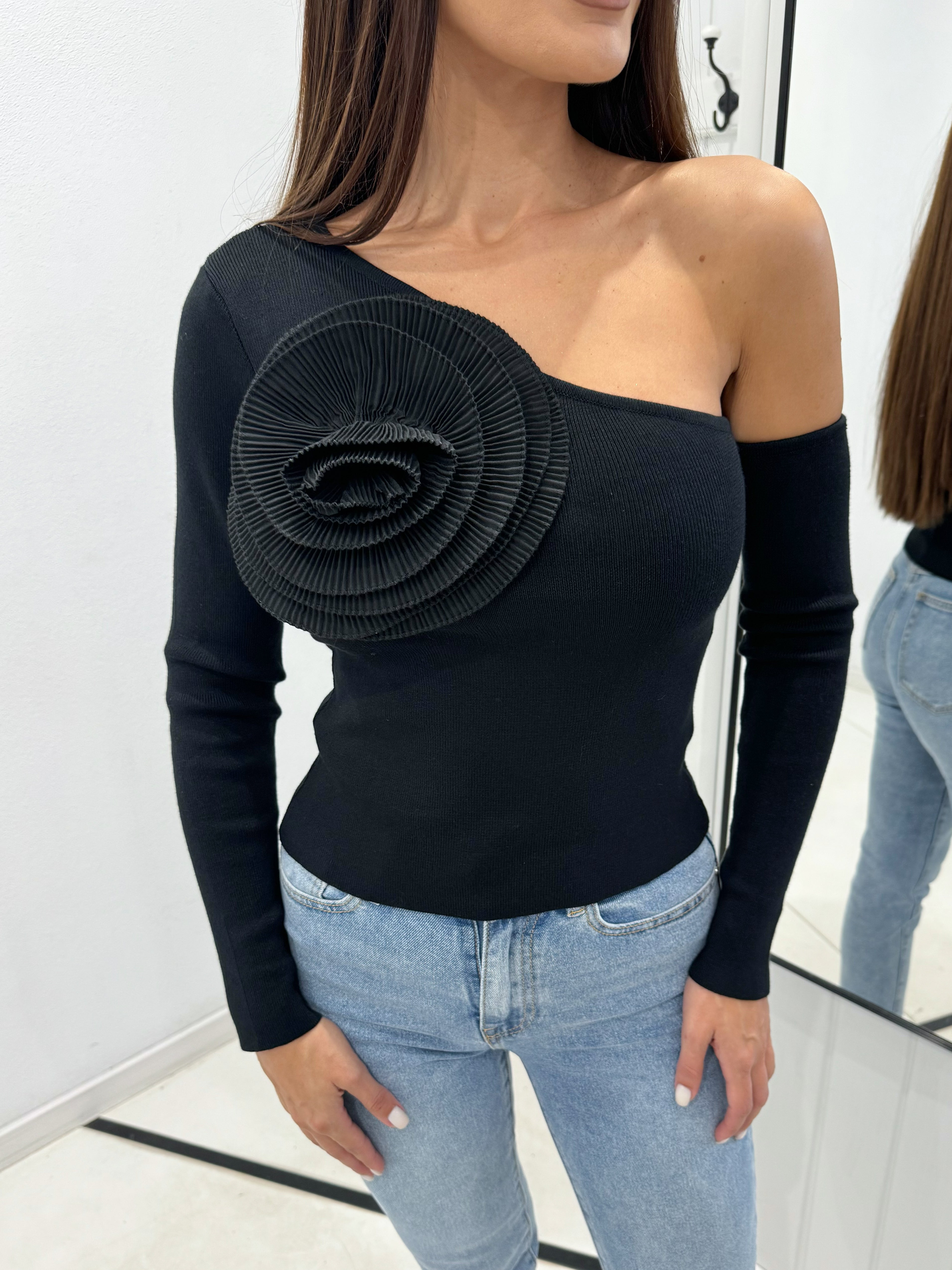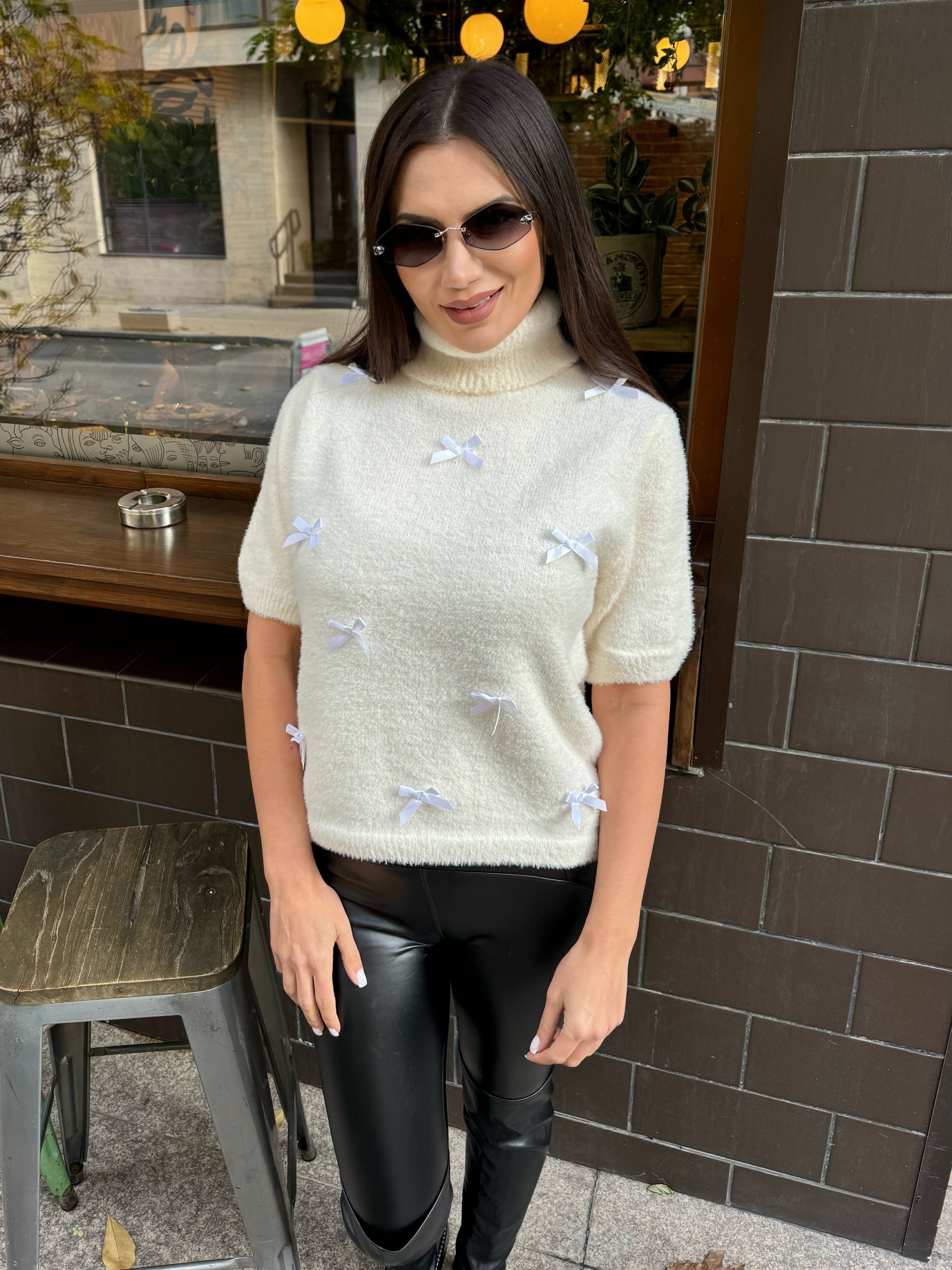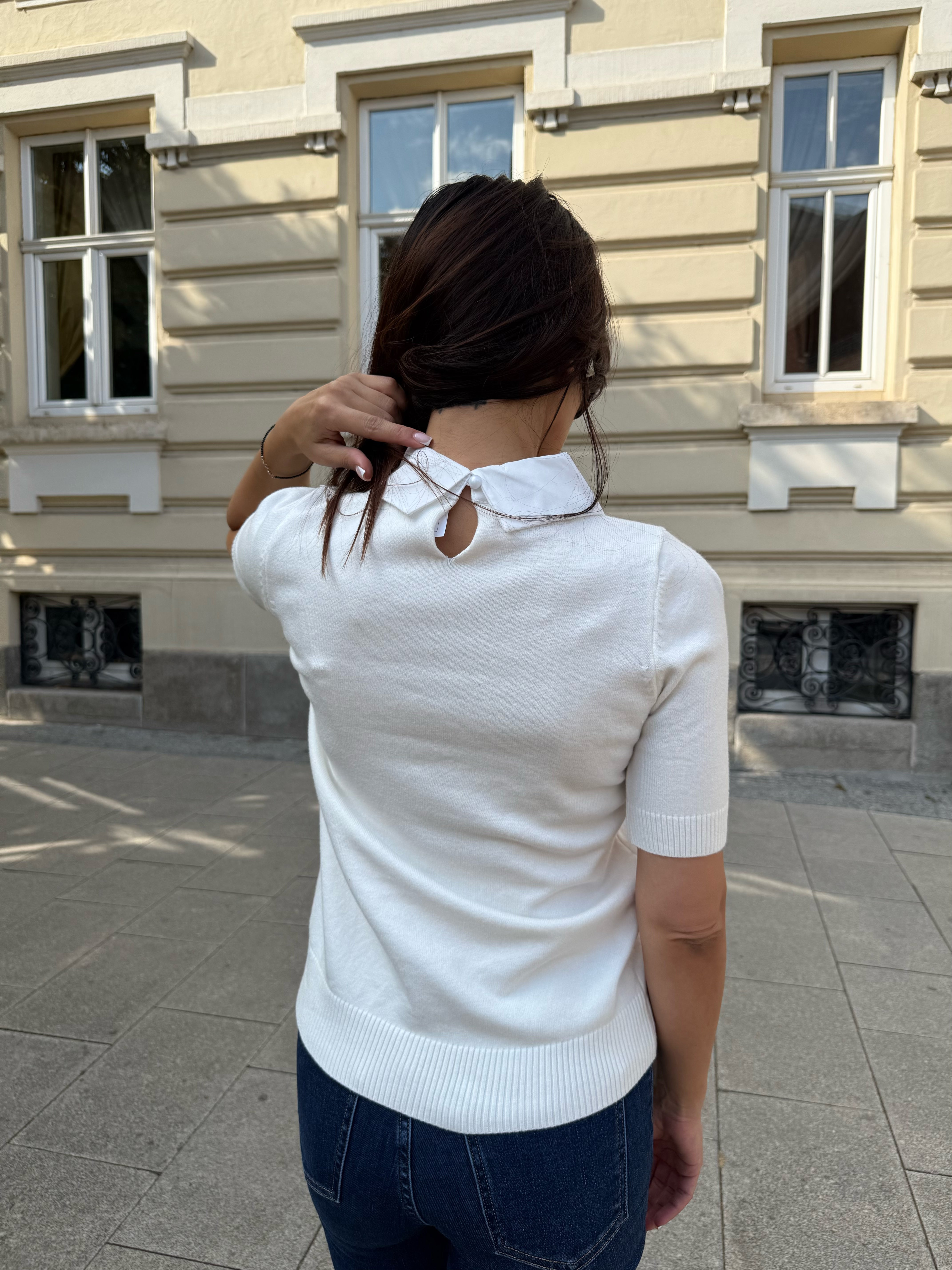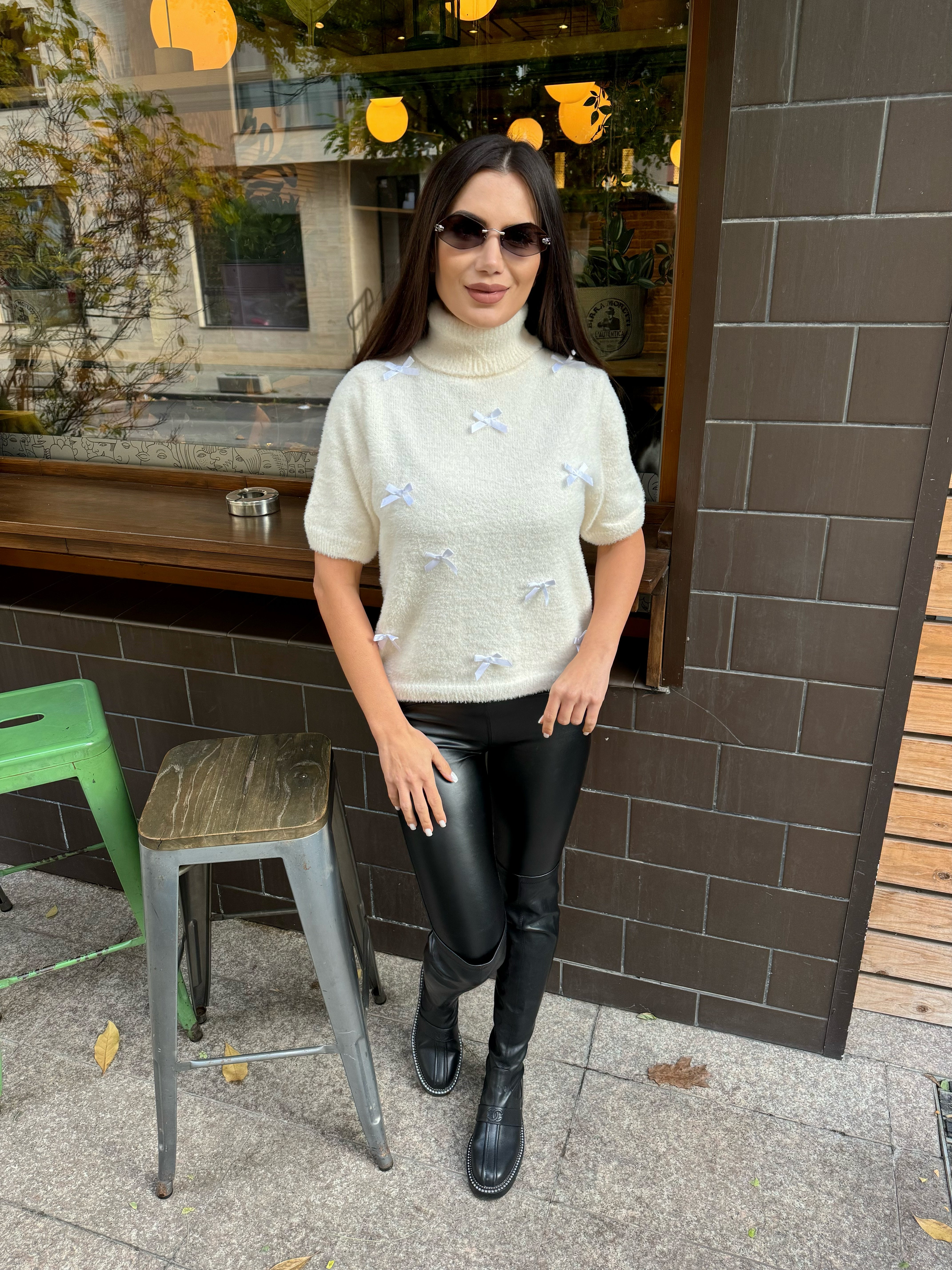 LACE CUFF KNIT – елегантен плетен топ с дантелени ръкави