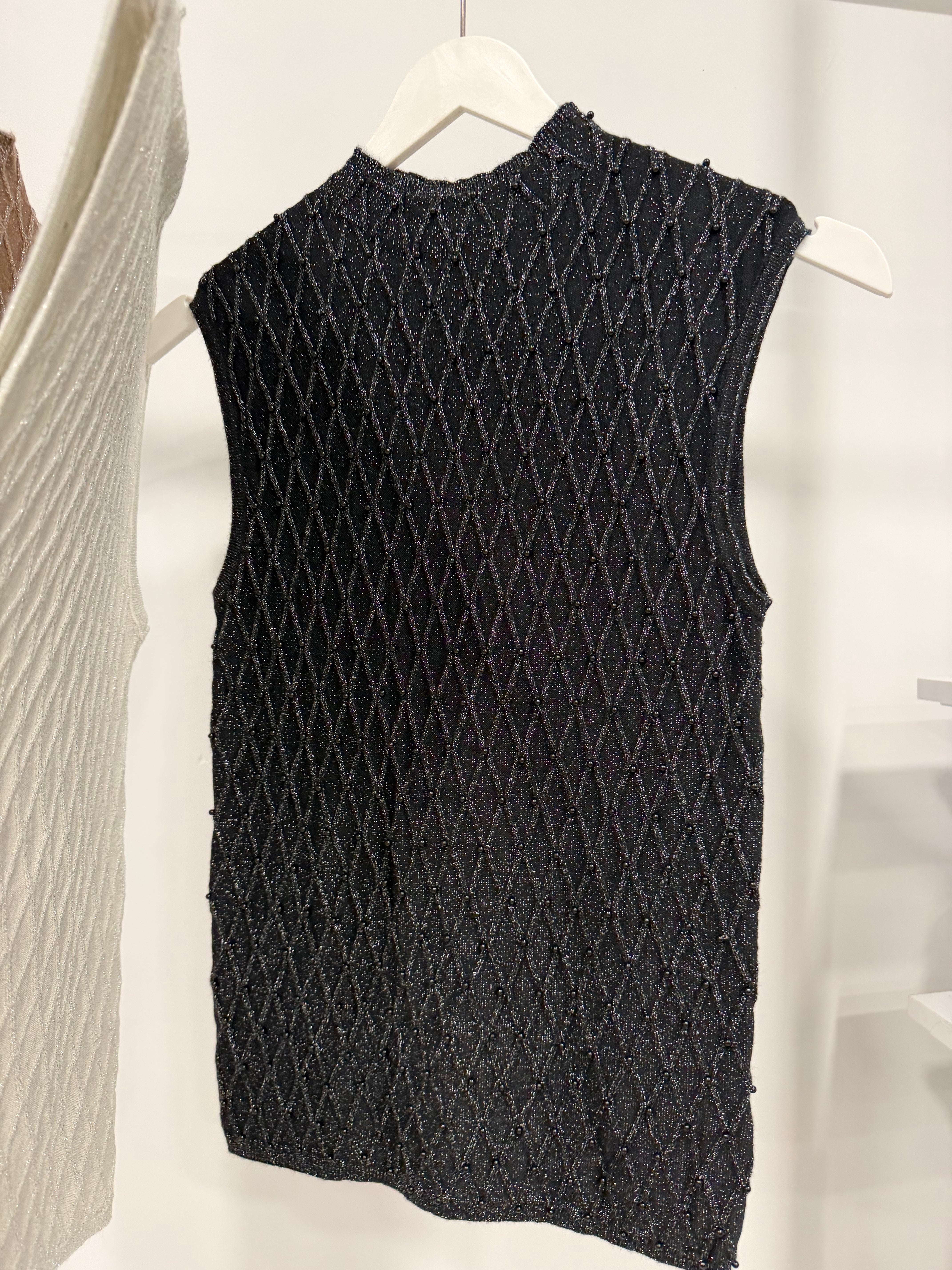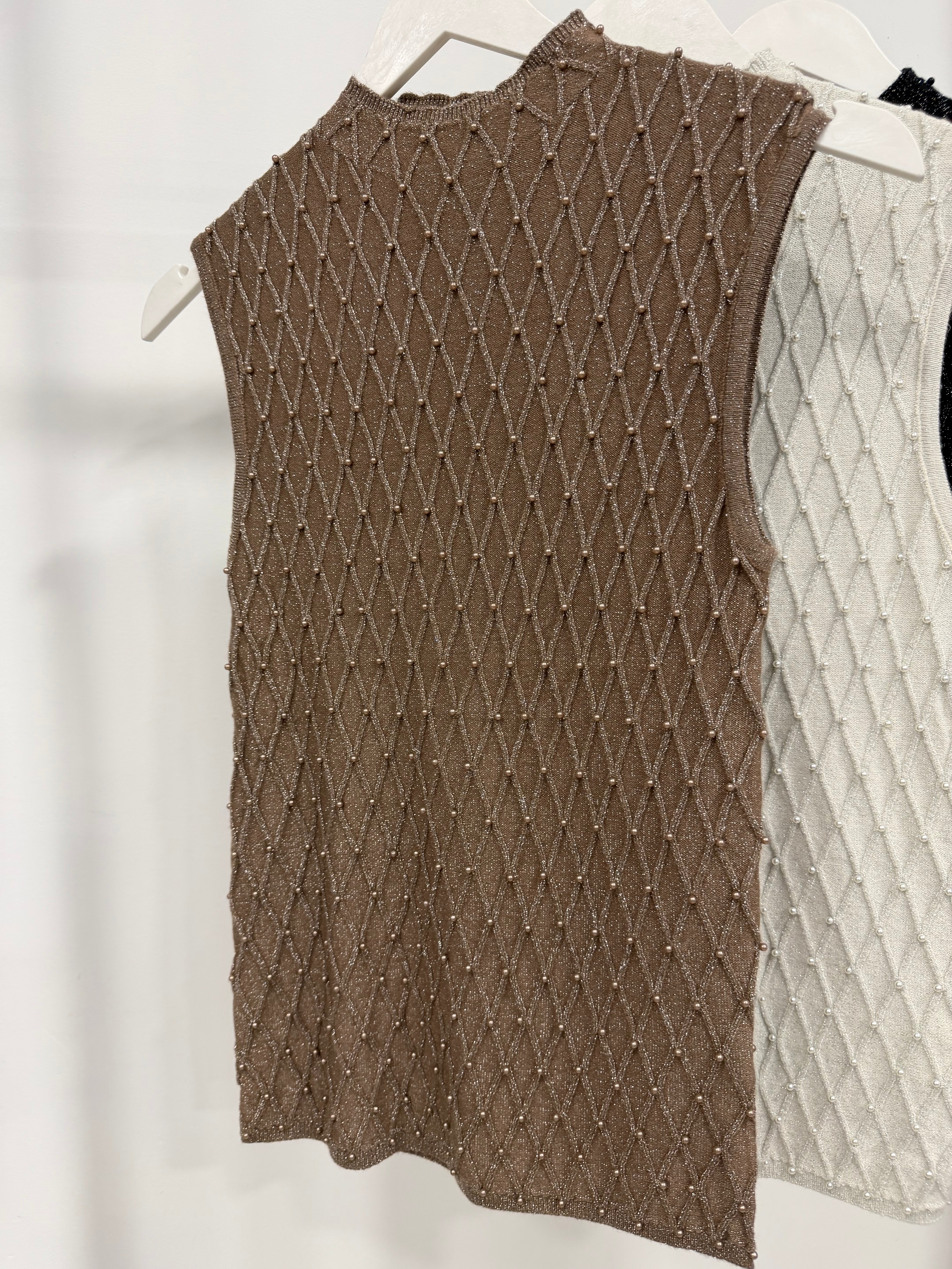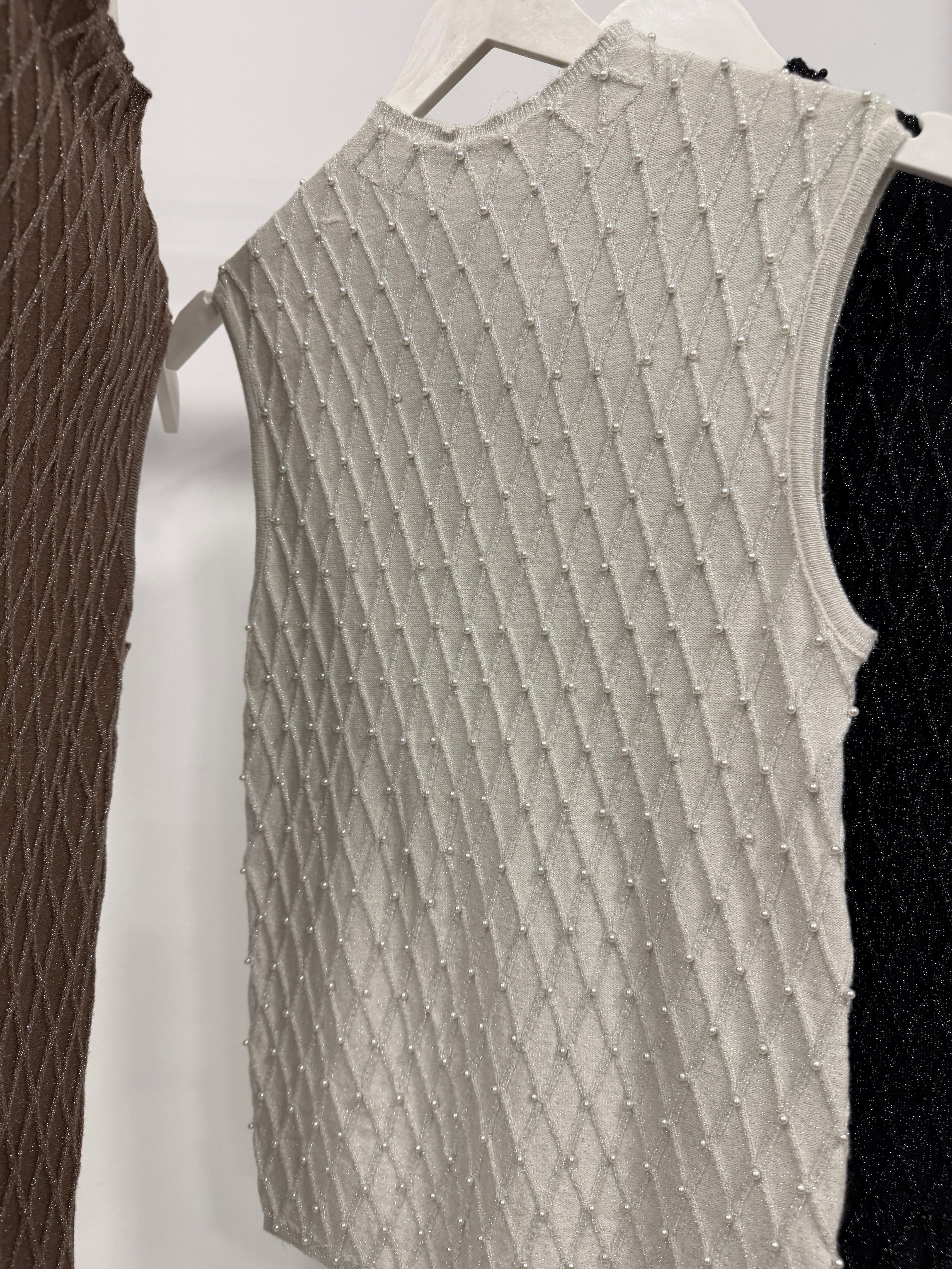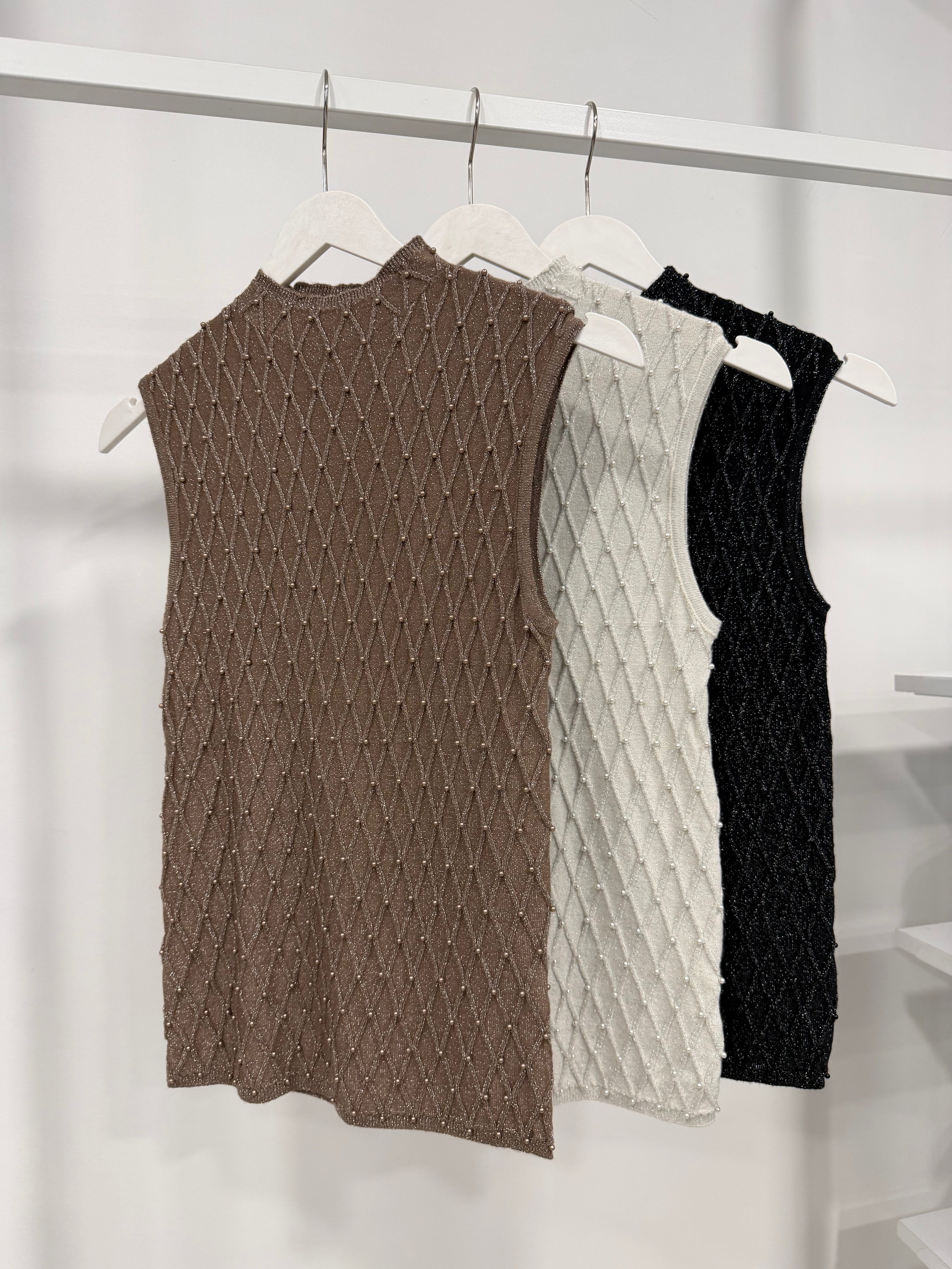 PEARL SHIMMER TOP - Блуза без ръкави с перлени детайли