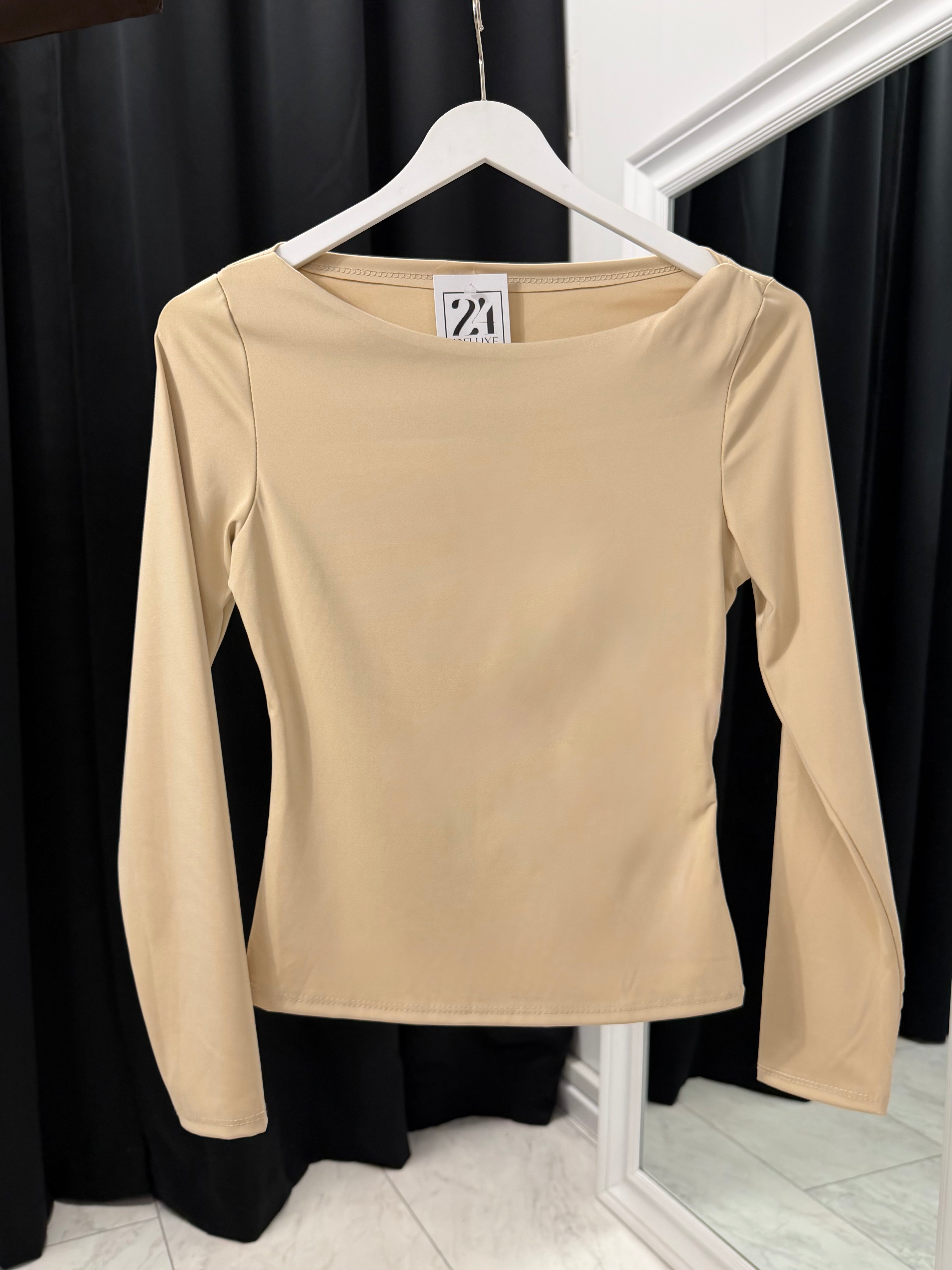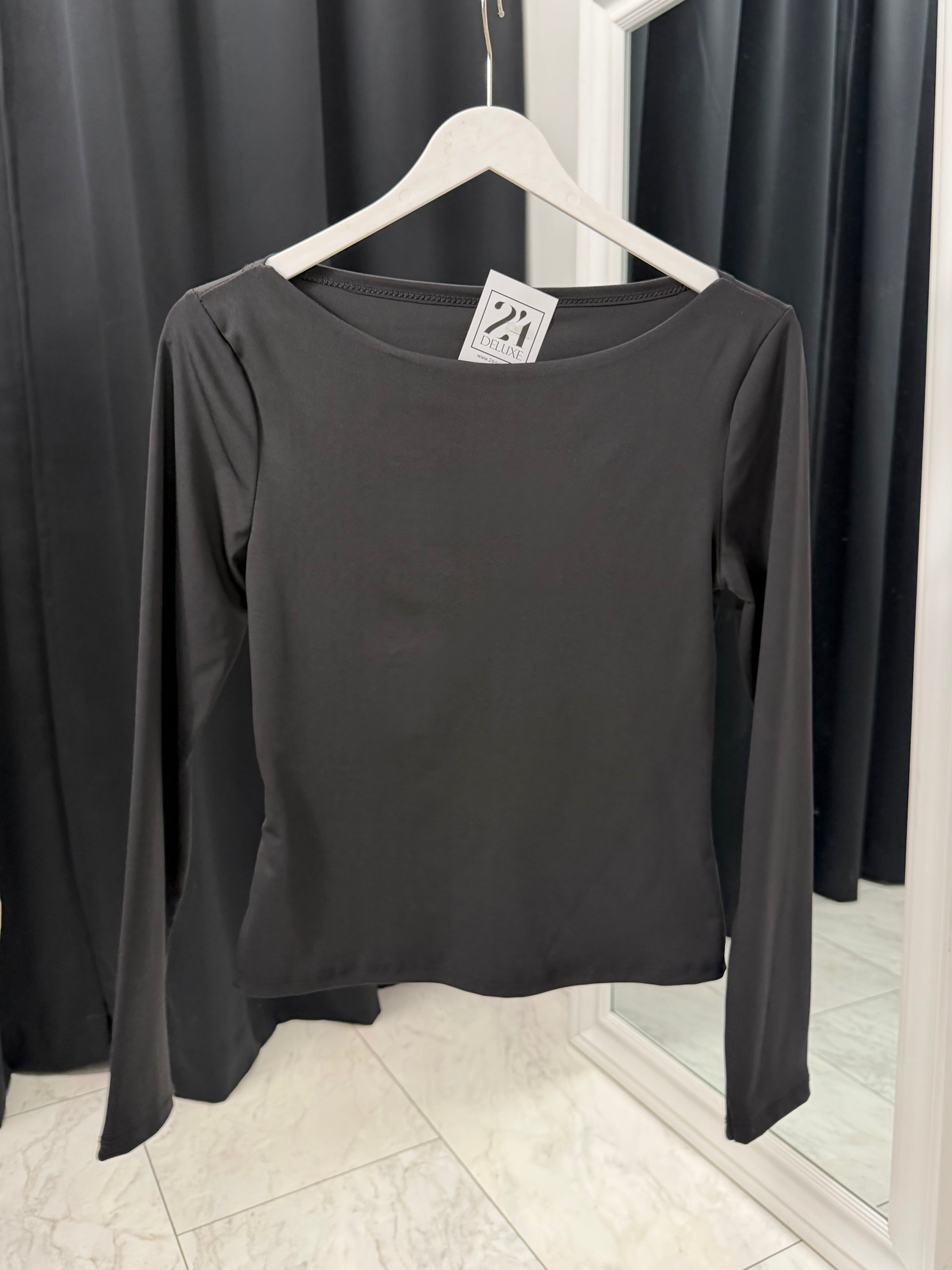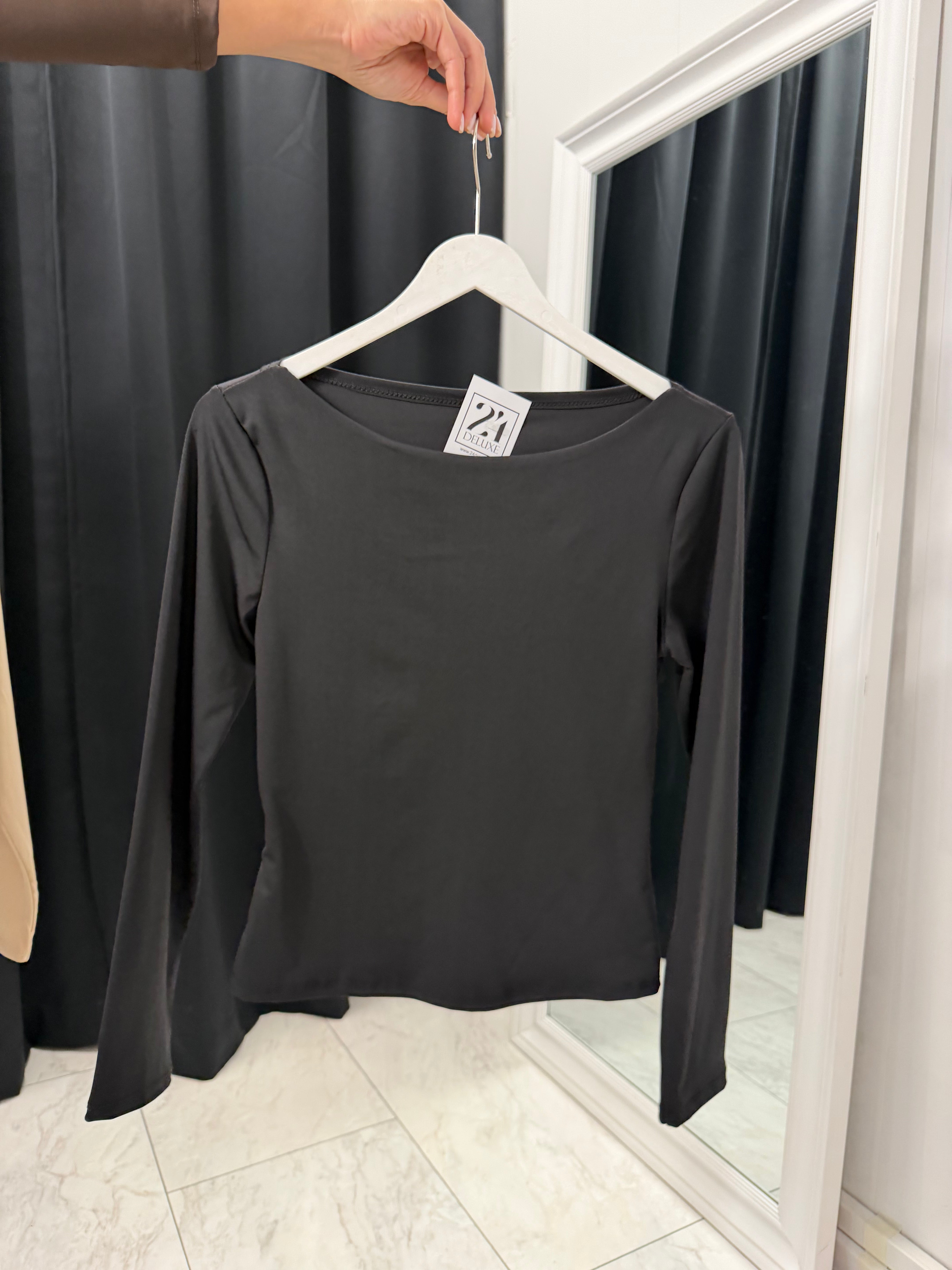 BODY FIT TOP – базов еластичен топ с лодка деколте