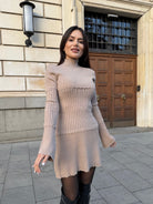 Вдъхновена от непринудената елегантност на парижанките, LA PARISIENNE е рокля, която подчертава женствеността без усилие. Фина плетена структура, която следва линиите на тялото, съчетана с деликатни вълнообразни завършеци за усещане за luxury knitwear.