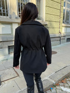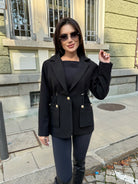Елегантно сако с изчистена линия и модерна визия. Моделът е изработен от плътна материя с лека еластичност и има връзки за регулиране на талията. Акцентът са стилните златни копчета и джобове, които придават луксозен и градски характер.