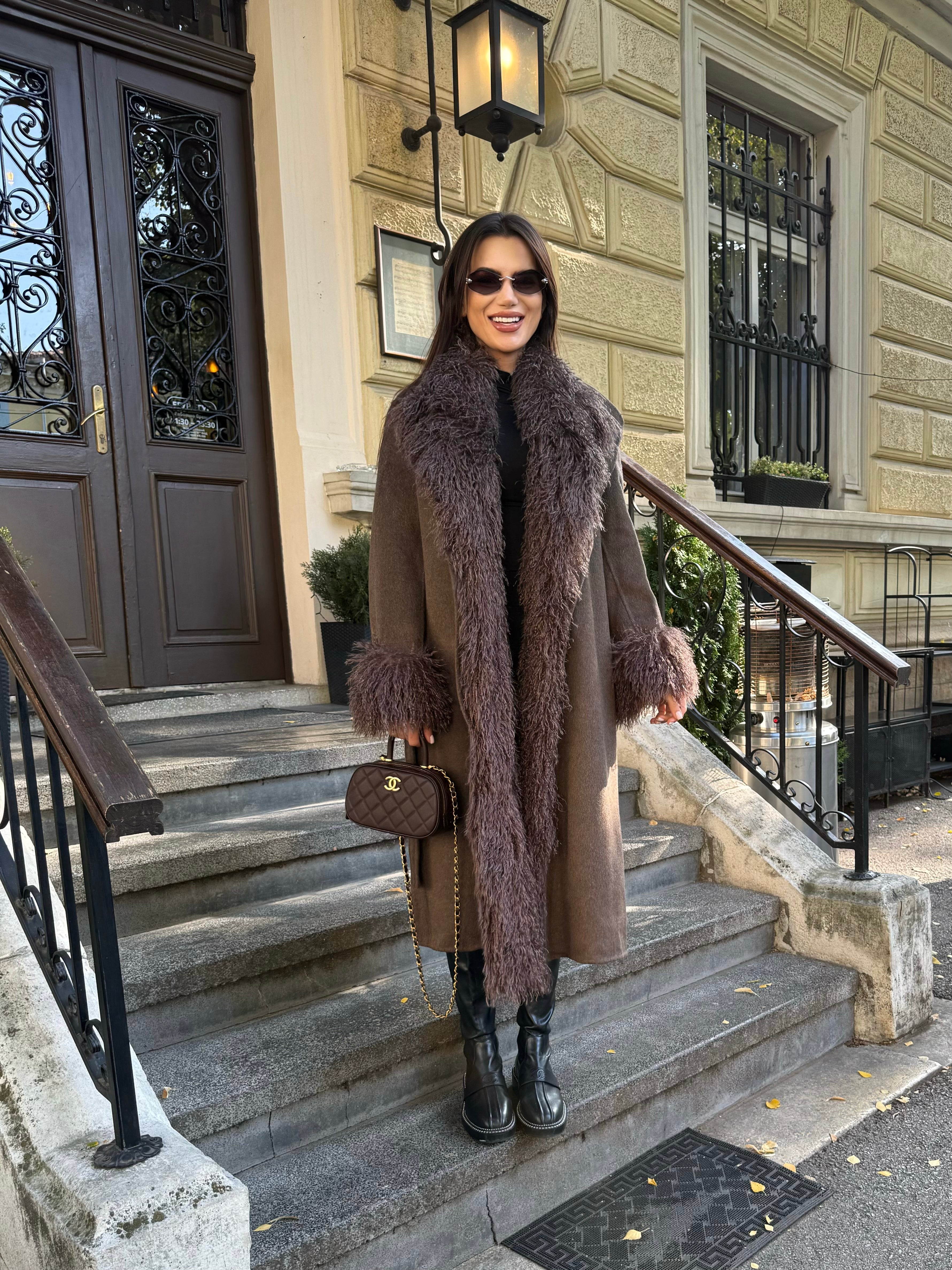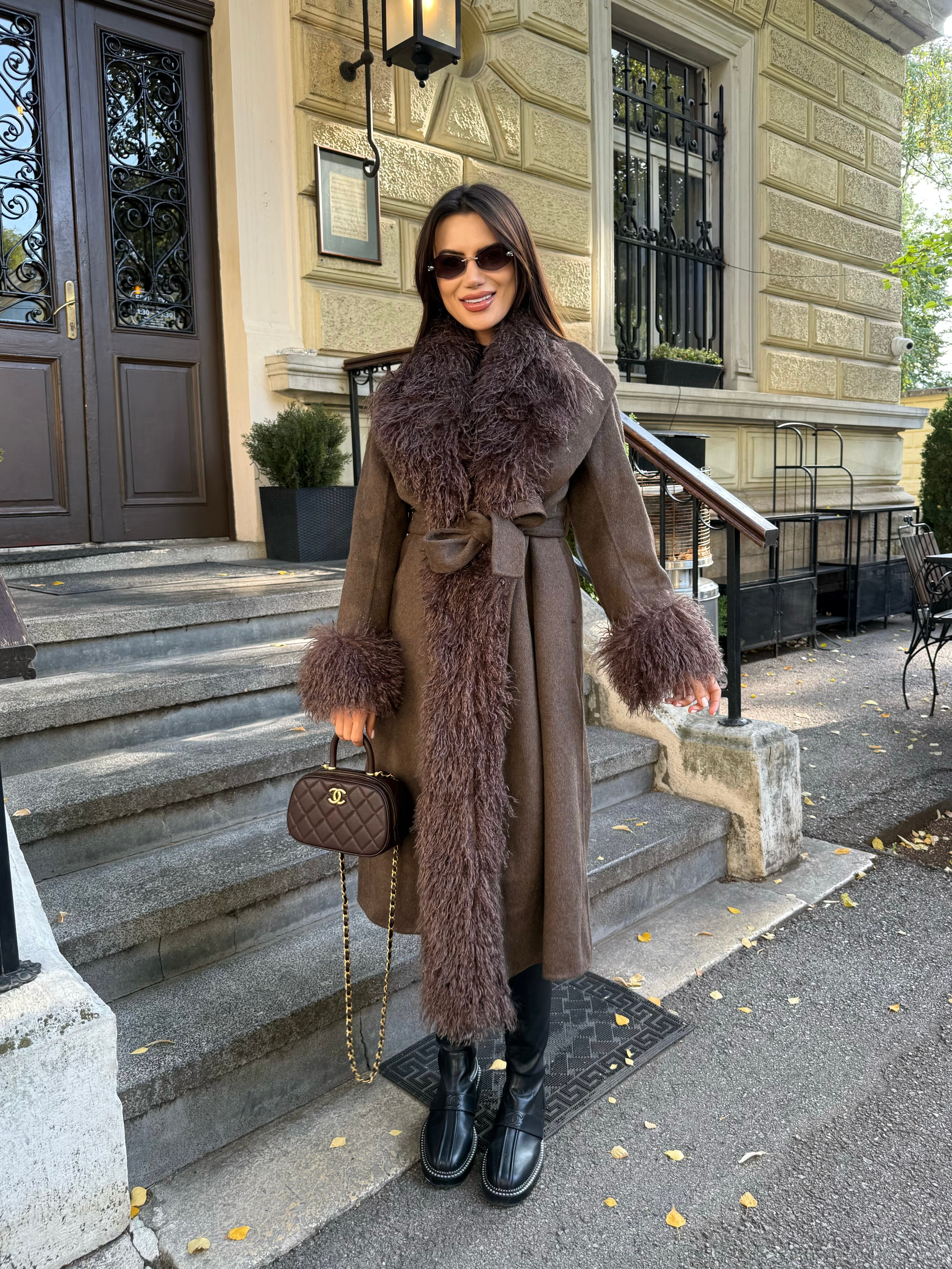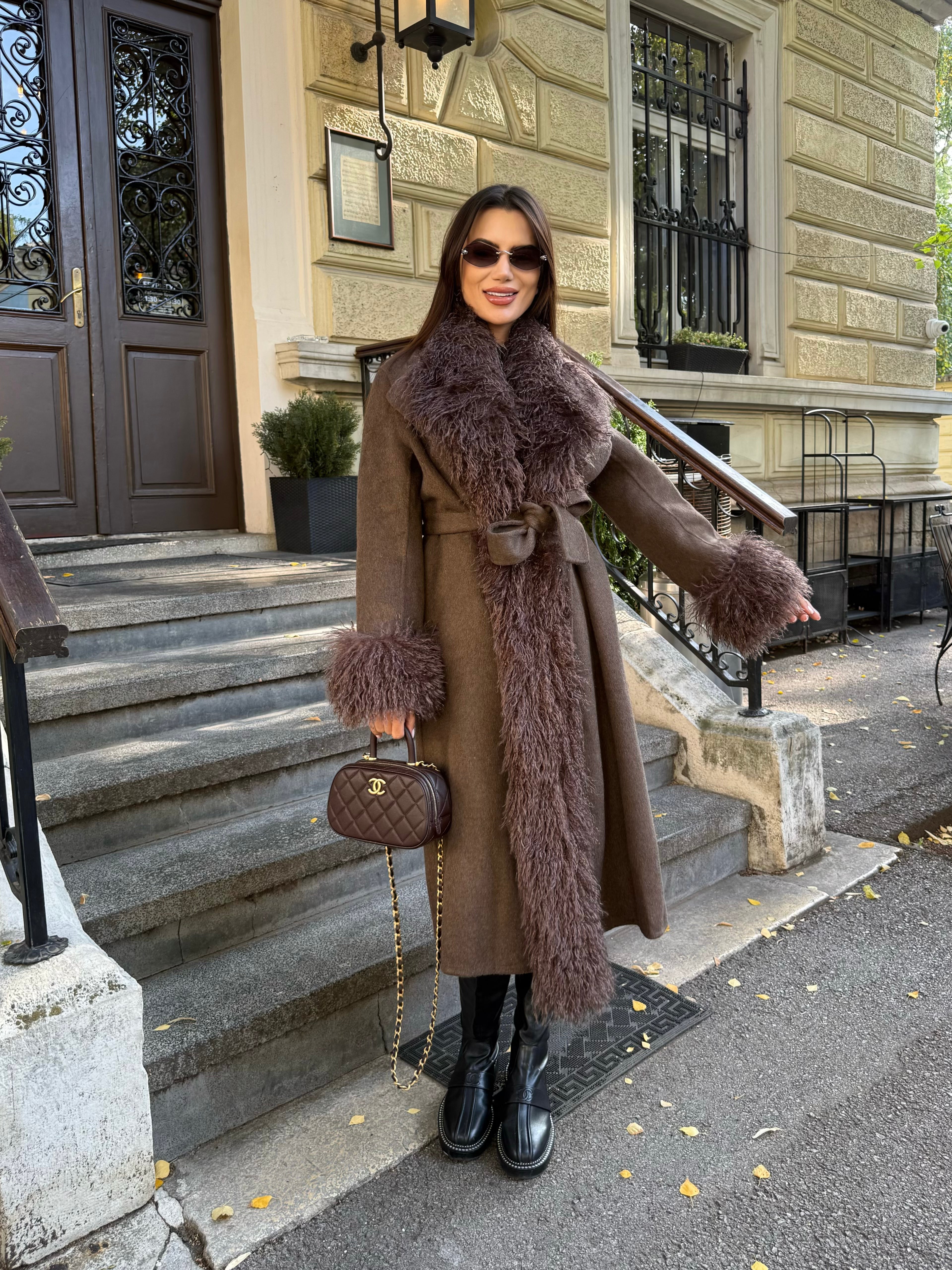 Цвят: кафе с дълъг косъм по яката и ръкавите