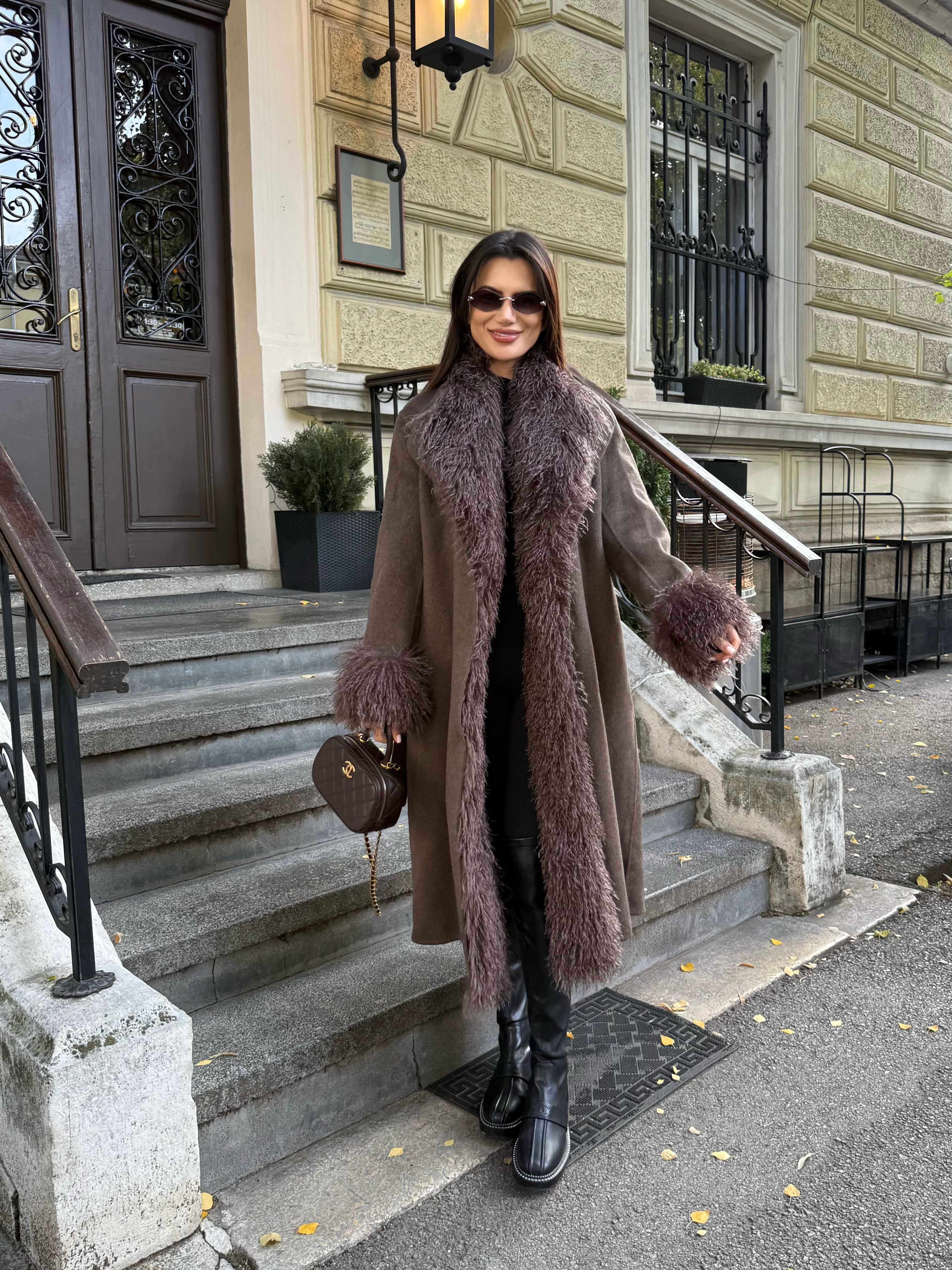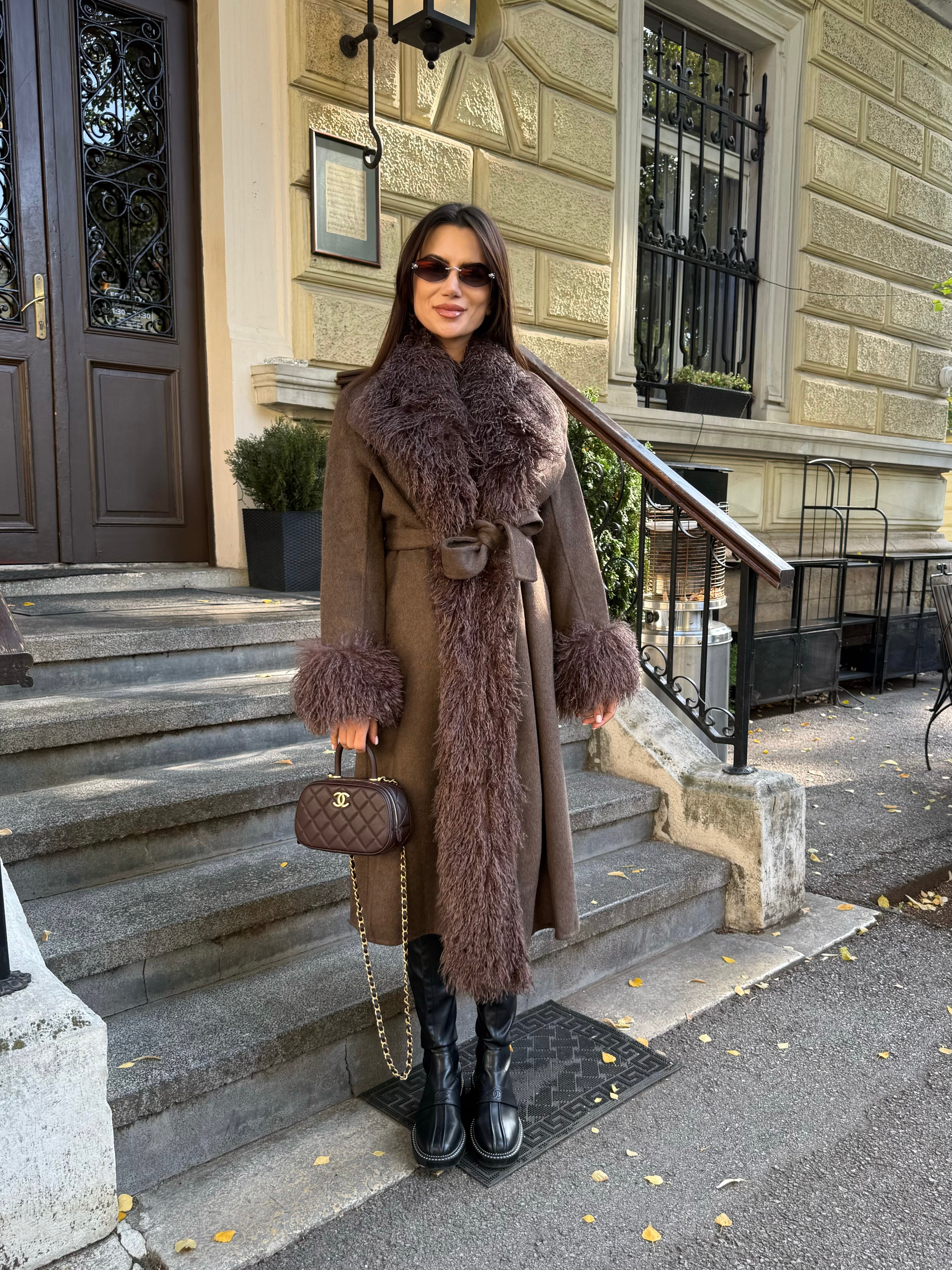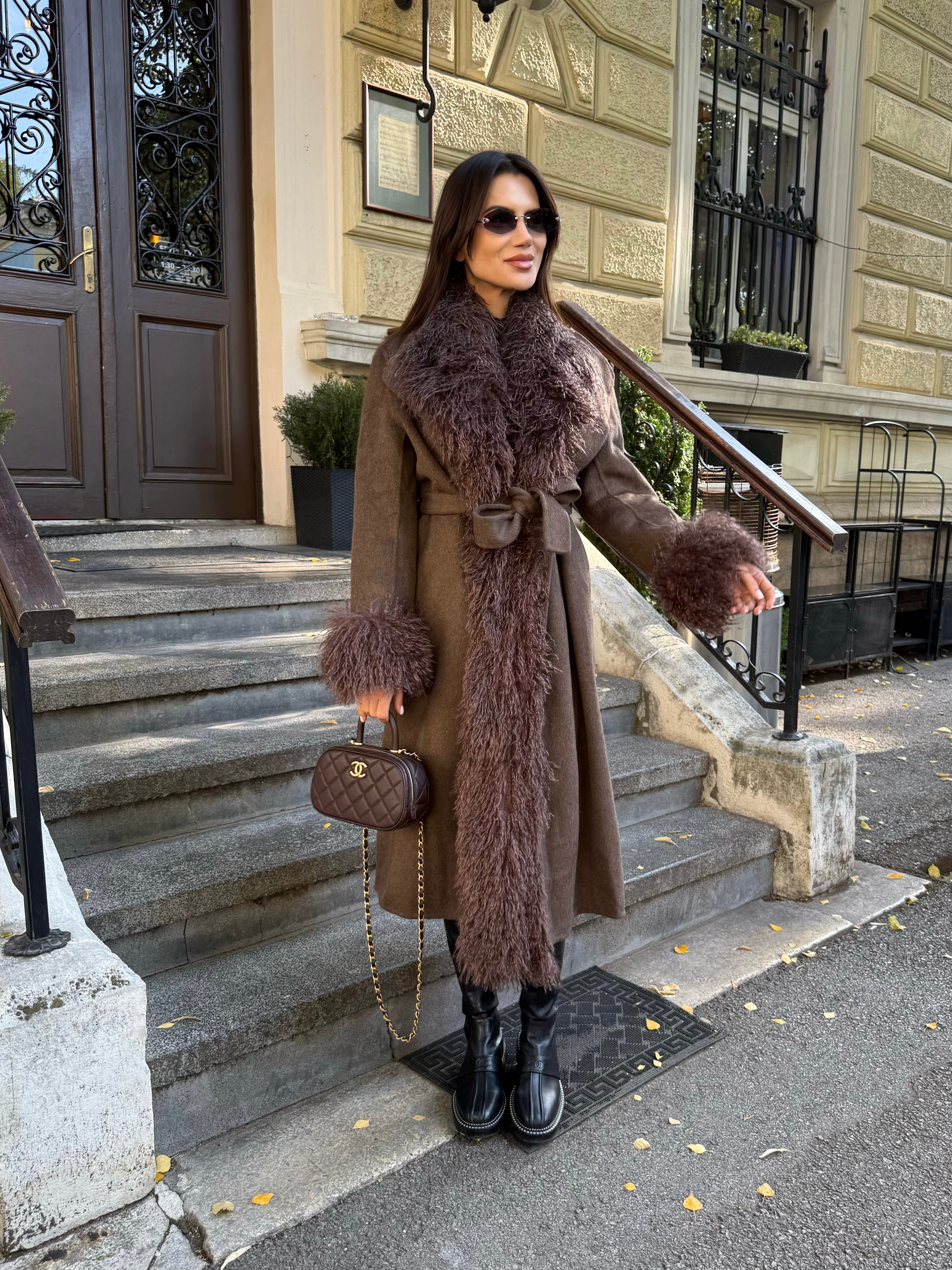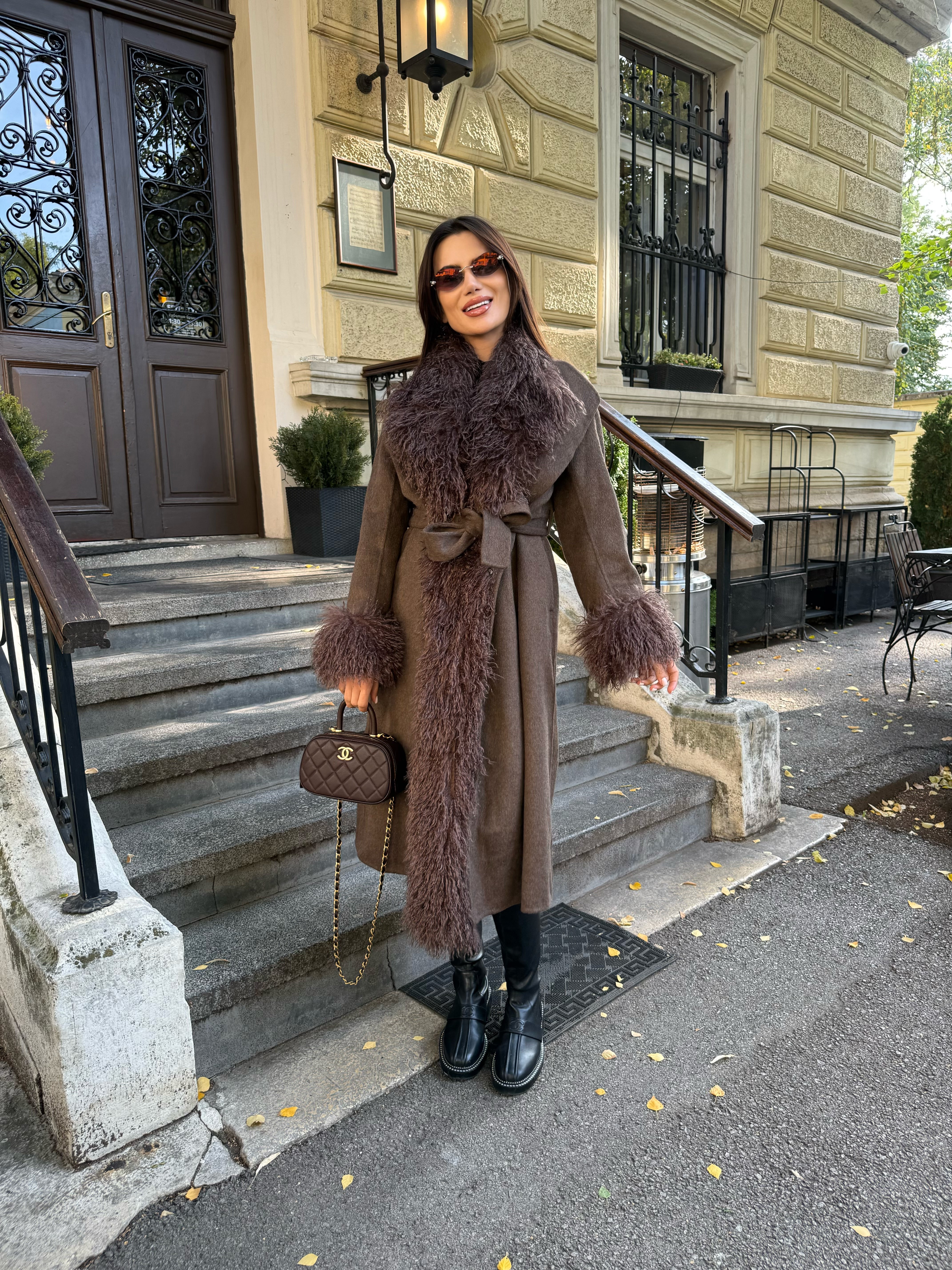 Цвят: кафе с дълъг косъм по яката и ръкавите