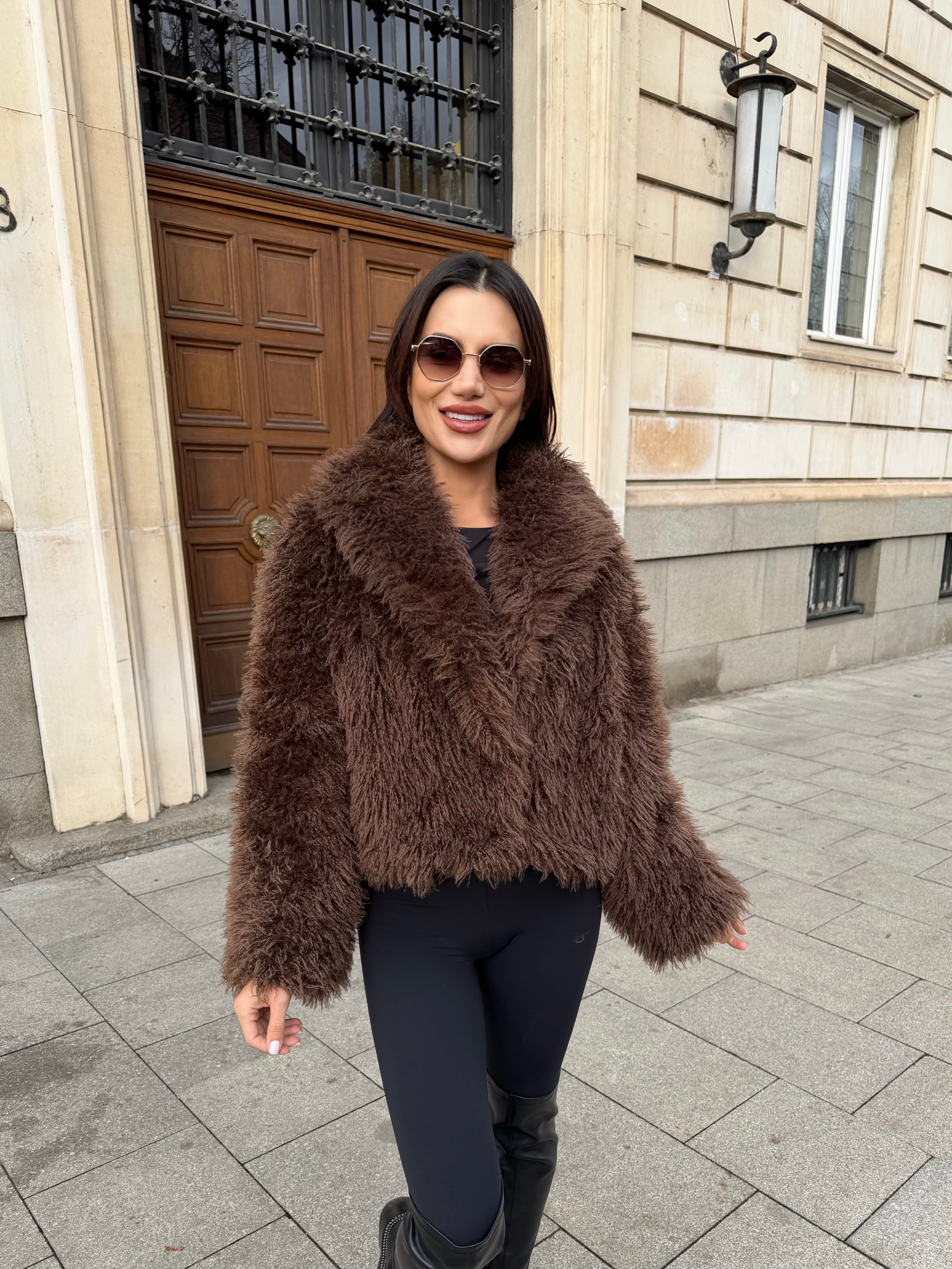 Това е късо пухкаво яке от мека материя, която е лека, нежна и приятно пухкава на допир, без тежест и без косъм ефект. Стои обемно, но не е дебело – идеално за модерна градска визия през преходните сезони и по-меките зимни дни.
