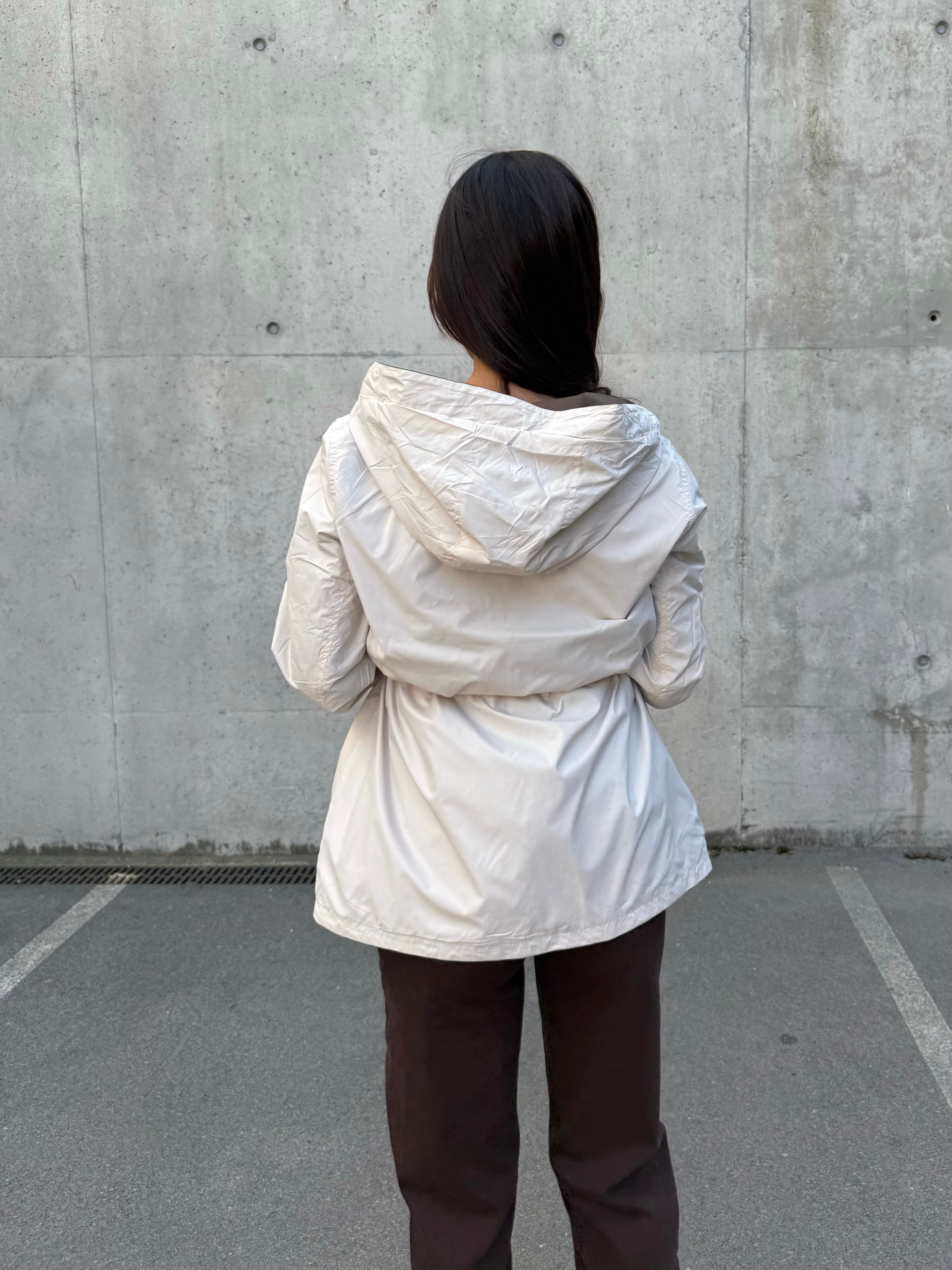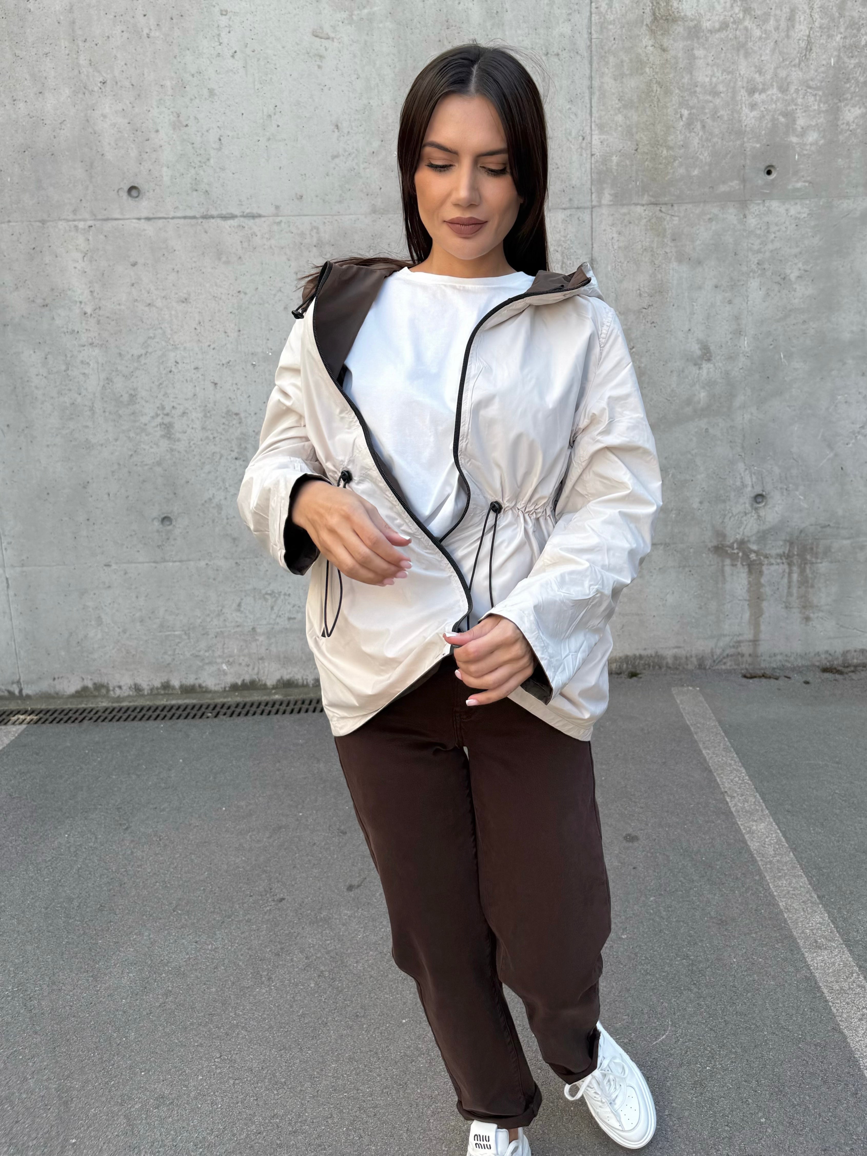 Модерен и практичен шлифер две лица, създаден за жени, които обичат универсалността и стила. Моделът позволява лесна смяна на визията – от класическо кафяво до изчистено бежово. Леката материя го прави идеален за преходните сезони, а връзката в талията подчертава силуета. Качулката и джобовете добавят удобство, без да се губи женствената линия.