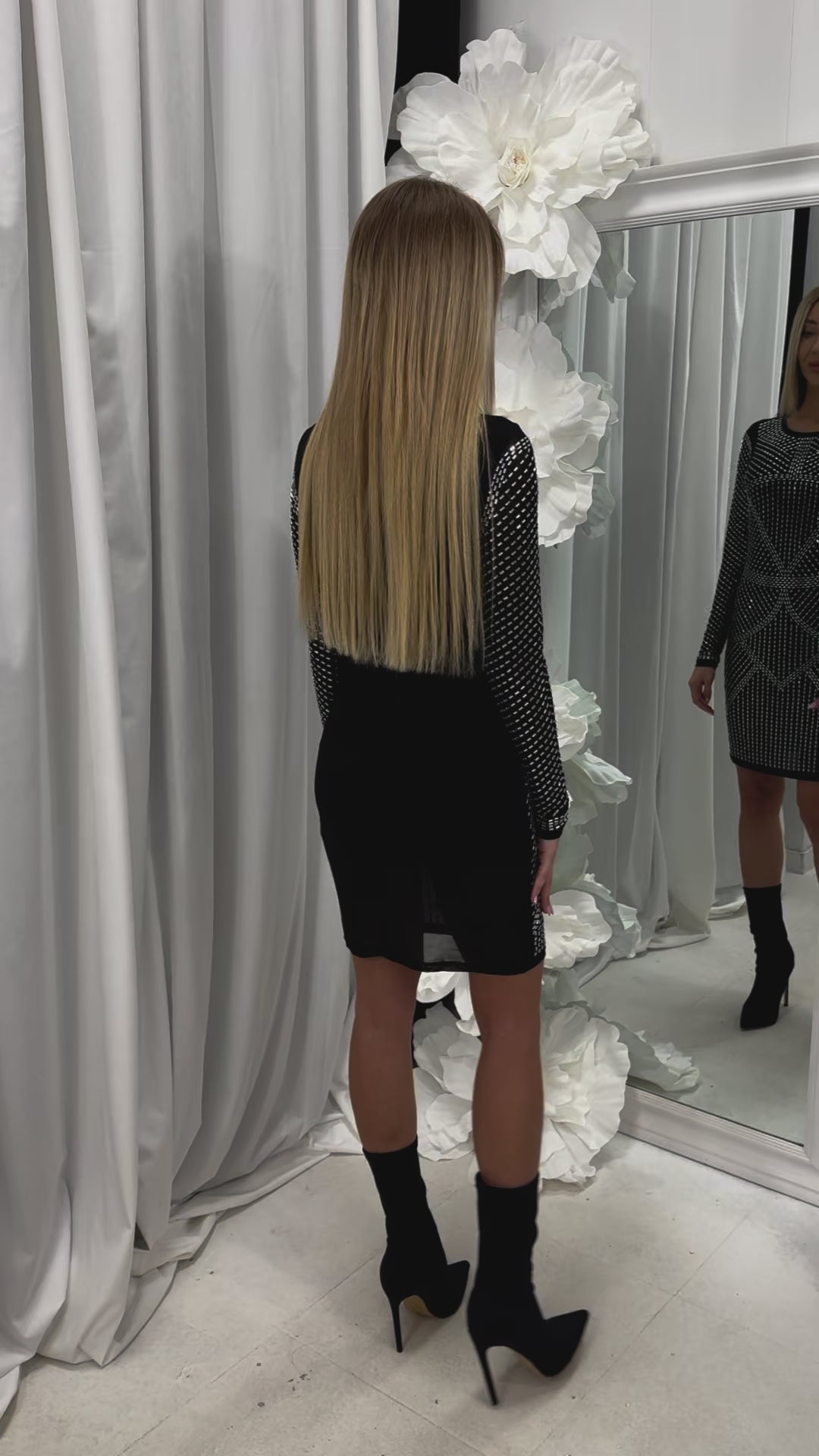 Черна РОКЛЯ GALENA с ефектни камъни в предната част.
