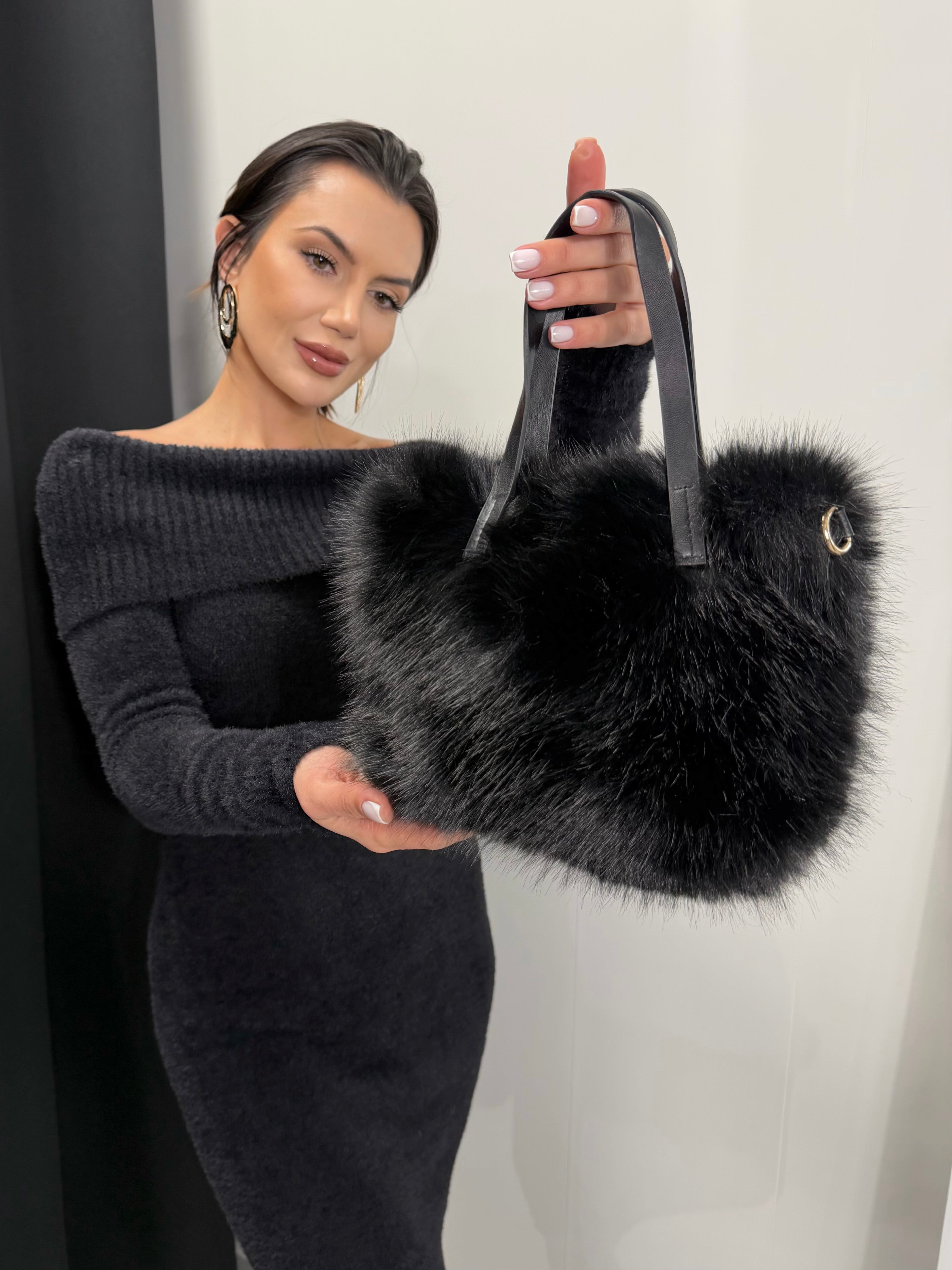 BLACK FUR MINI BAG – Малка пухкава чанта