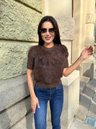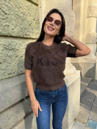 KISS MOHAIR – Мъхест къс пуловер в шоколадов нюанс