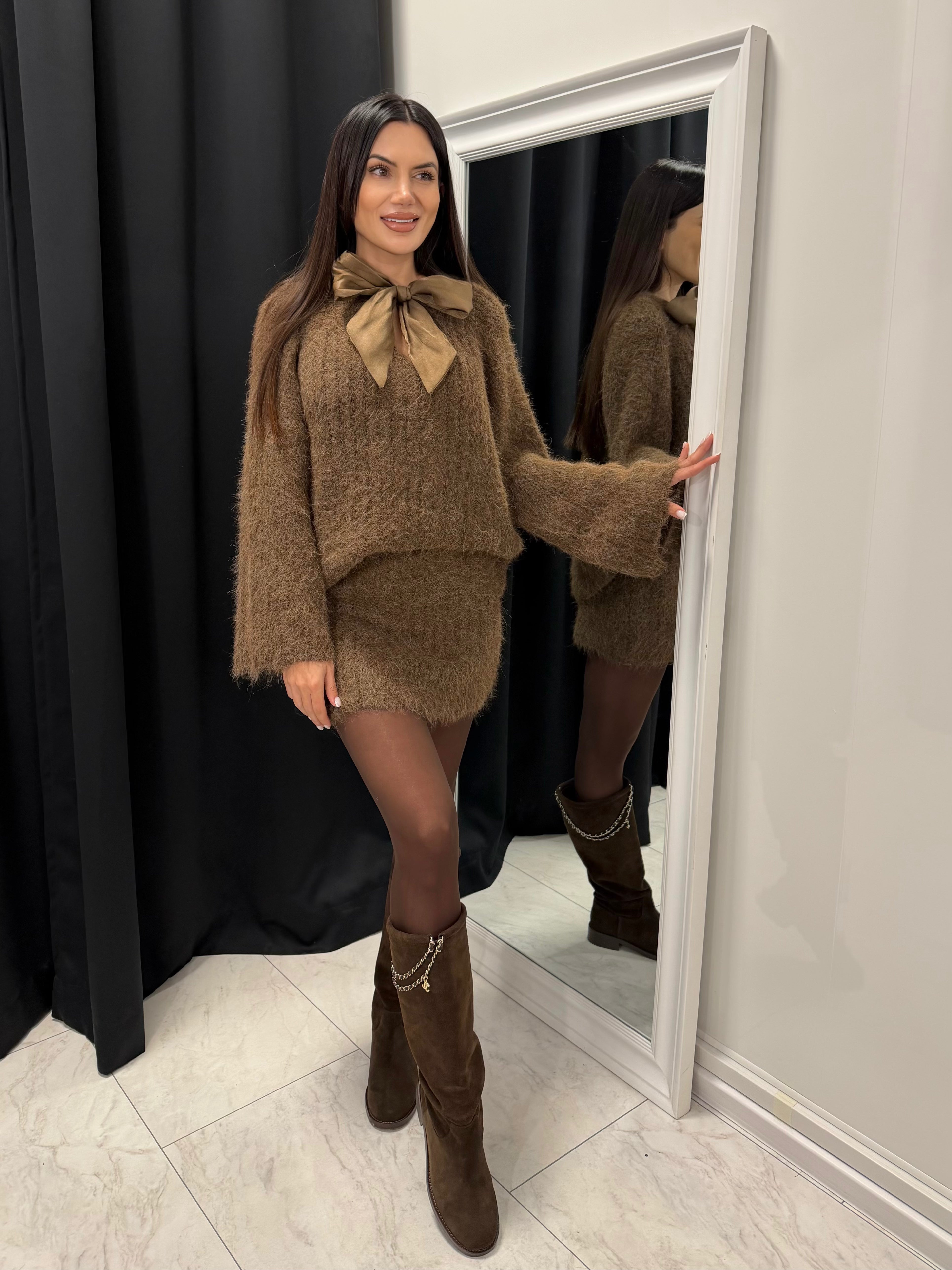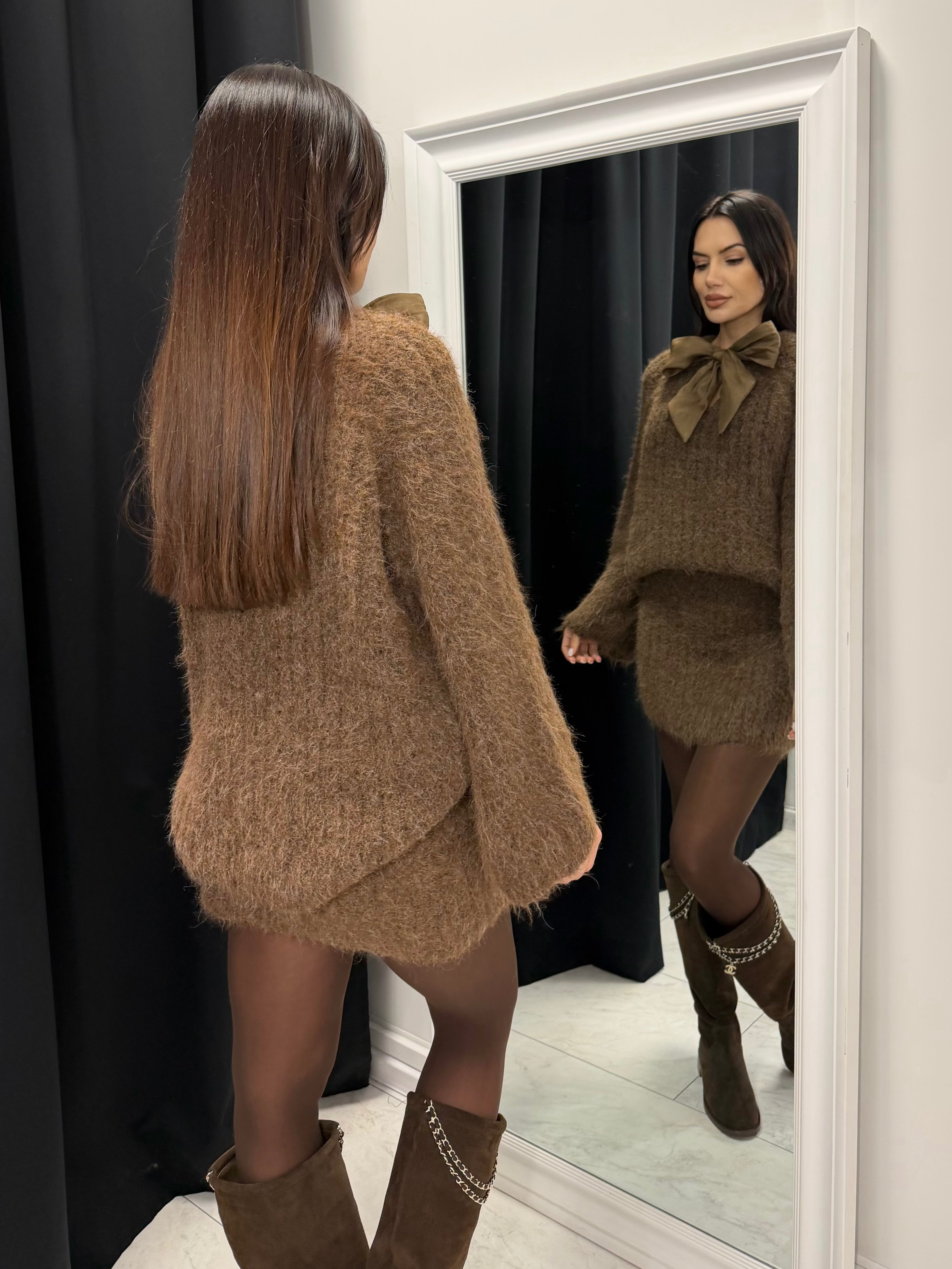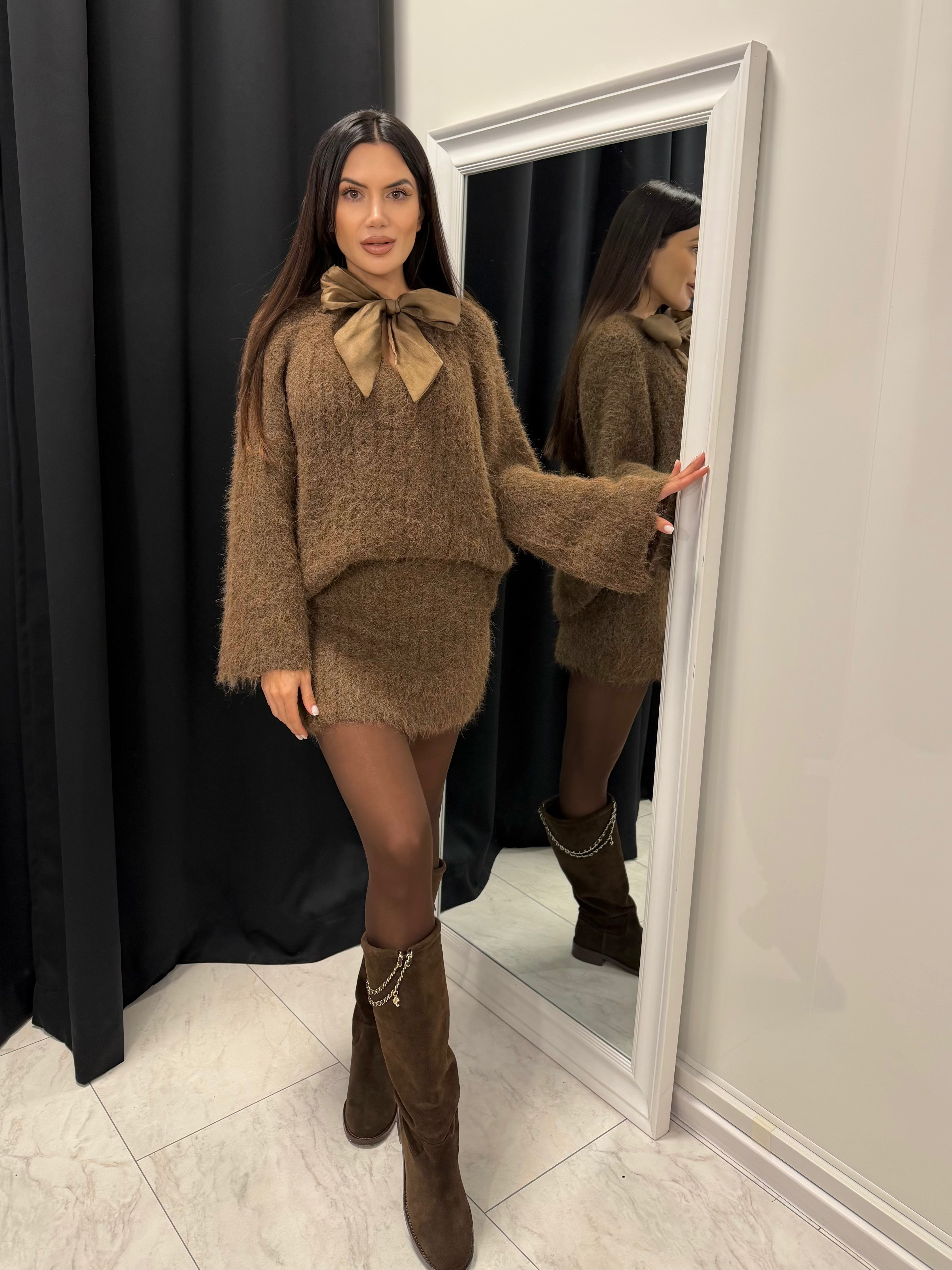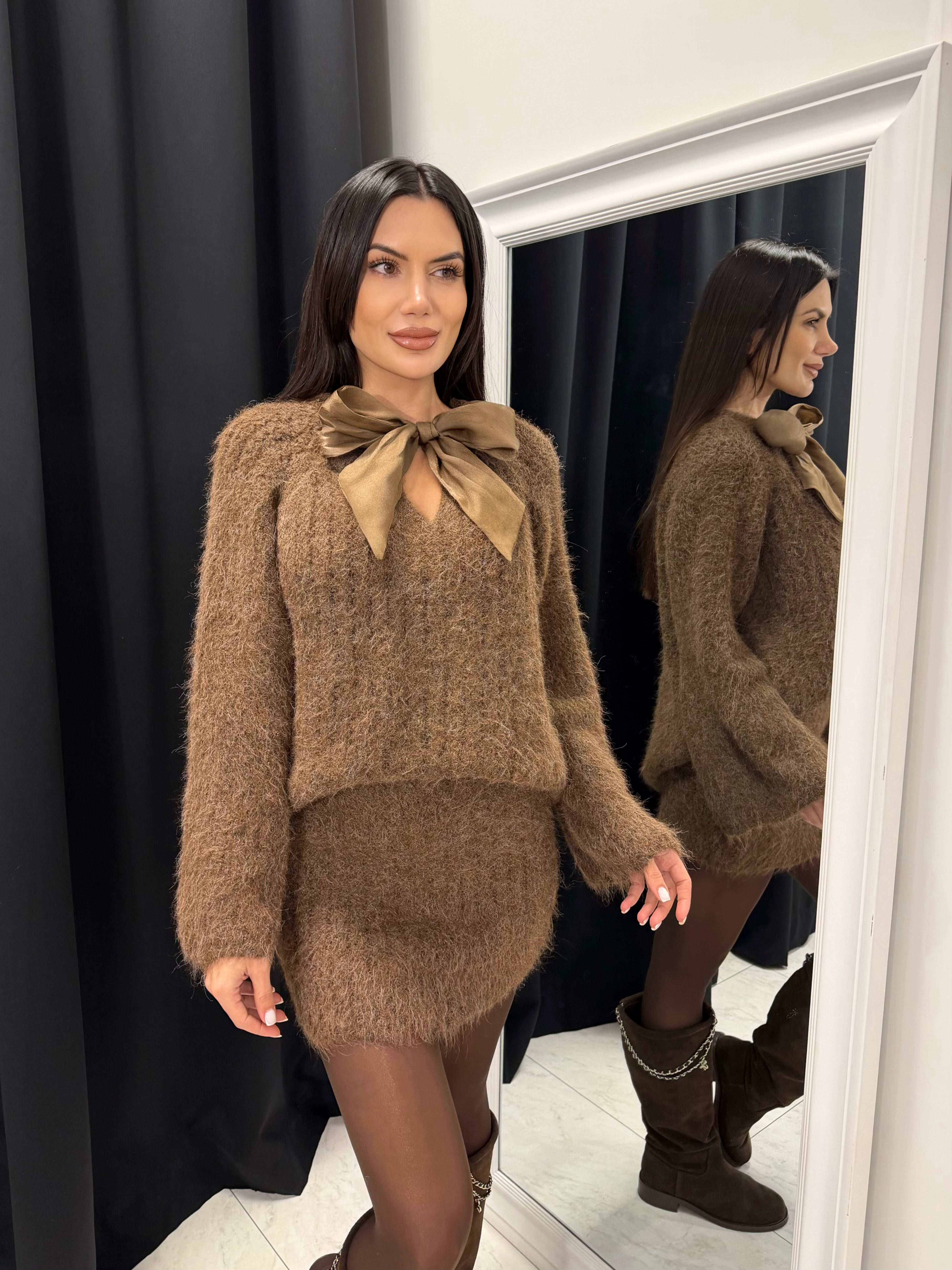 MOCHA BROWN LUXURY BOW - Плетен комплект с ефирна панделка