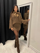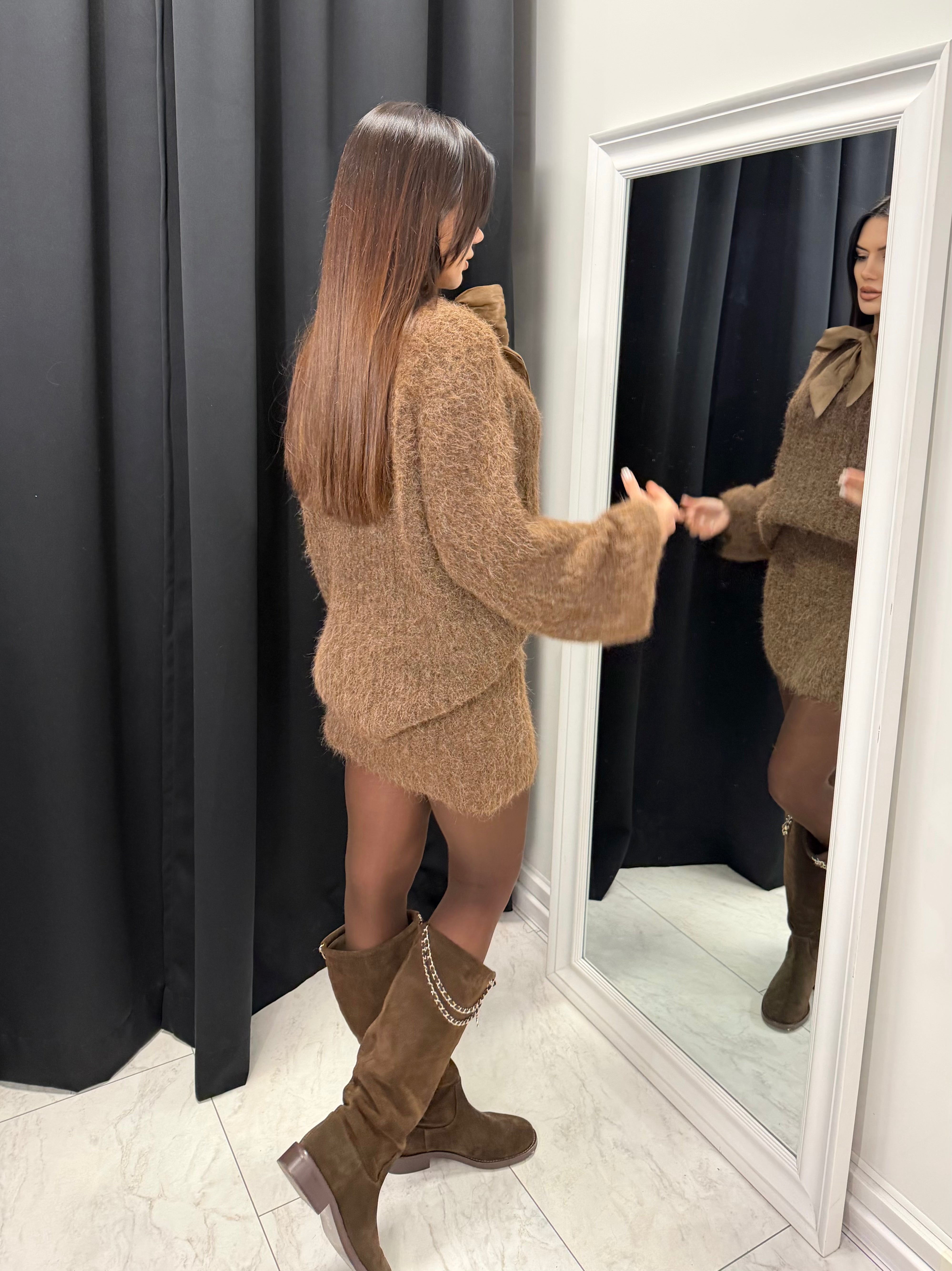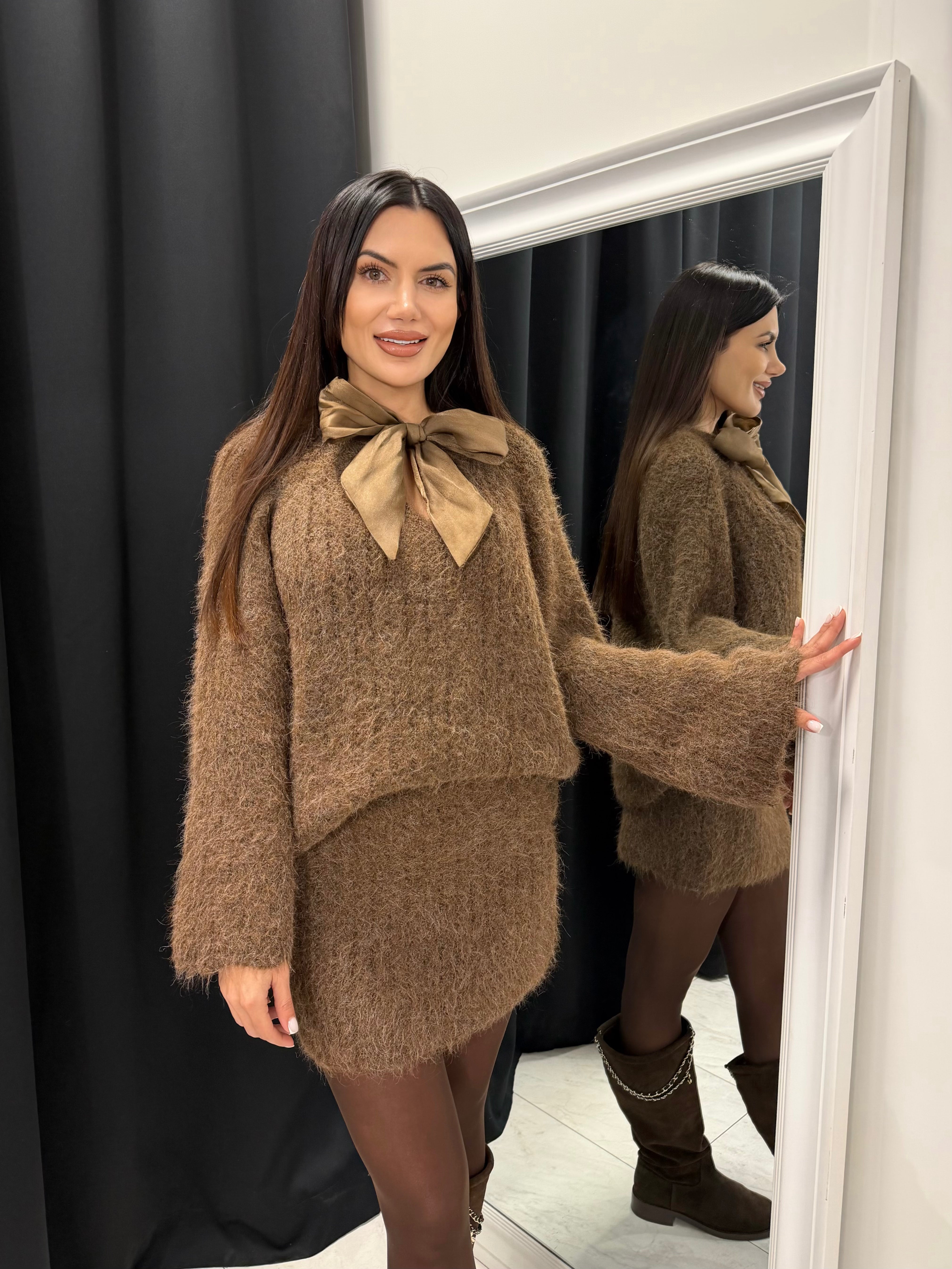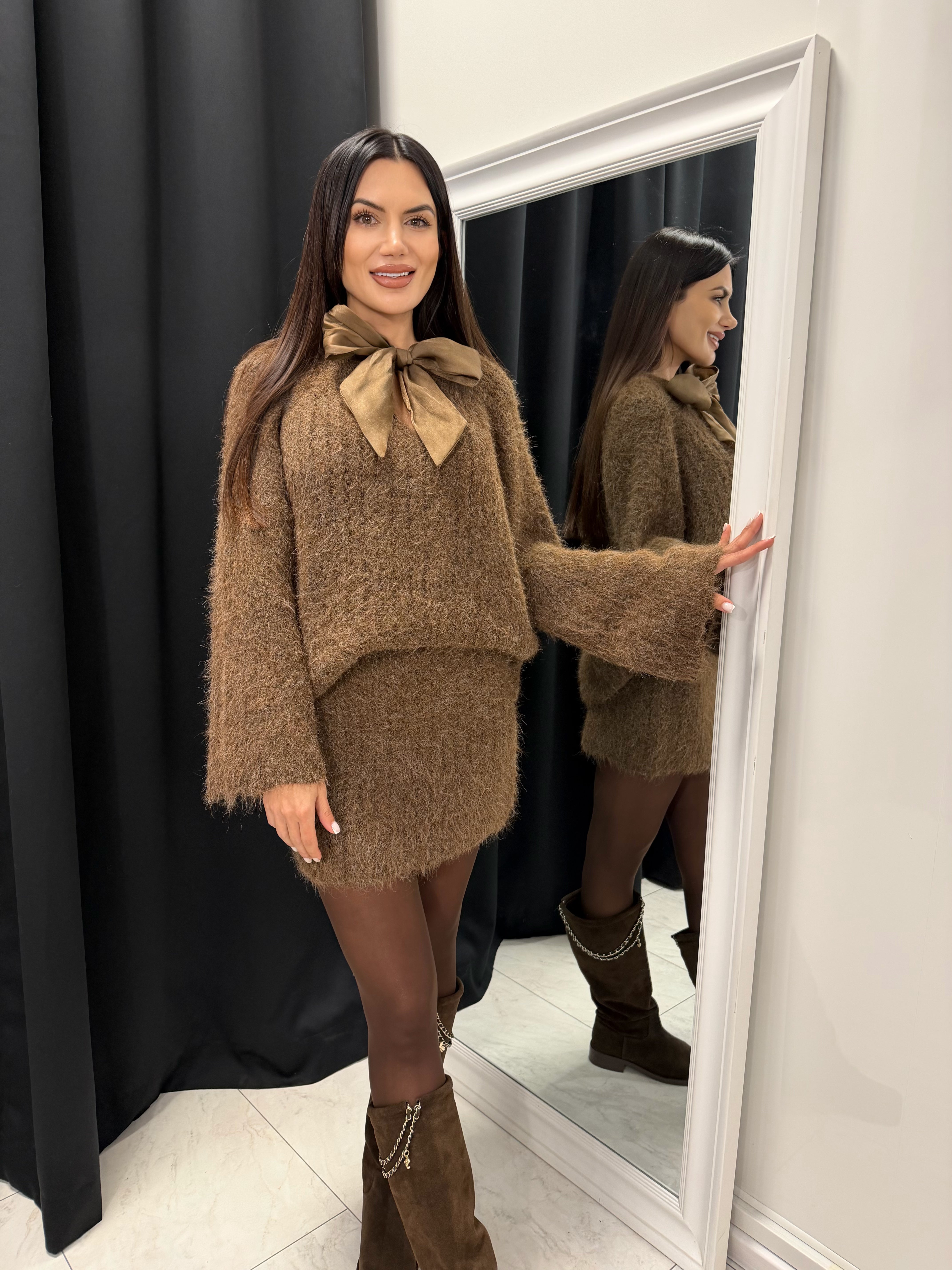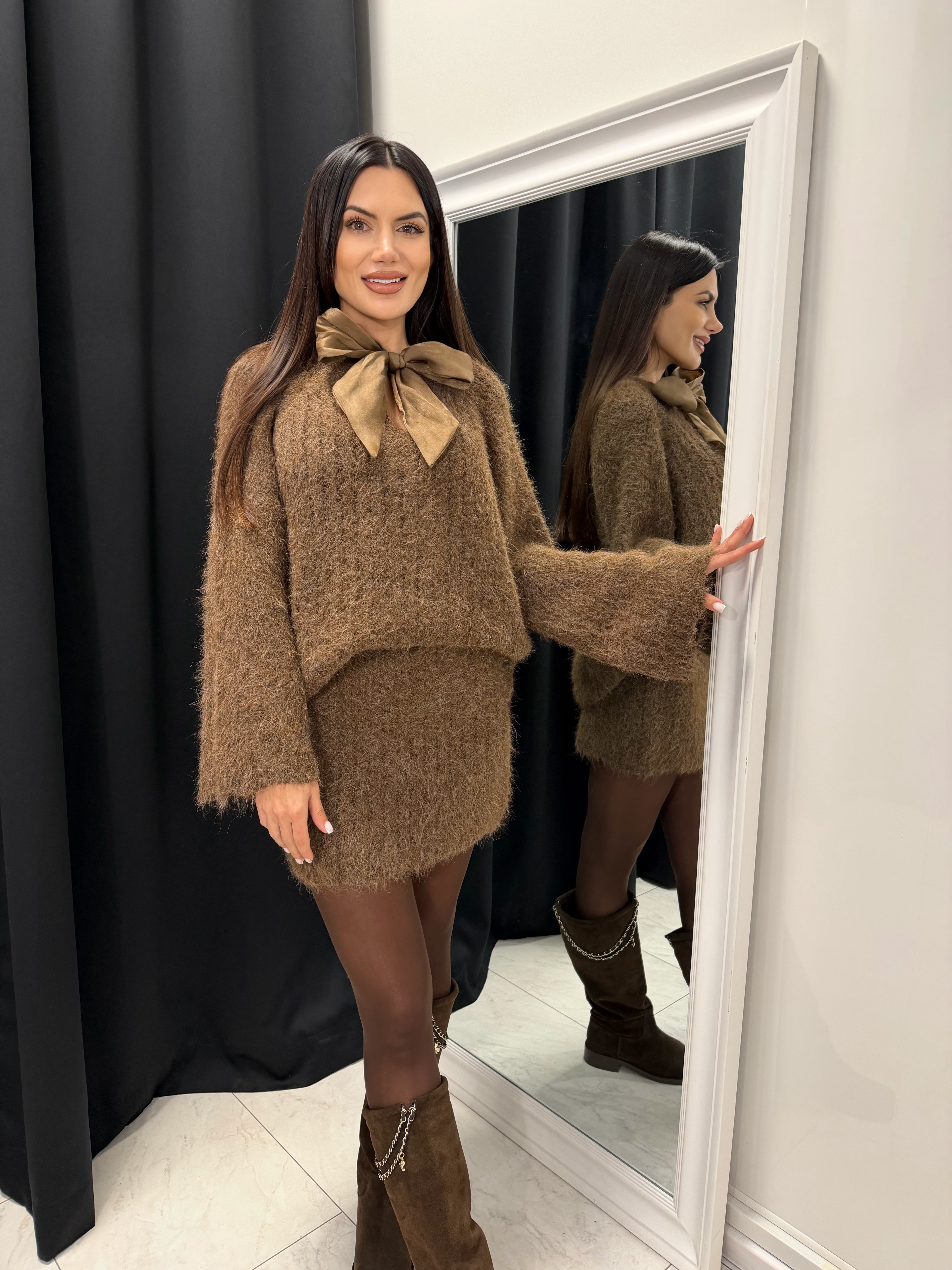 MOCHA BROWN LUXURY BOW - Плетен комплект с ефирна панделка
