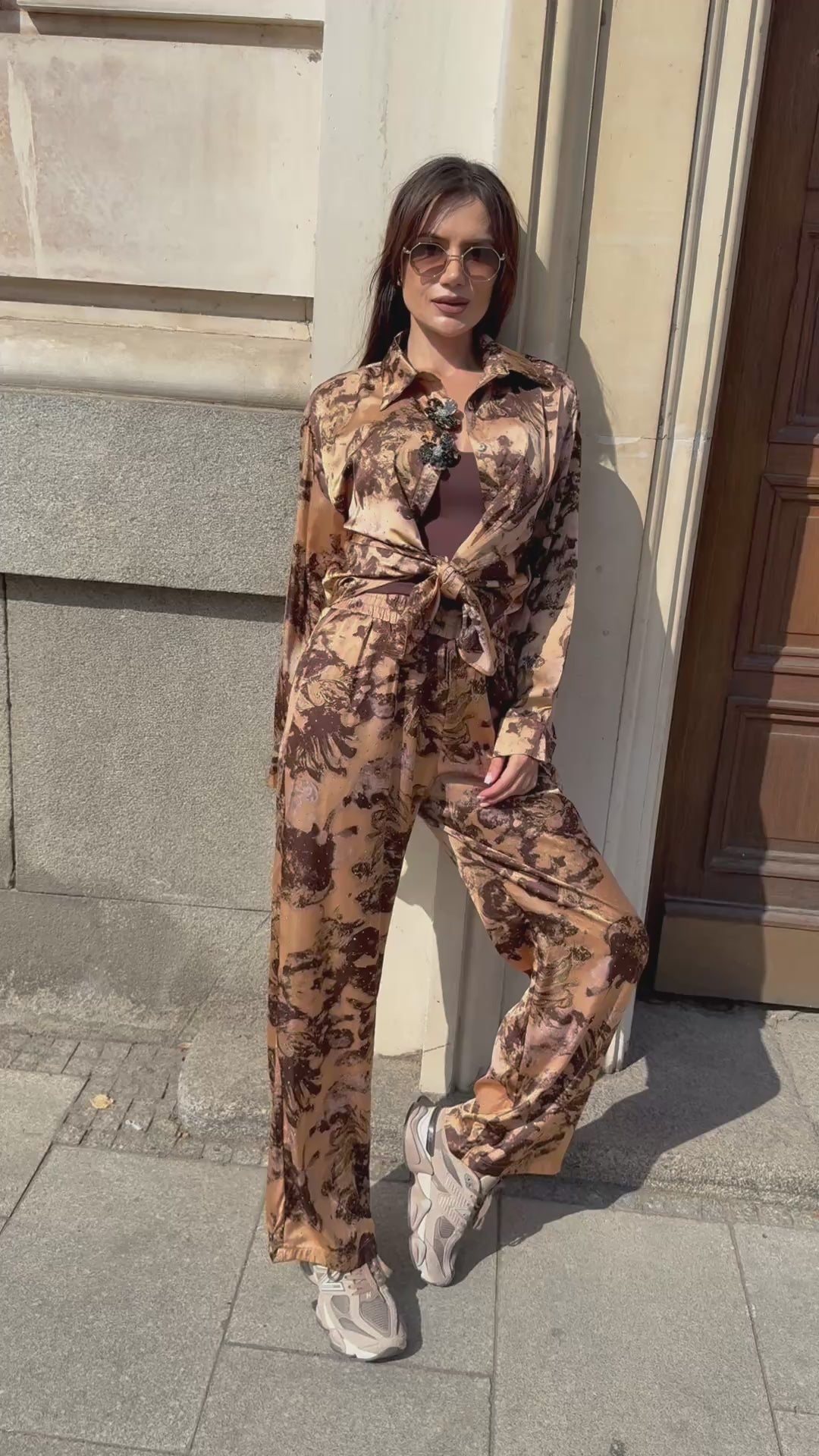 Изискан и модерен комплект, който съчетава комфорт и елегантност. MOCHA DE LUXE SET включва свободна риза и широк панталон в нежни mocha нюанси, украсени с камъни за луксозен завършек. Леката материя и внимателните детайли превръщат модела в перфектен избор за впечатляваща визия както в ежедневието, така и на специални събития.