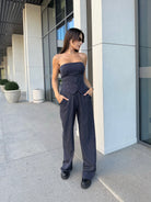 Панталонът е с издължена, права линия, която визуално удължава фигурата и придава елегантно излъчване.