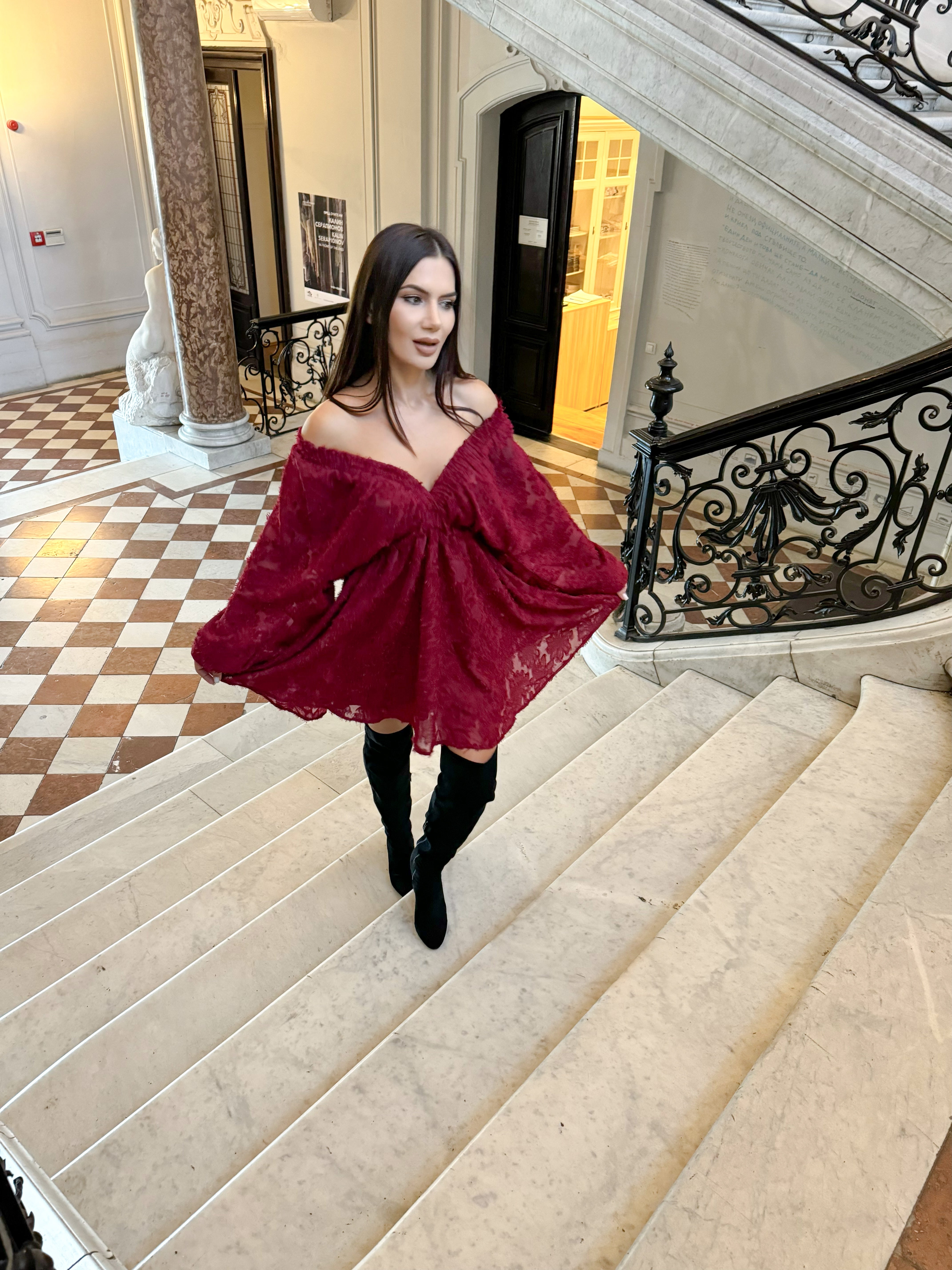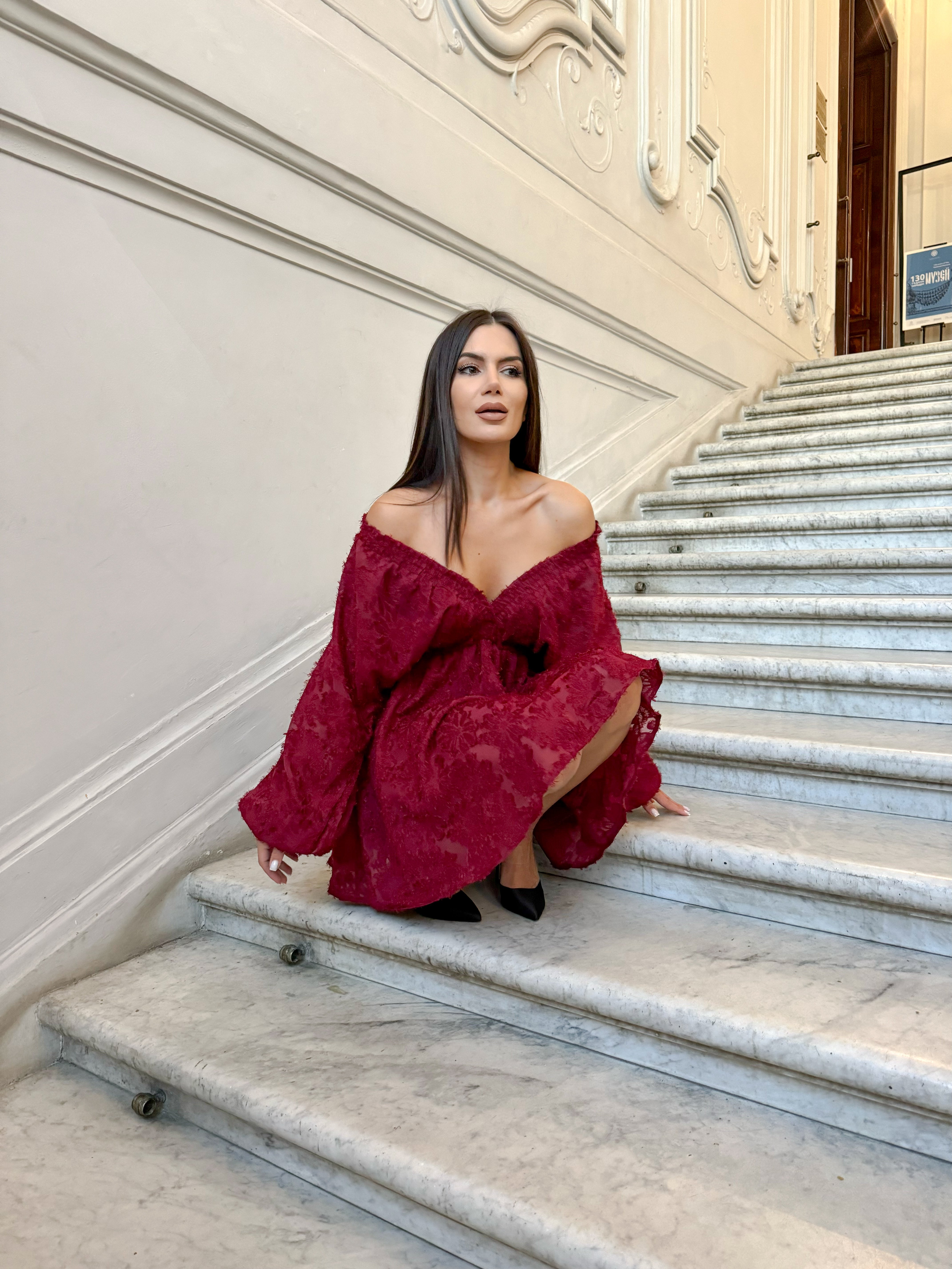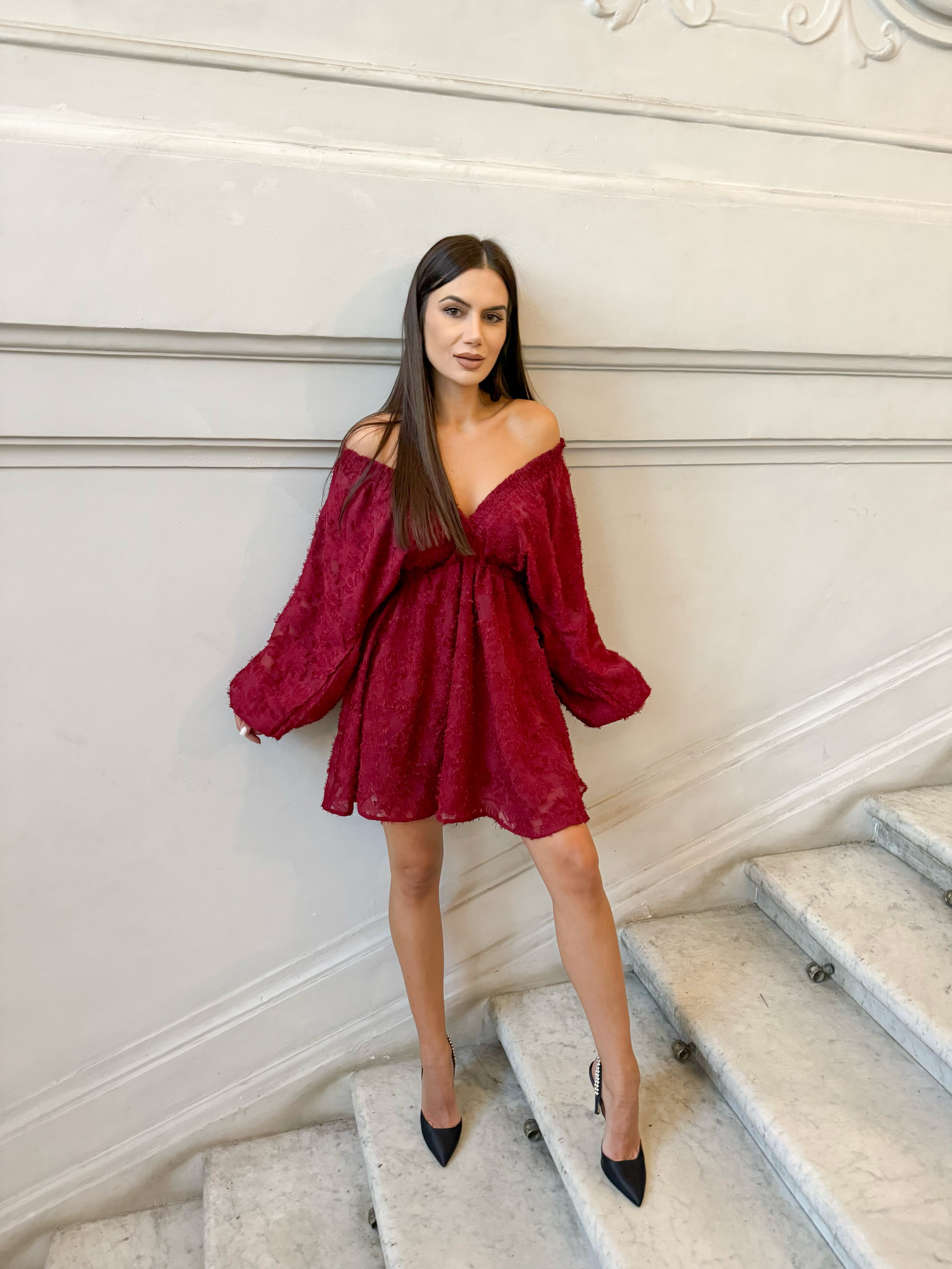 Вталена РОКЛЯ Kylie с V- деколте и ефектни ръкави. Моделът е от лека материя без еластан, с дължина над коляното.
