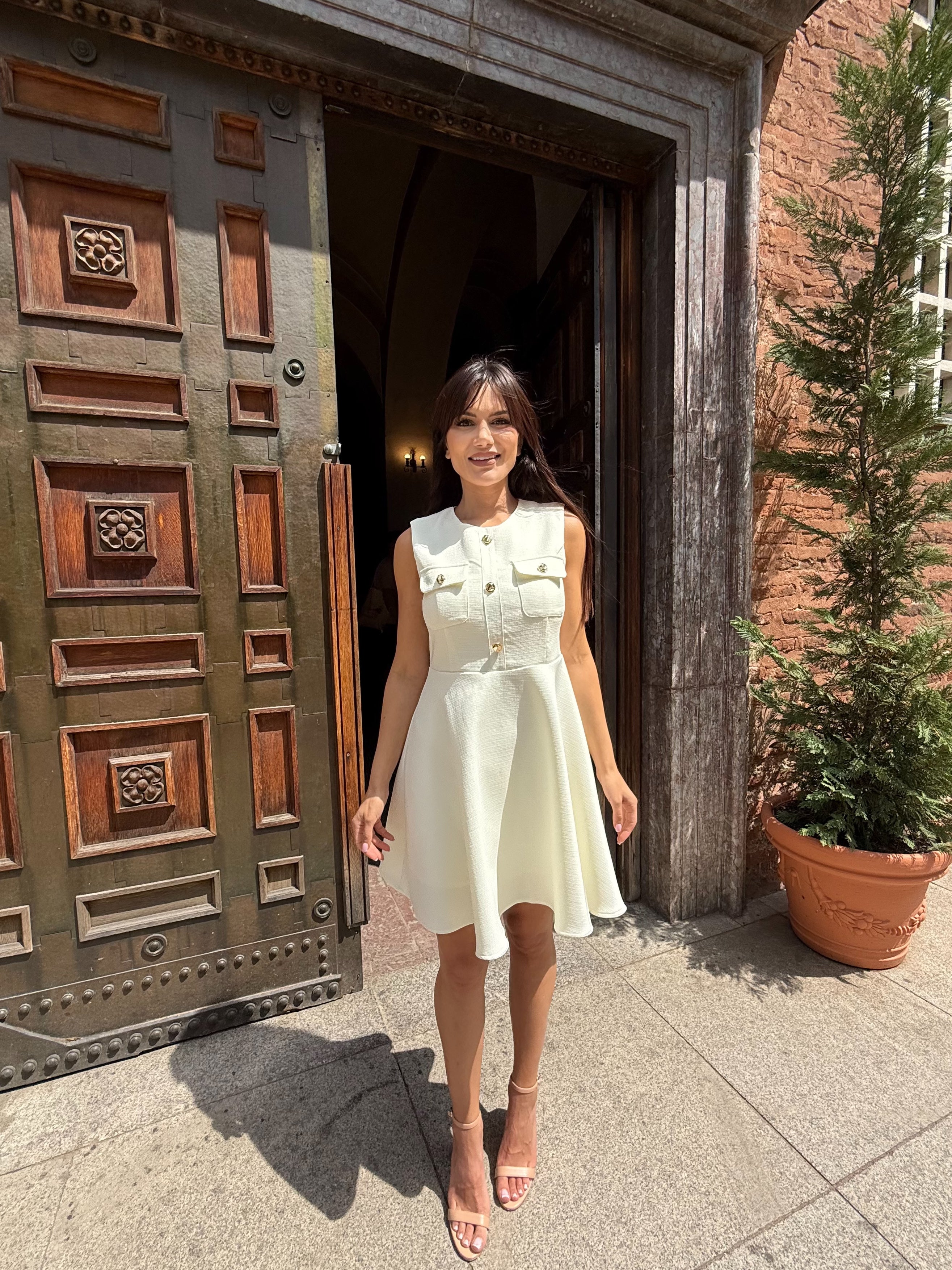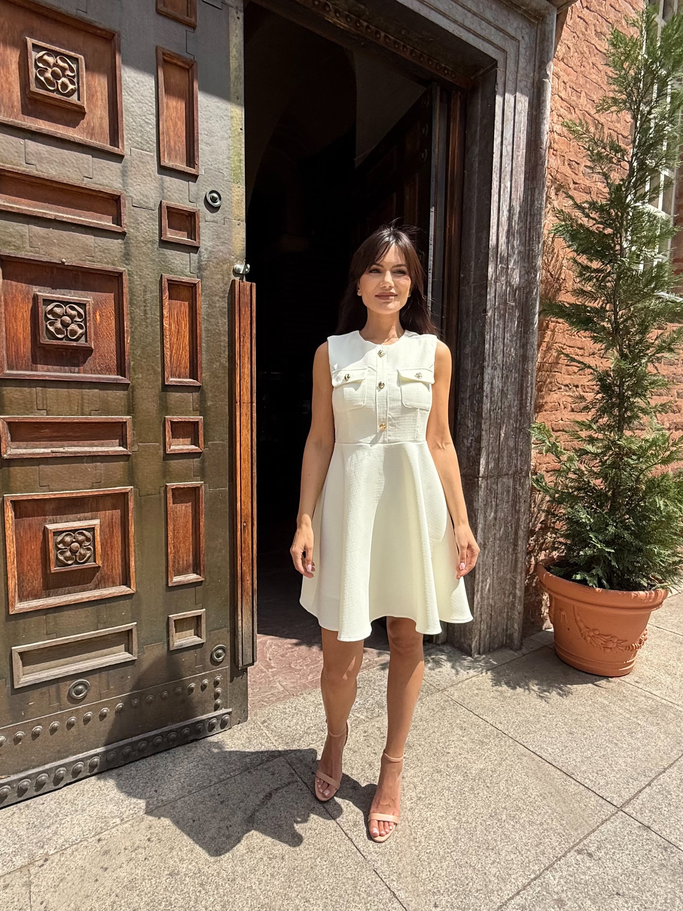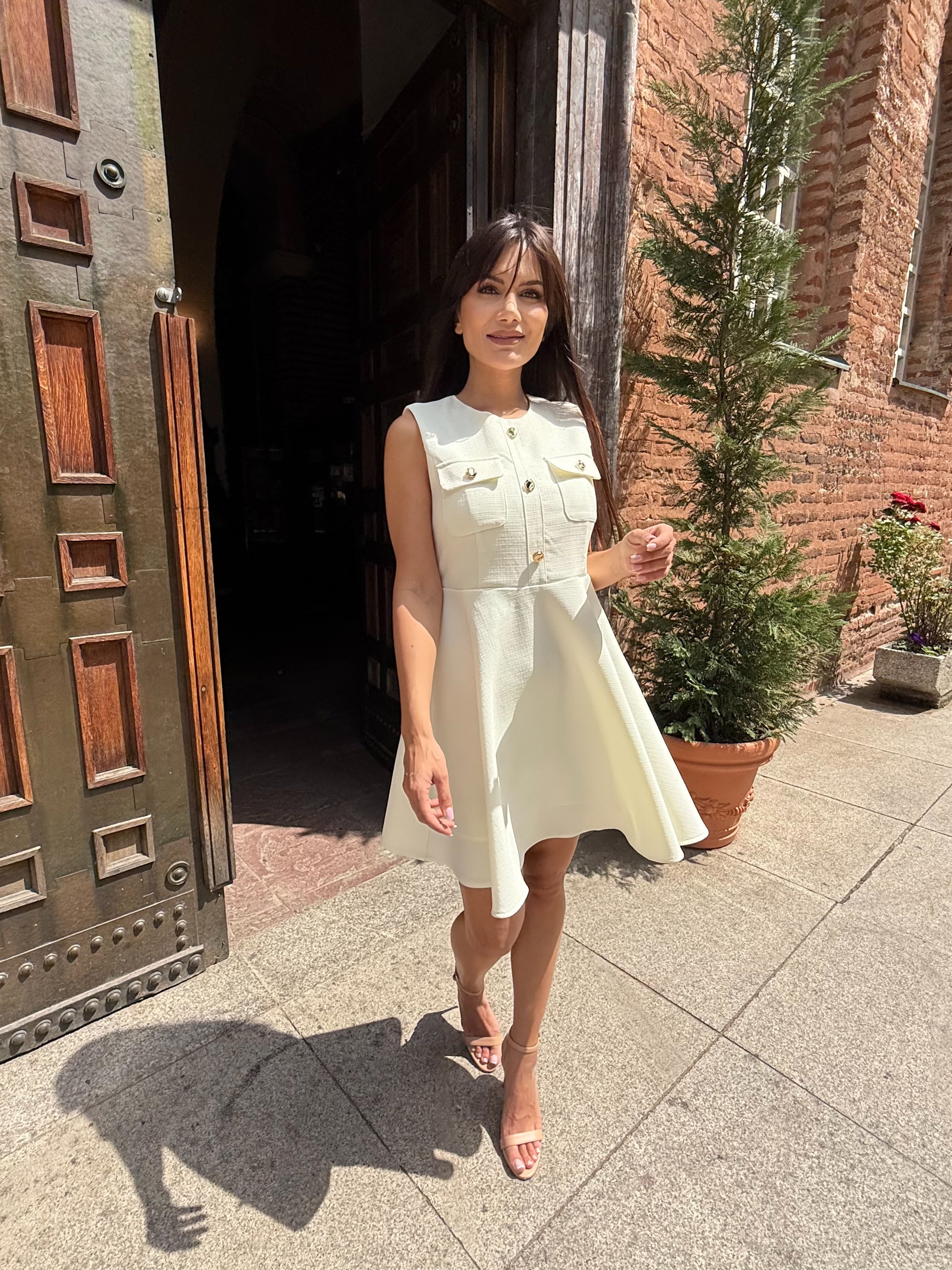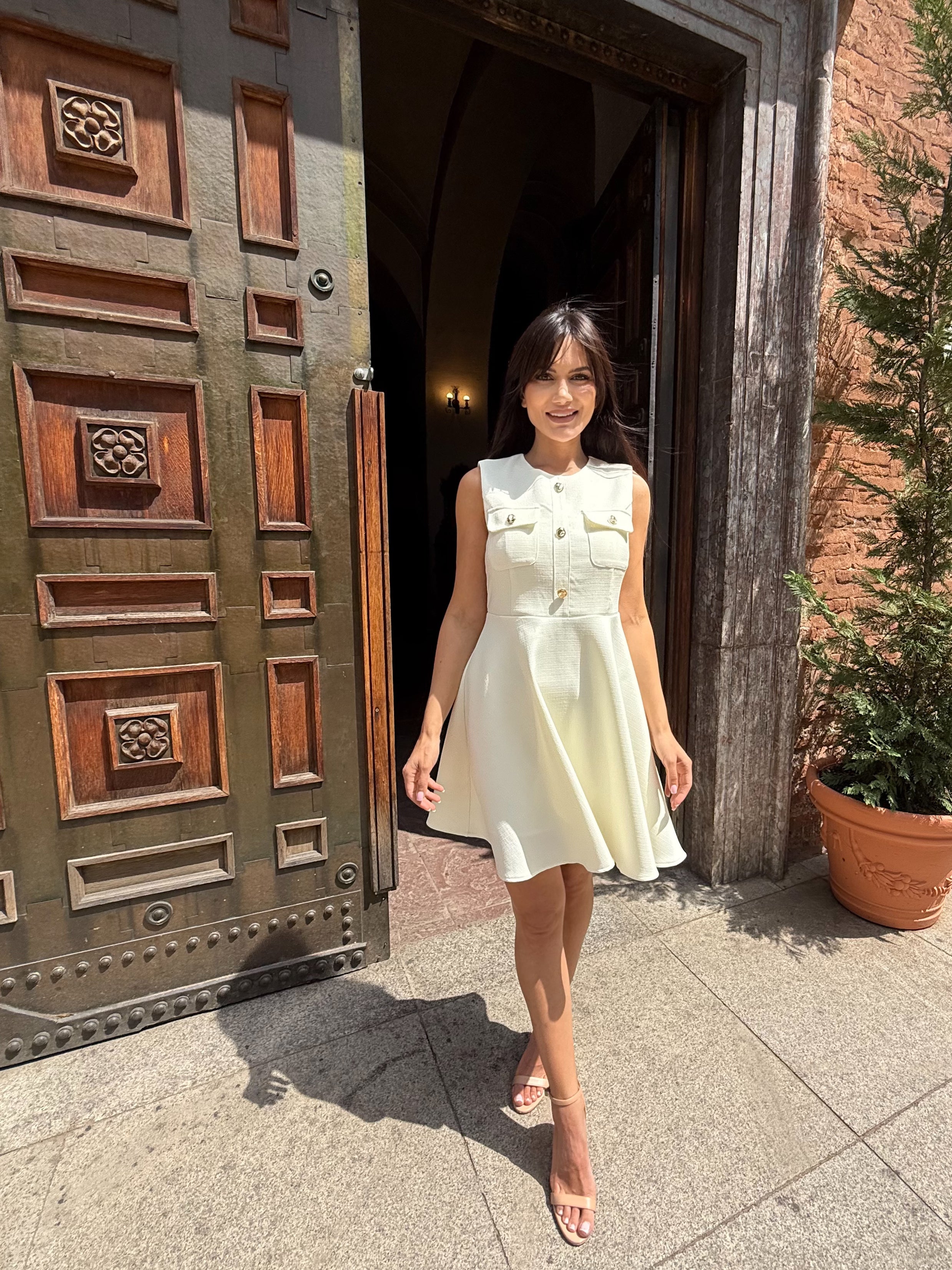 Класиката никога не излиза от мода. Роклята Grace Kelly е въплъщение на женственост, финес и изискан стил. Със структура тип „жилетка“ и декоративни златни копчета в горната част, този модел носи духа на френски шик и холивудска елегантност. Леката А-силуетна форма подчертава талията и издължава фигурата, а скритият цип на гърба осигурява идеално прилягане.
