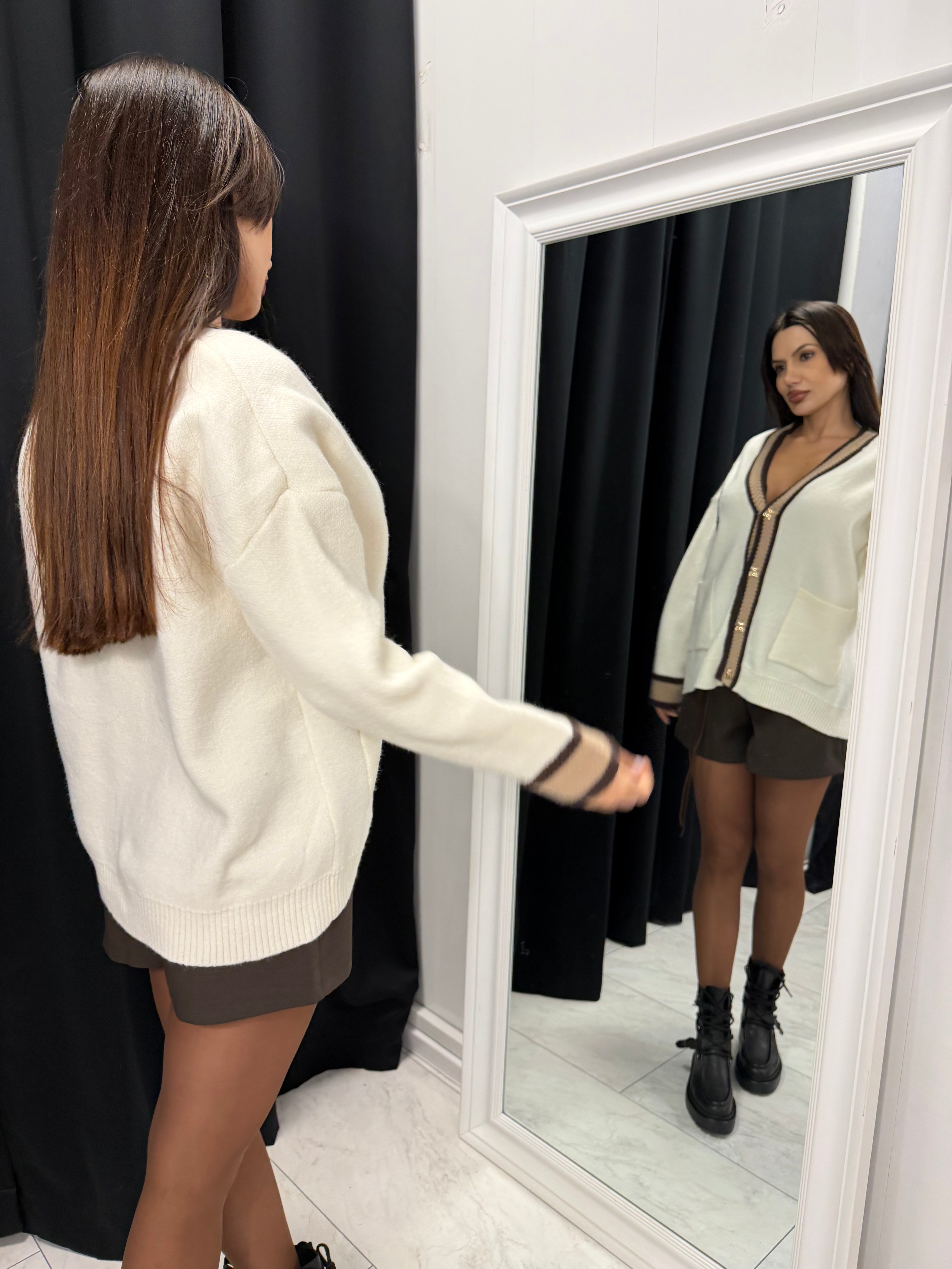 Пухкава, модерна и създадена за максимален уют – TEDDY CHIC CARDIGAN е перфектната зимна жилетка, която комбинира комфорт и стил в едно. Моделът впечатлява с контрастни плетени кантове по деколтето, ръкавите и закопчаването, които подчертават луксозното усещане.