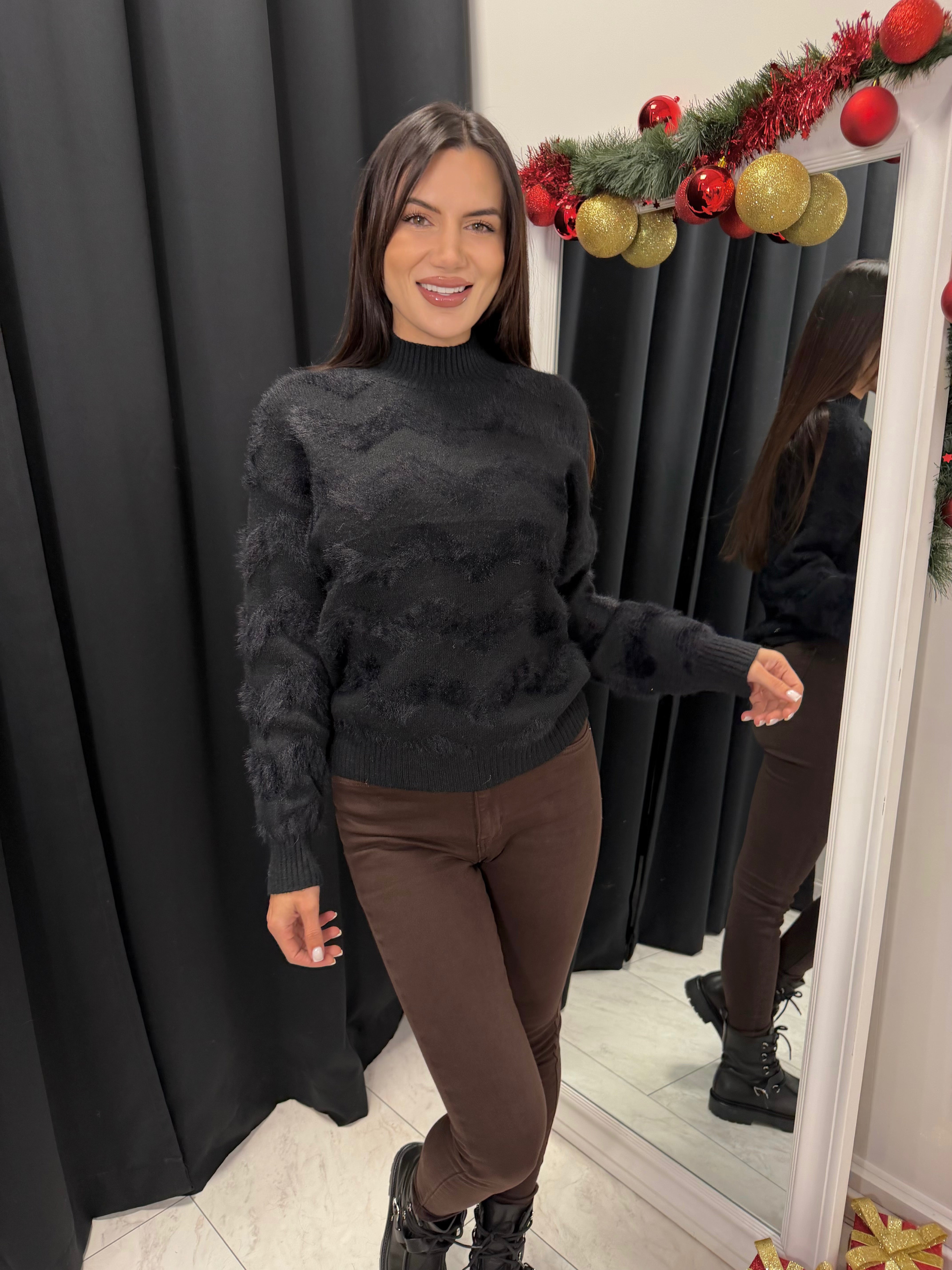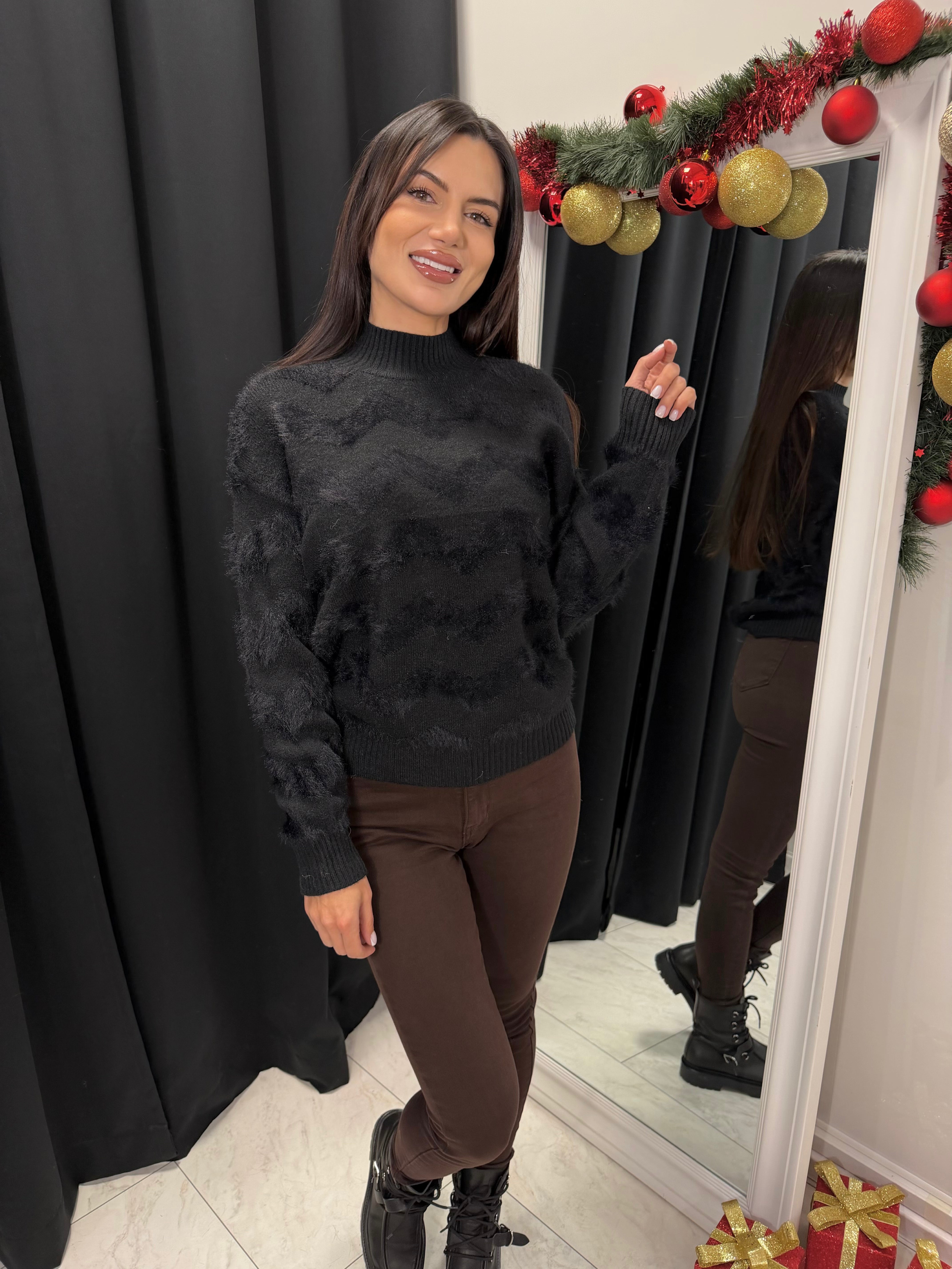 Релефната зиг-заг плетка придава луксозен обем, а меката материя е нежна към кожата и подчертава силуета, без да добавя тежест.