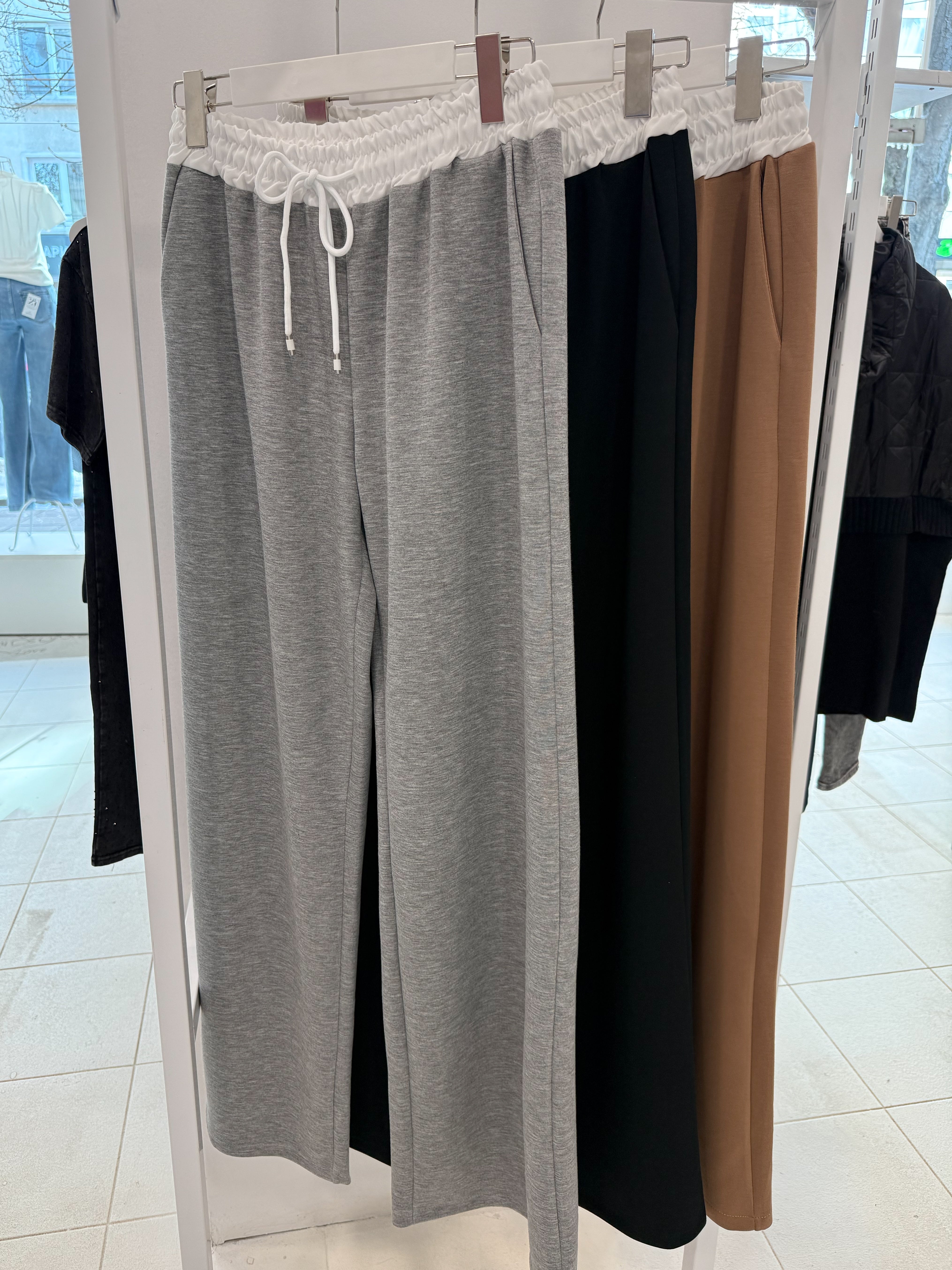 Изчистен модел спортен ПАНТАЛОН с висока талия и модерен колан с ластик и връзки,