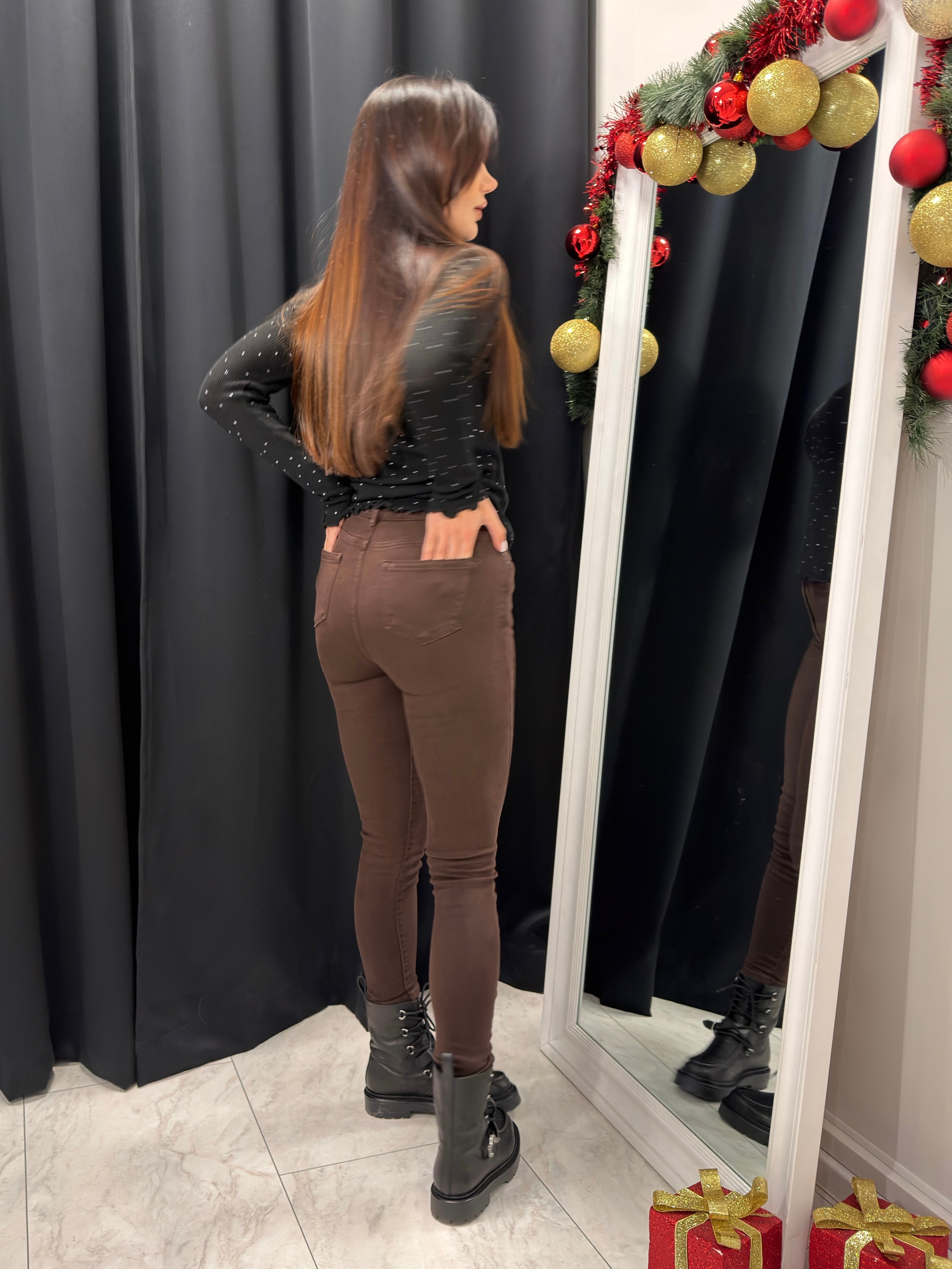 They are made of soft and stretchy denim, have a pockets in the front and back, there is the option to wear it with a belt.