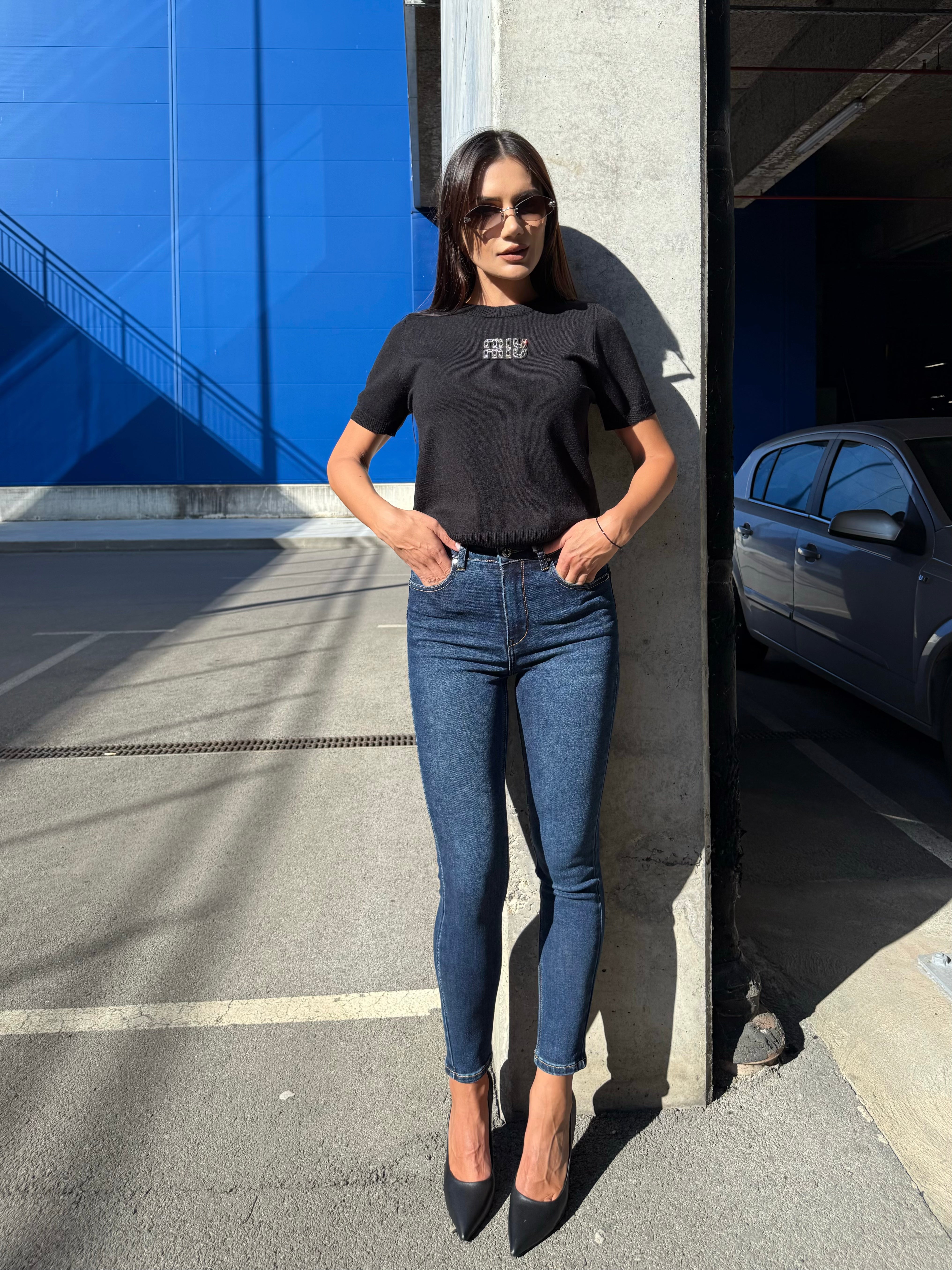 They are made of soft and stretchy denim, have a pockets in the front and back, there is the option to wear it with a belt.