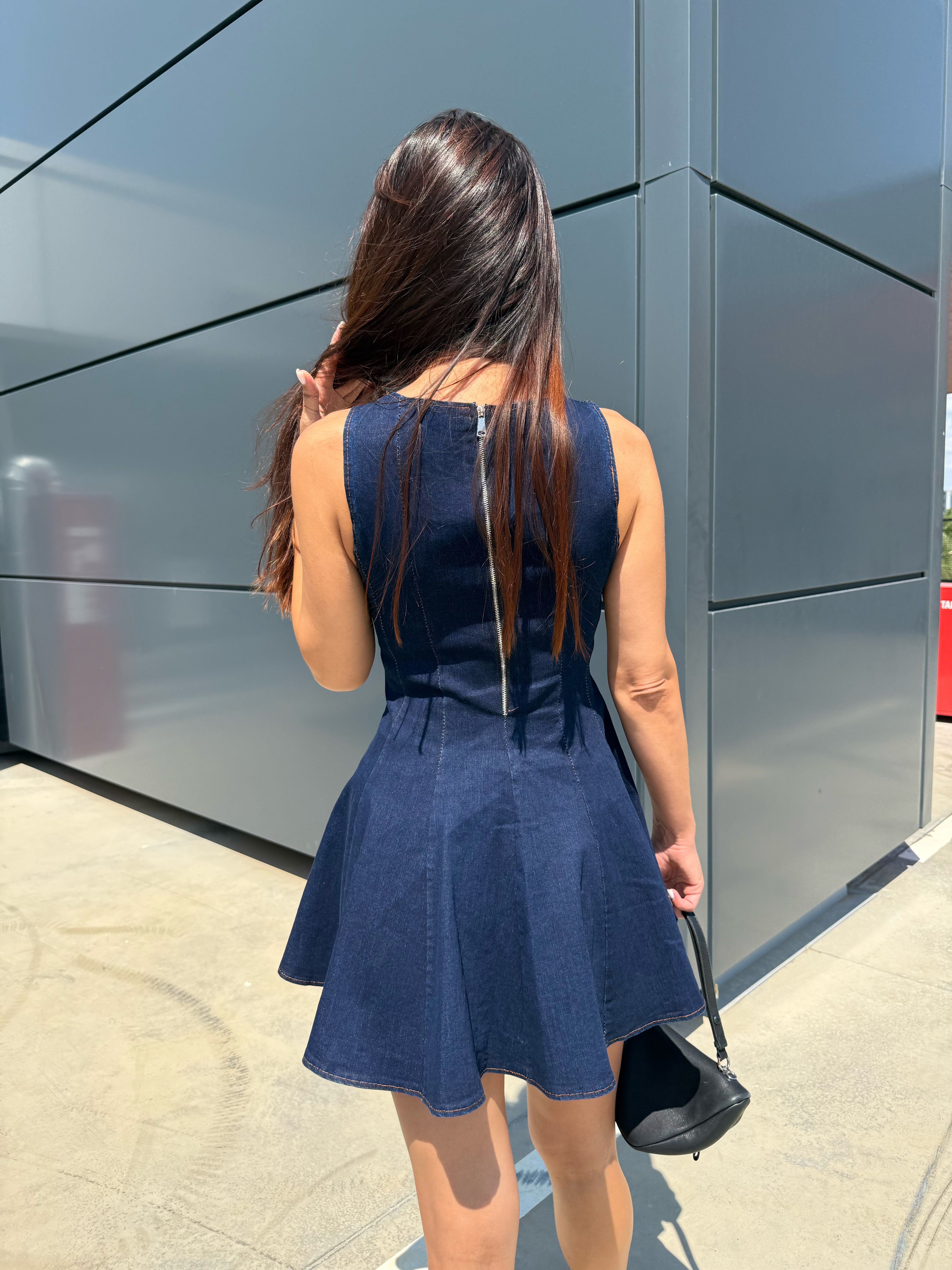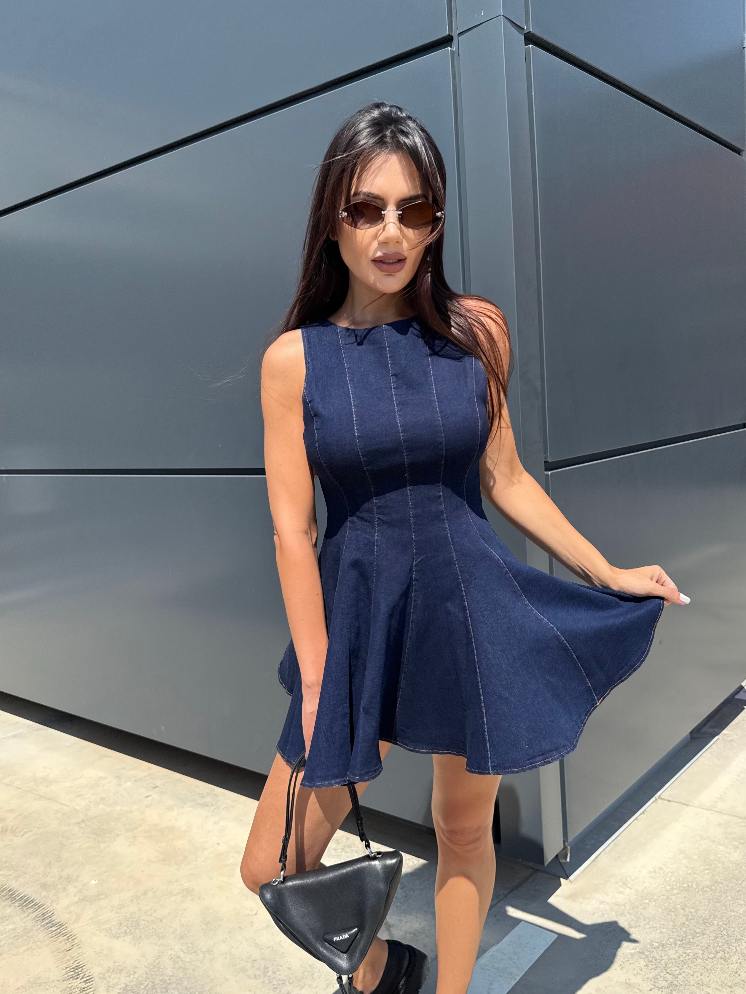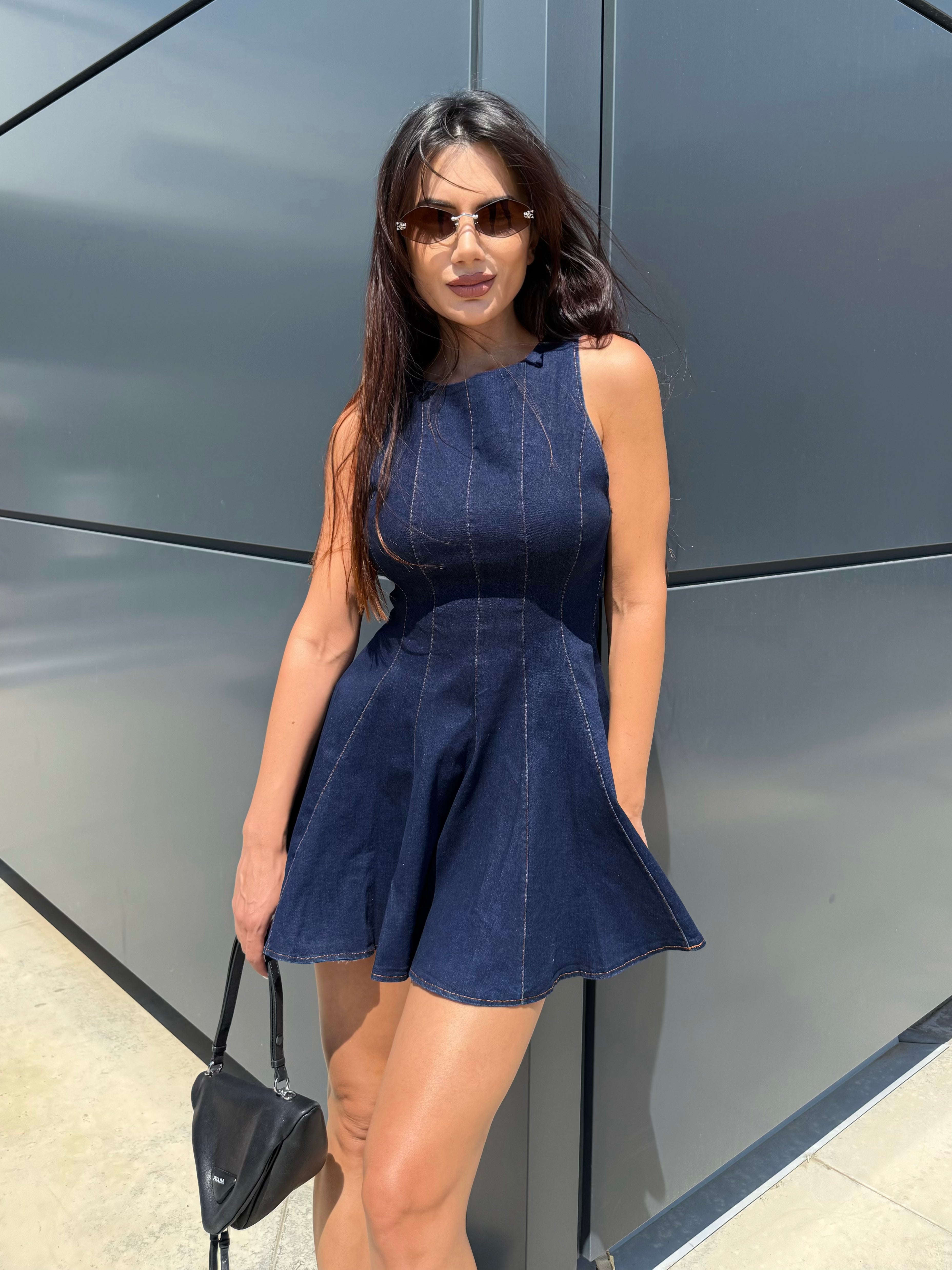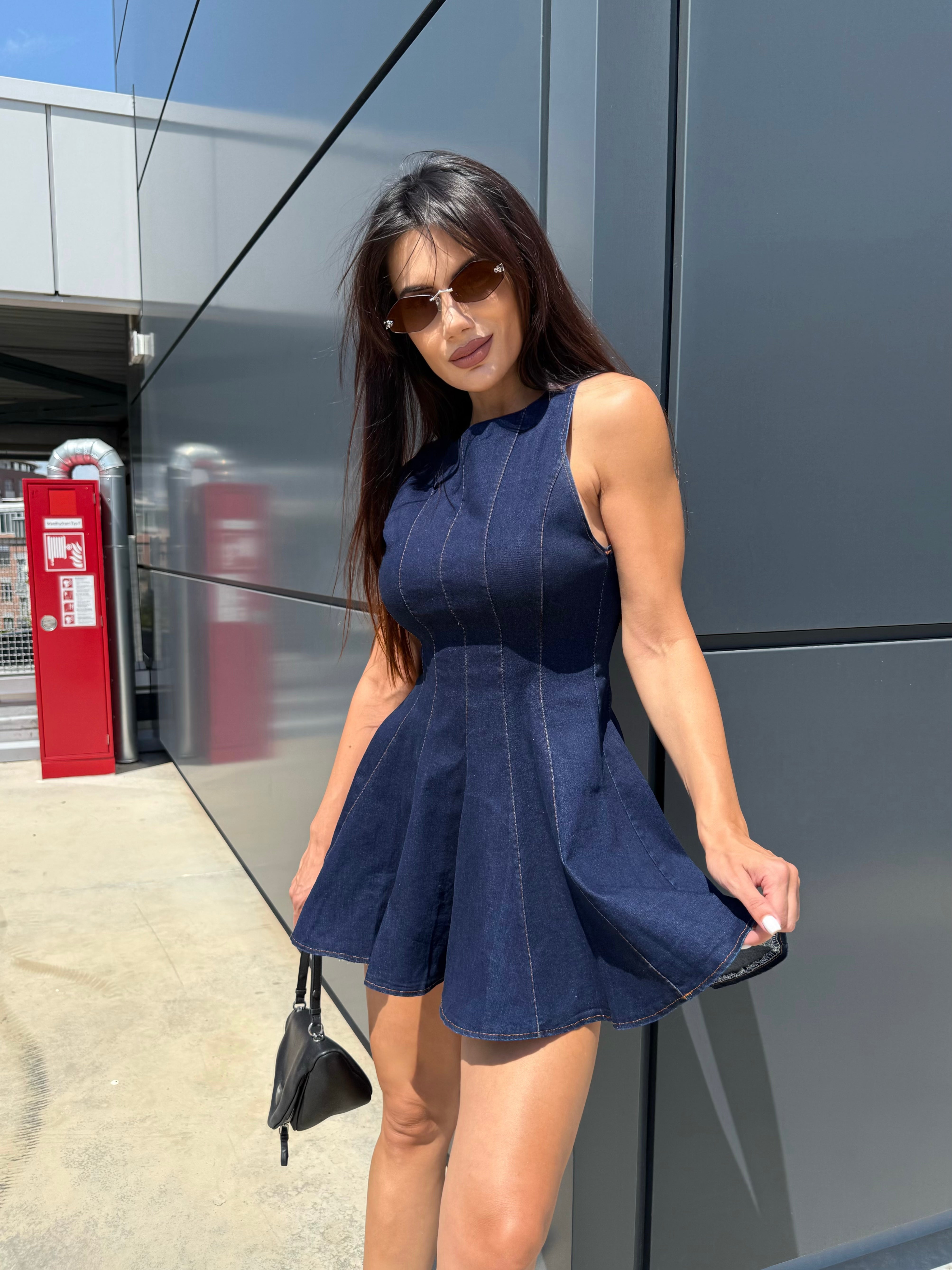 BLUE ICON – Denim mini dress with flared skirt