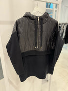 The fabric is a fleece upper and a dense, fine machine knit lower.