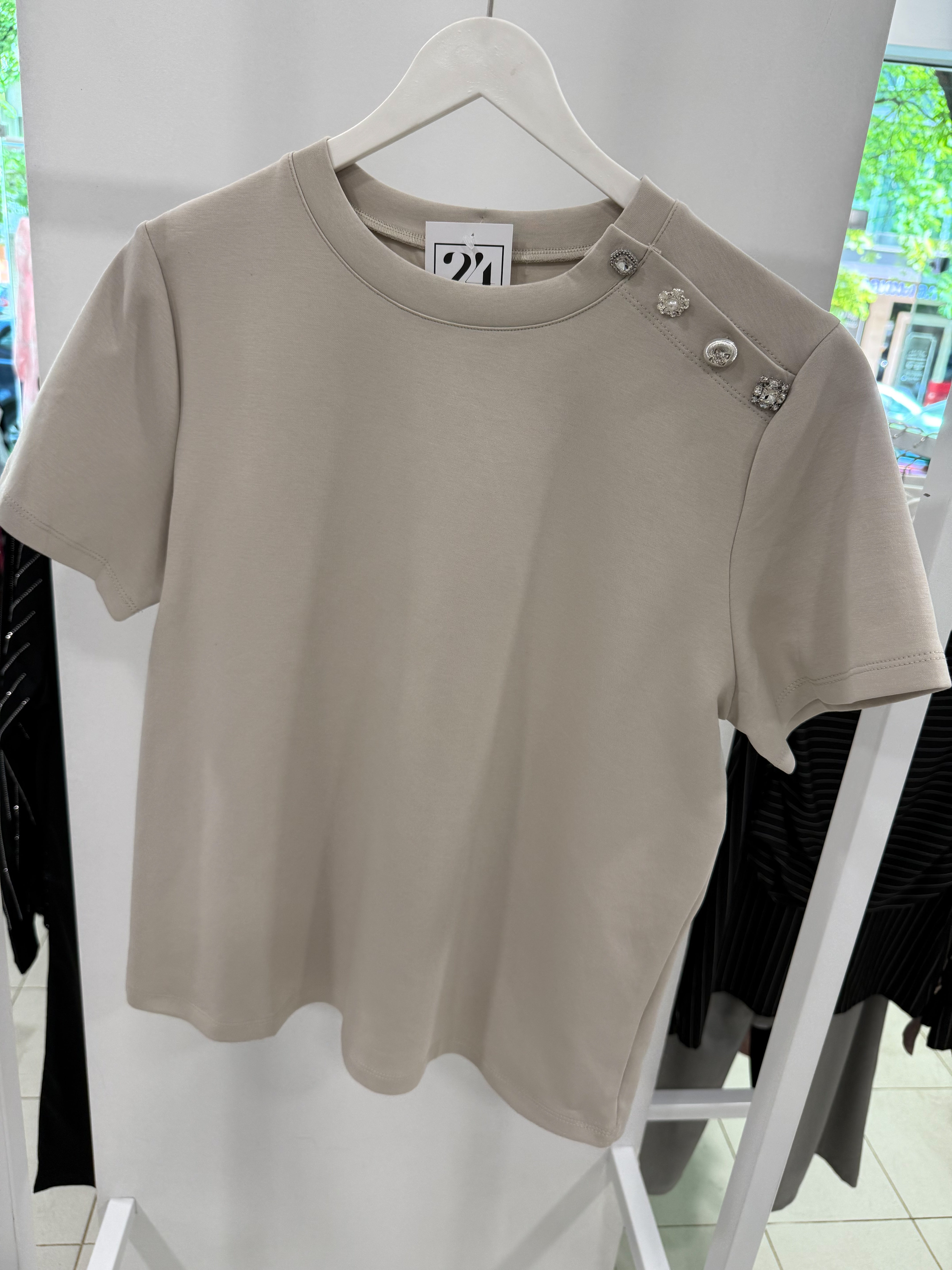 BIJOU T-SHIRT, unique fabric! A stylish accent are the jewel buttons on the round neckline.