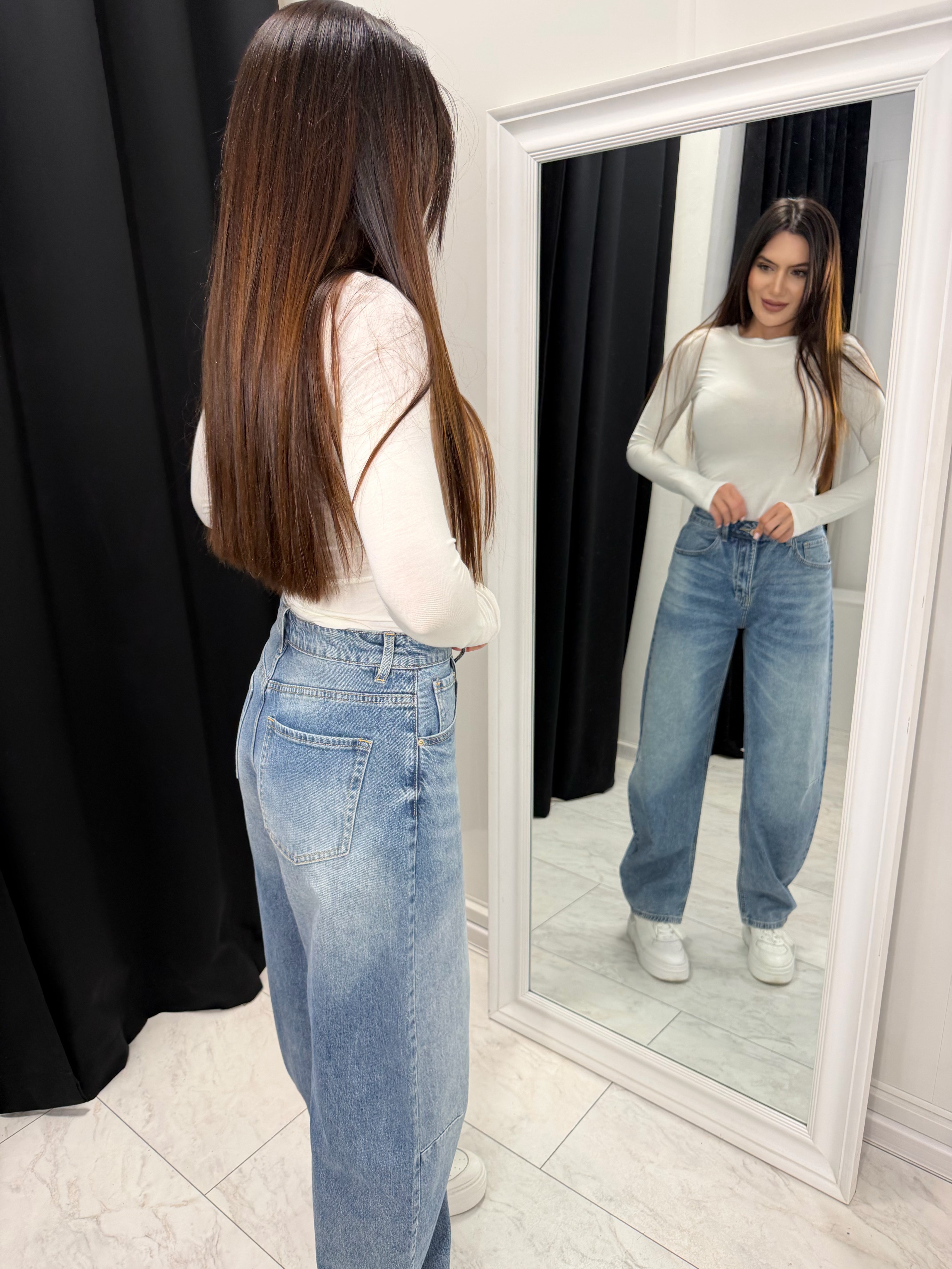 Тези Balloon дънки съчетават свободна линия и характерна обемна форма с изключително мек Tencel деним. Материята придава гладка повърхност, естествен пад и комфорт, който се усеща като втора кожа.
