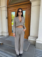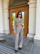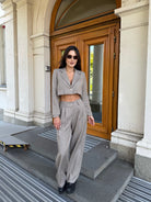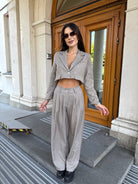 City Crop Suit Beige – костюм, който съчетава комфорт и елегантност в един модерен силует.