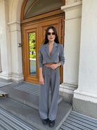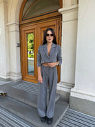 City Crop Suit Grey е модерна интерпретация на класическия костюм – стилен комплект, който включва късо сако и свободен панталон с висока талия. Съчетава минимализъм и градска елегантност, превръщайки се в перфектен избор за жени, които ценят комфорта и модерната визия.